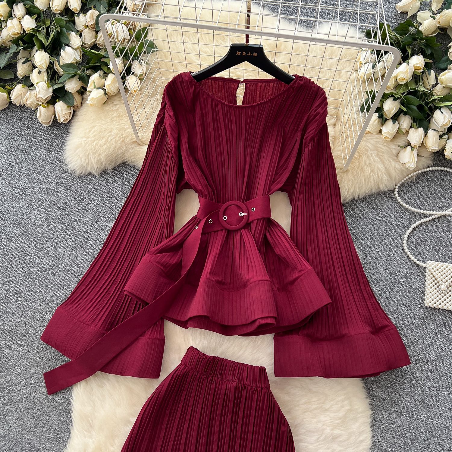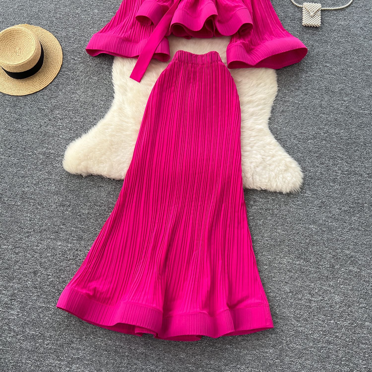 유럽과 미국의 스타일 빈티지 자카드 니트 세트 여성용 민소매 조끼 중간 길이 스커트 고급 사교계 투피스 세트스토어 가기