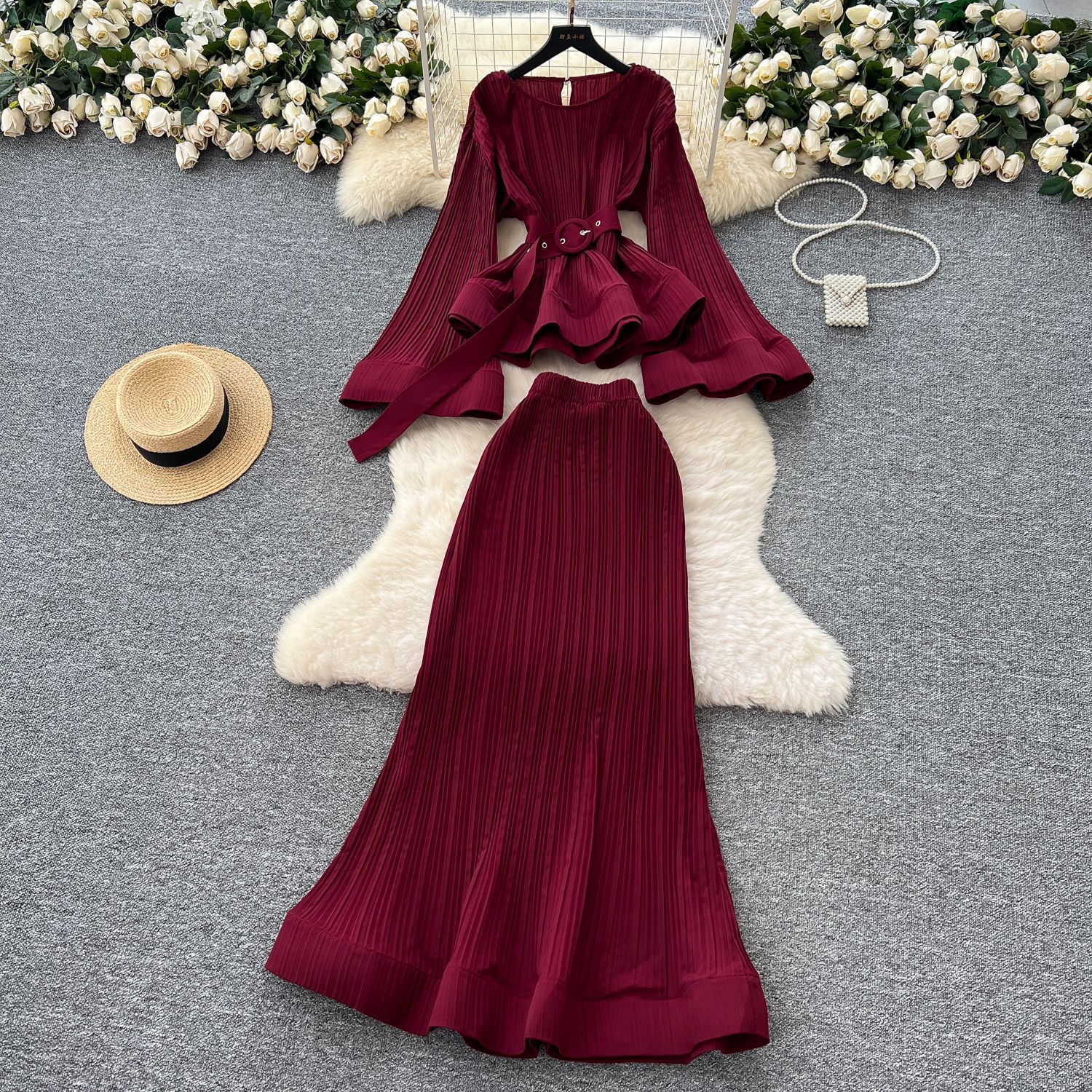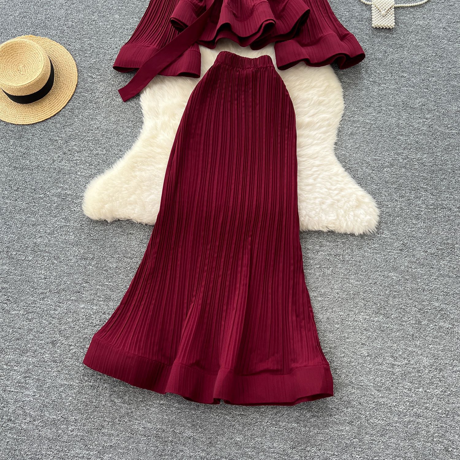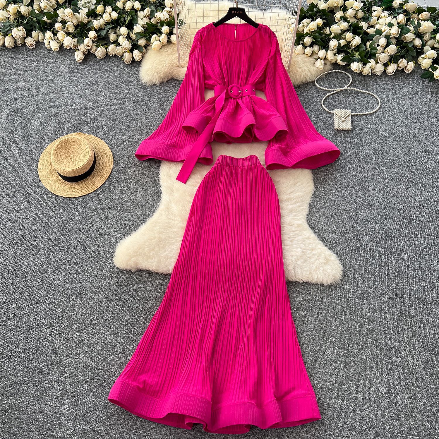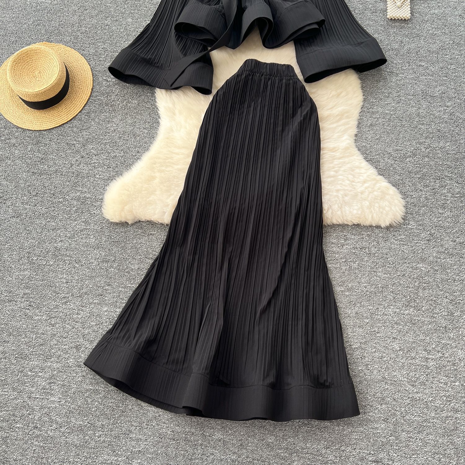 유럽과 미국의 스타일 빈티지 자카드 니트 세트 여성용 민소매 조끼 중간 길이 스커트 고급 사교계 투피스 세트