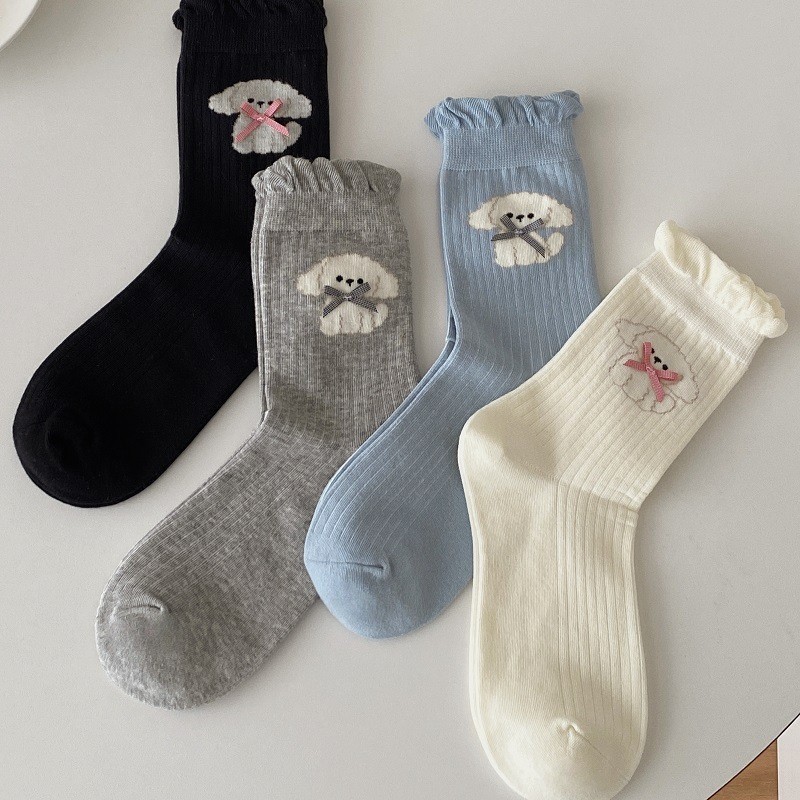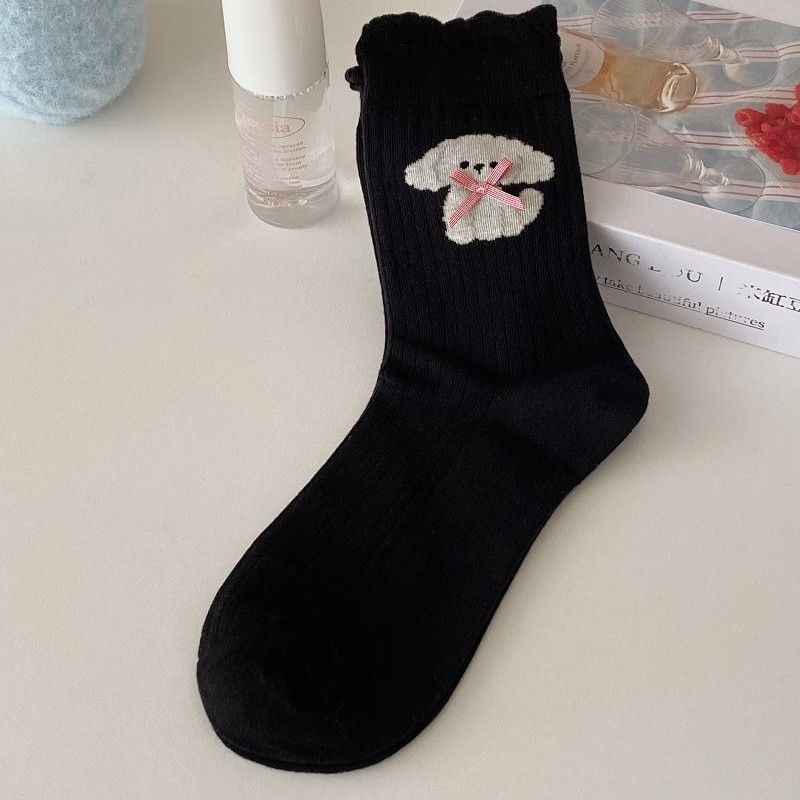 양말 여성의 봄과 여름 얇은 튜브 양말 bowknot 강아지 여성 양말, 트렌디 한 귀여운 만화 양말 발레 스타일