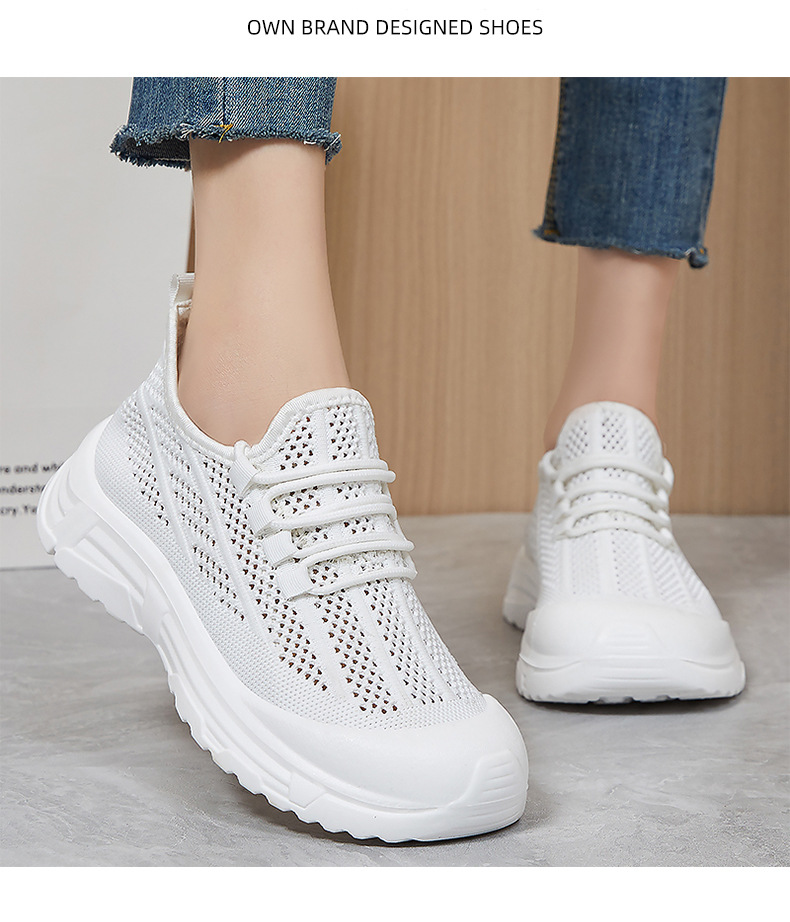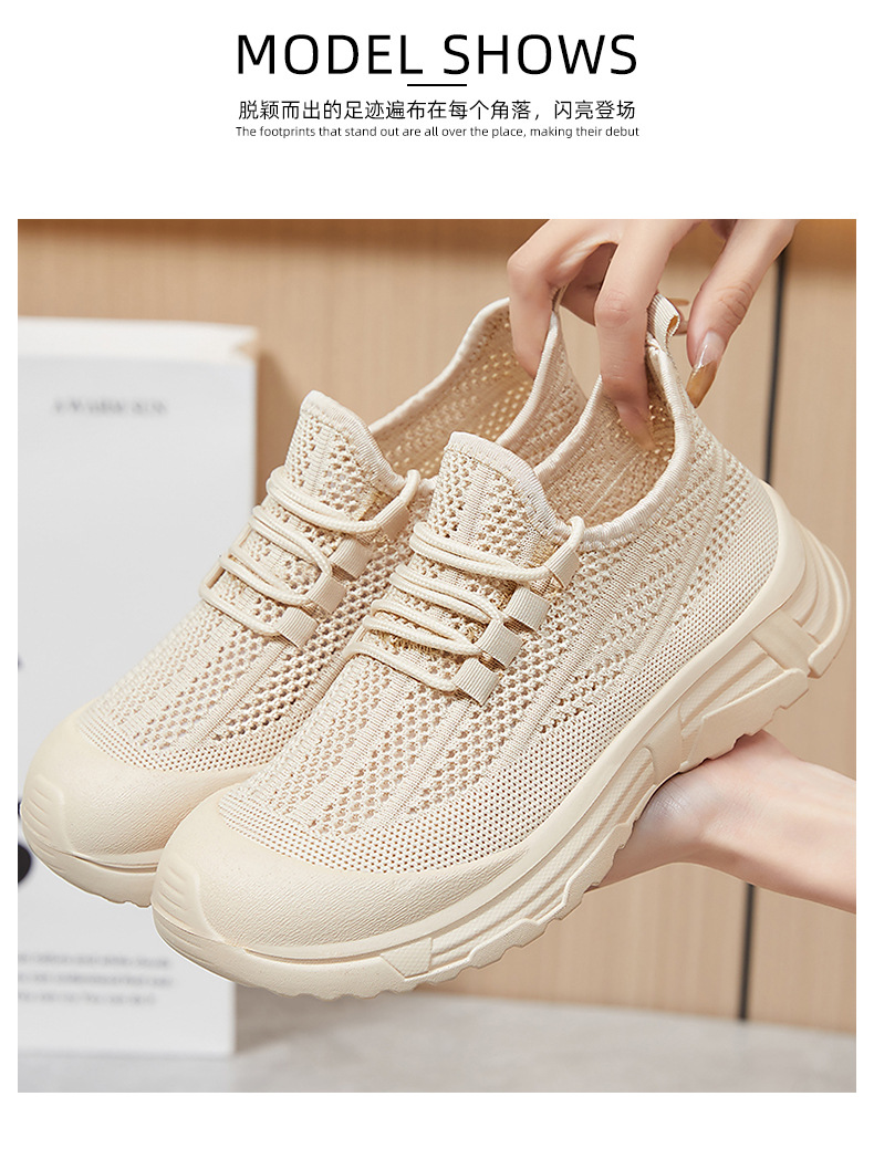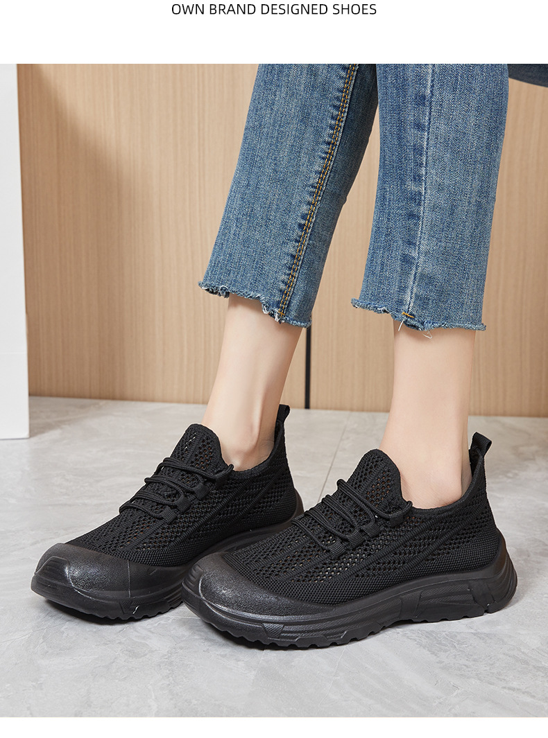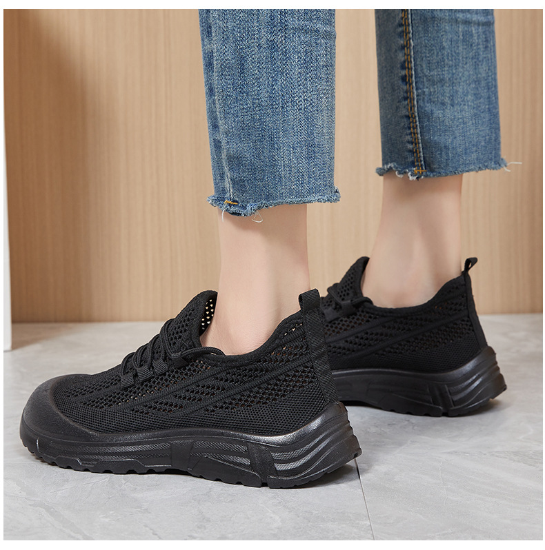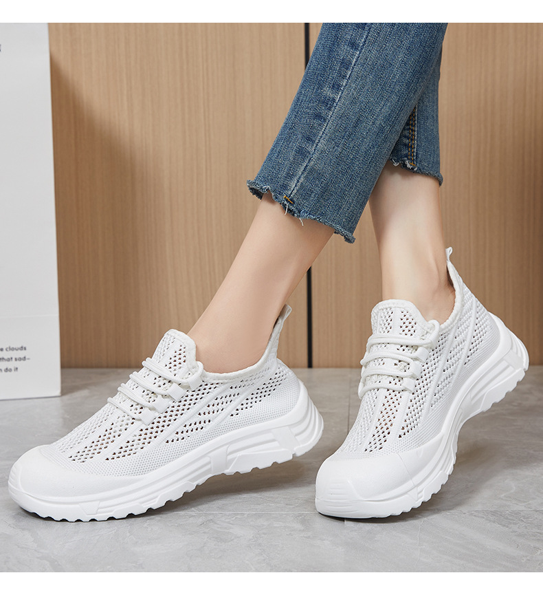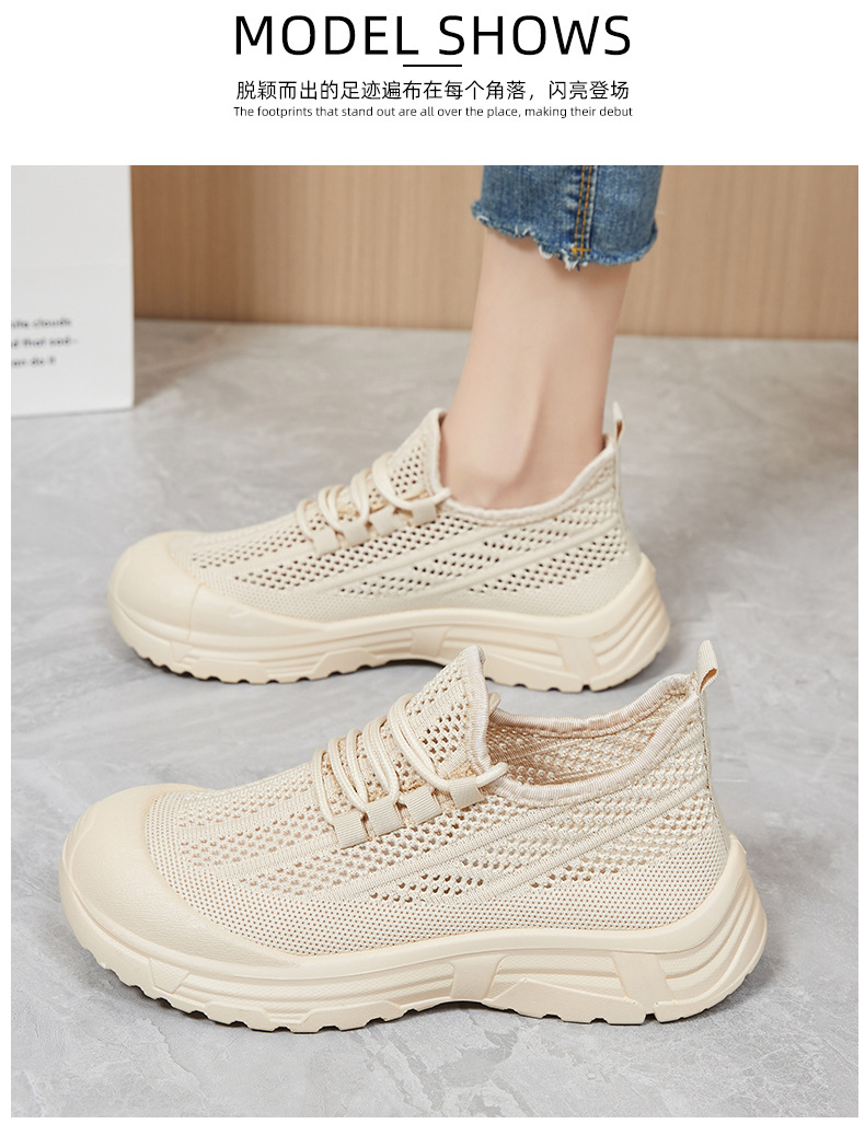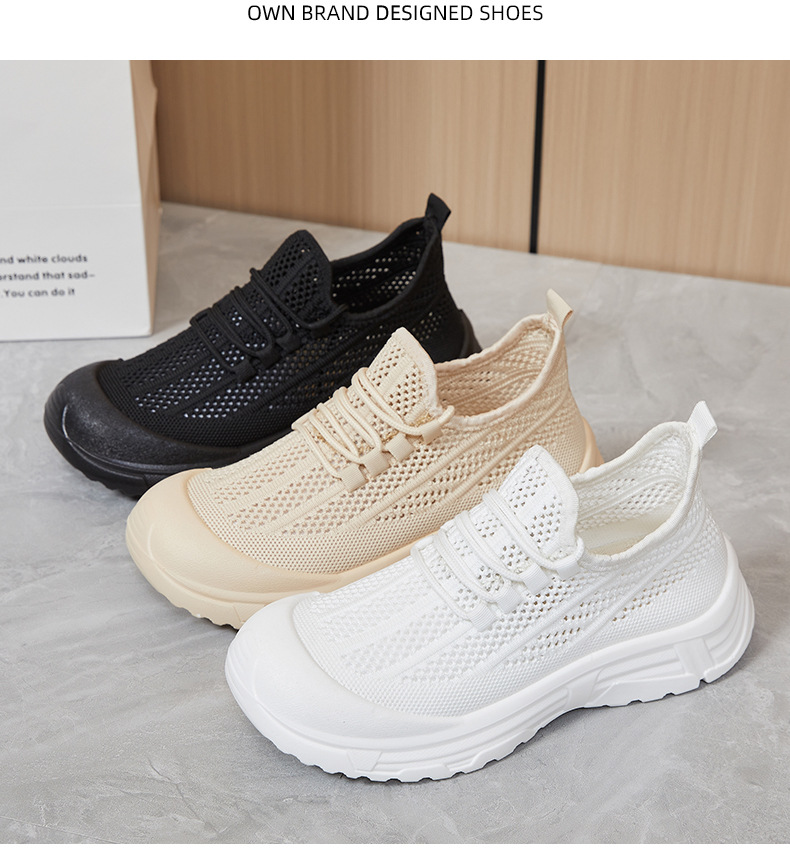 여성용 여름 신상 통기성 캐주얼 메쉬 신발 해외 직배송 발이 피곤하지 않은 두꺼운 밑창 앞코가 덮인 신발 엄마 신발 여성용