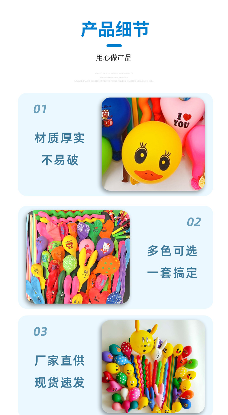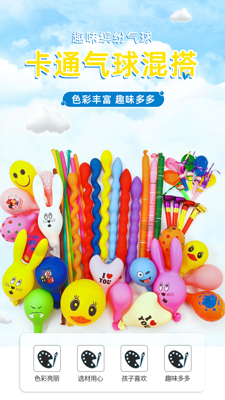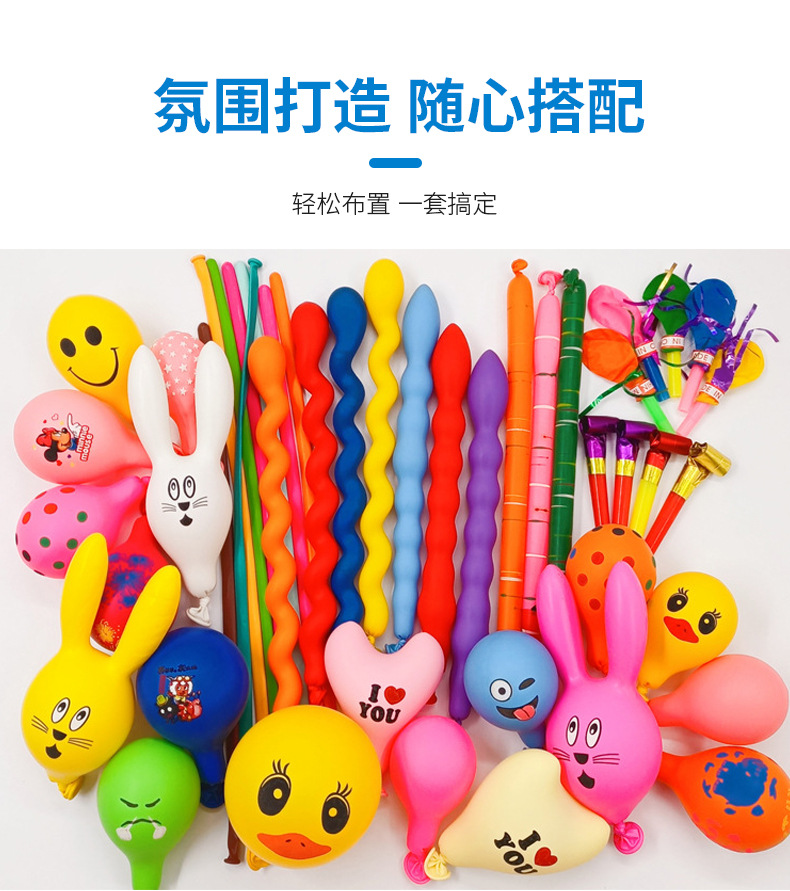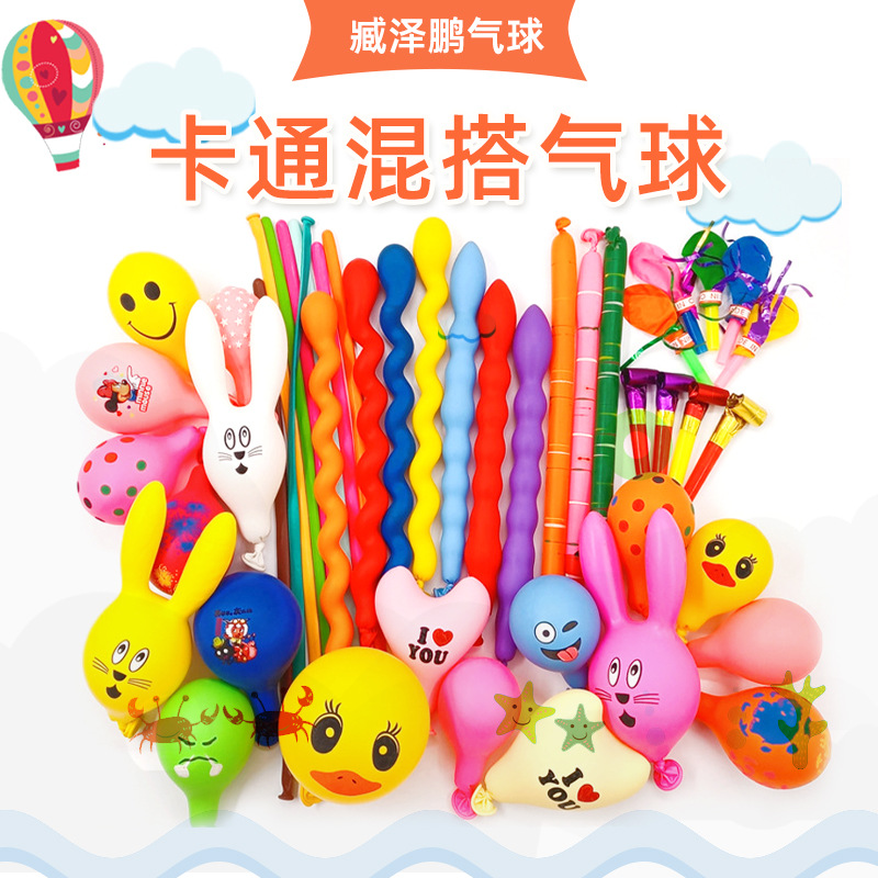 • 100개의 특별한 모양의 만화 풍선이 혼합되어 있습니다.
