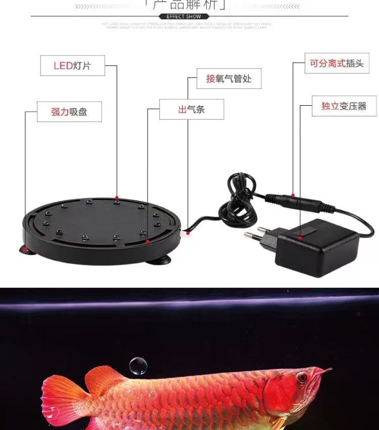물고기 탱크 디스크 거품 램프 조경 장식 LED 다채로운 산소 수조 램프 led 수족관 방수 가스 플레이트 램프 도매