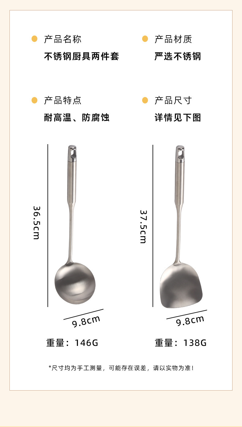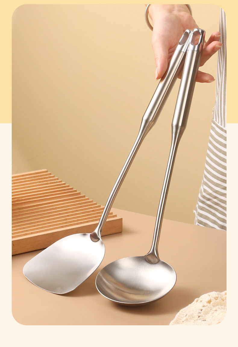 두꺼운 손잡이가있는 스테인레스 스틸 주걱과 스푼 2 피스 세트 가정용 요리 주걱 요리 요리사 주방 용품 세트 도매