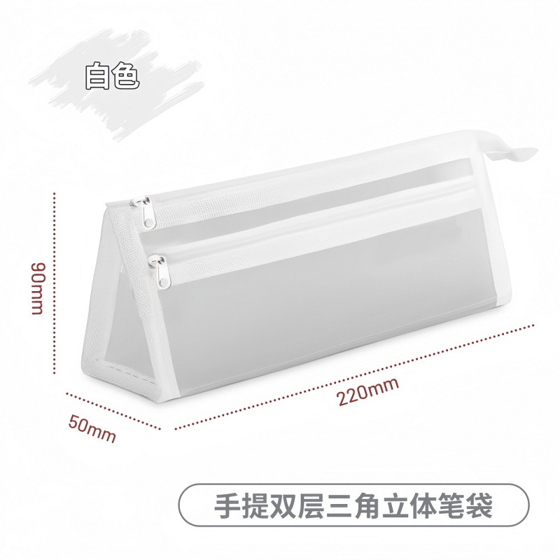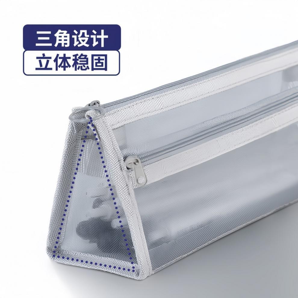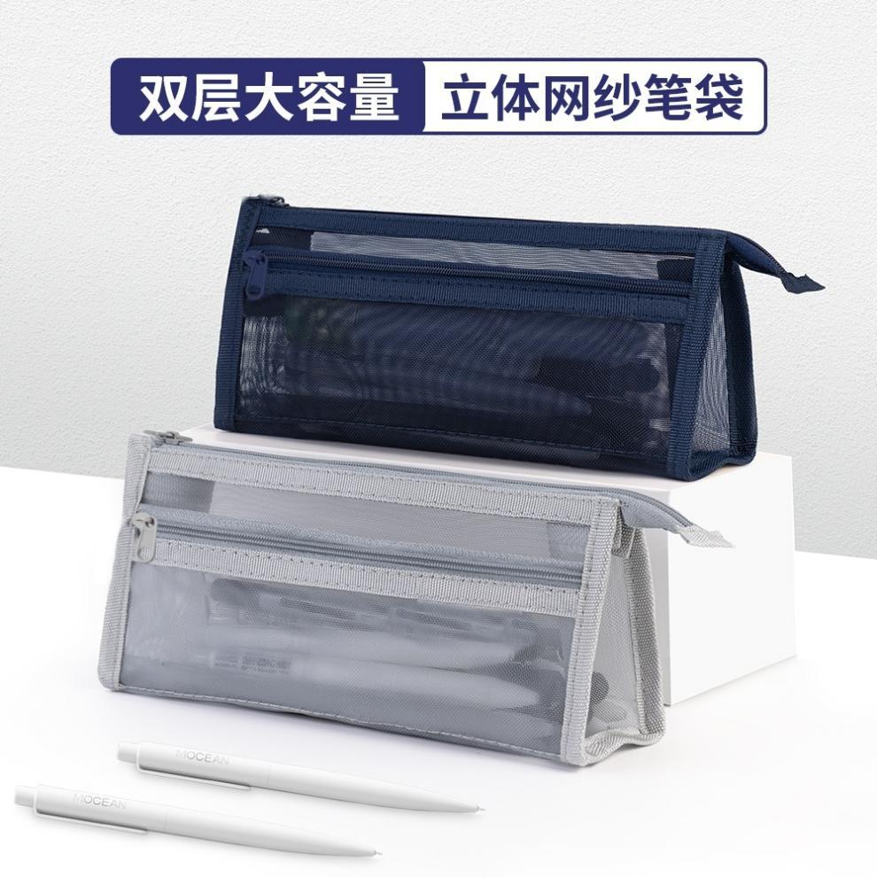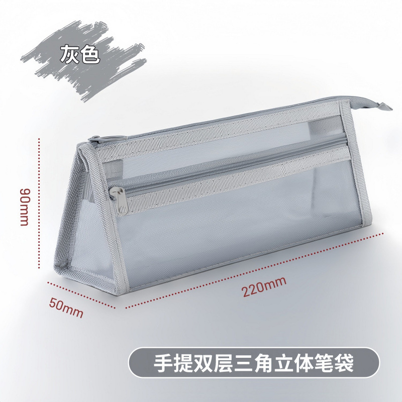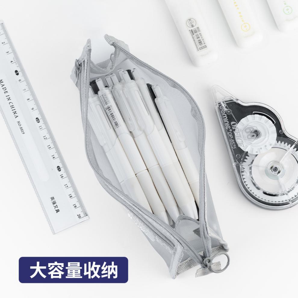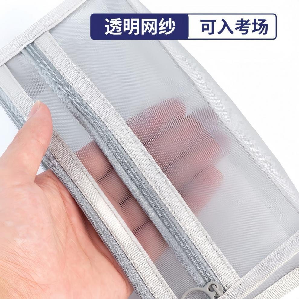 흑백 회색 연필 가방 Ins 스타일 간단한 투명 메쉬 더블 레이어 대용량 학생 시험 지퍼 문구 보관 가방
