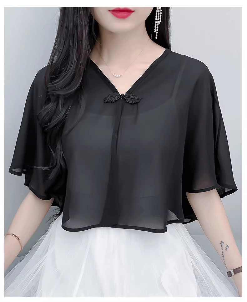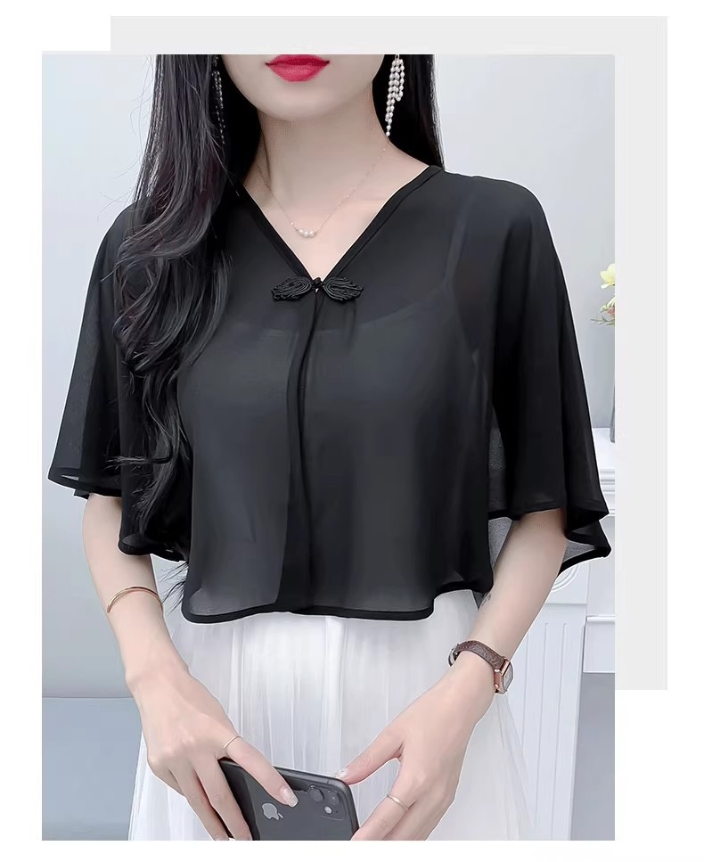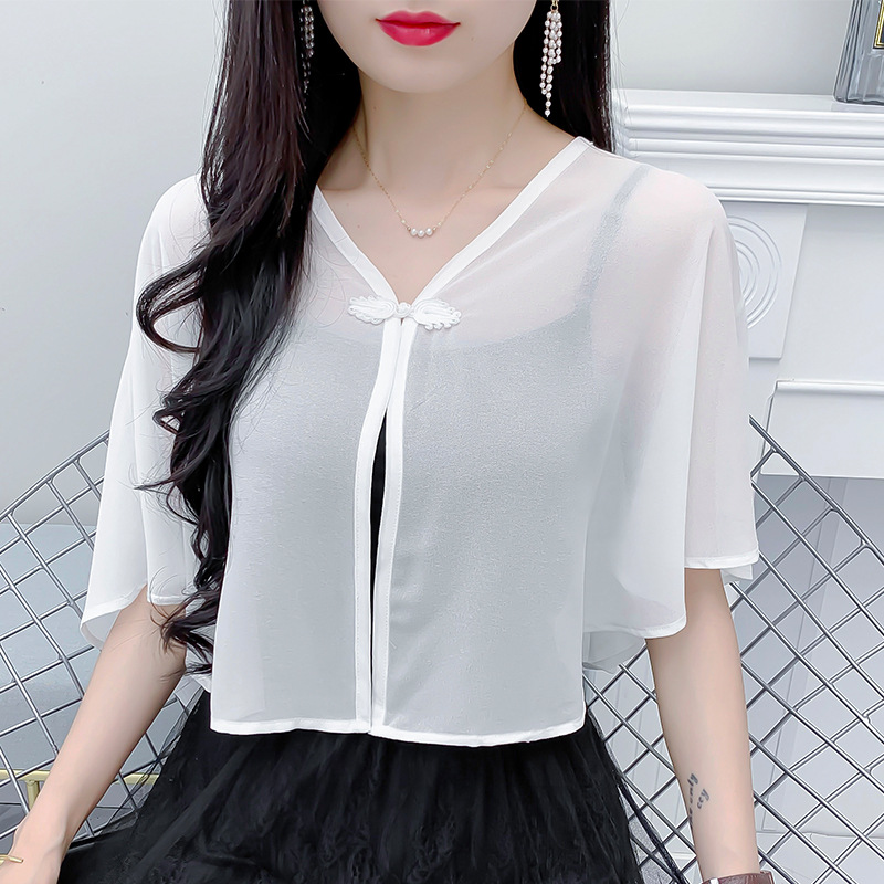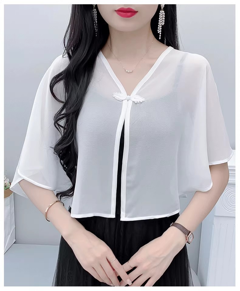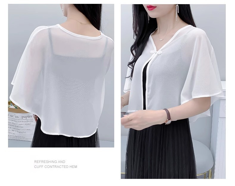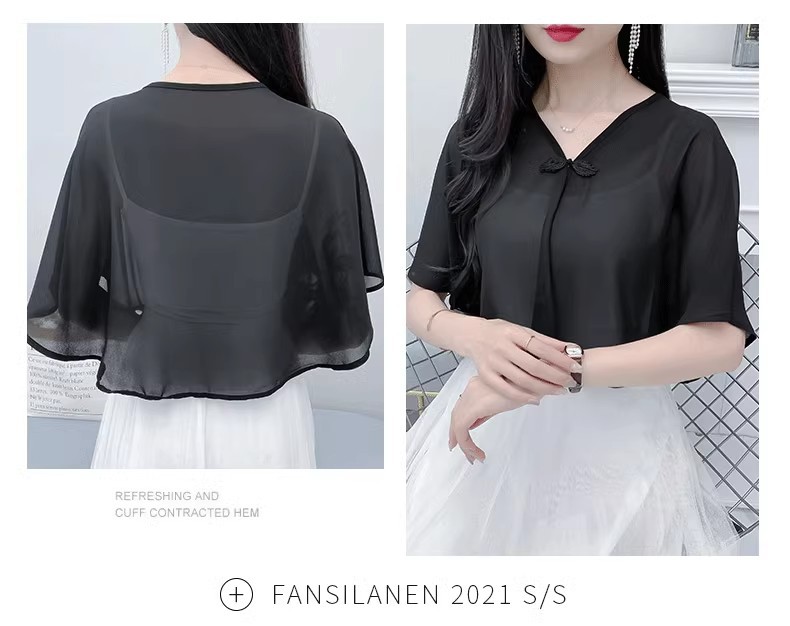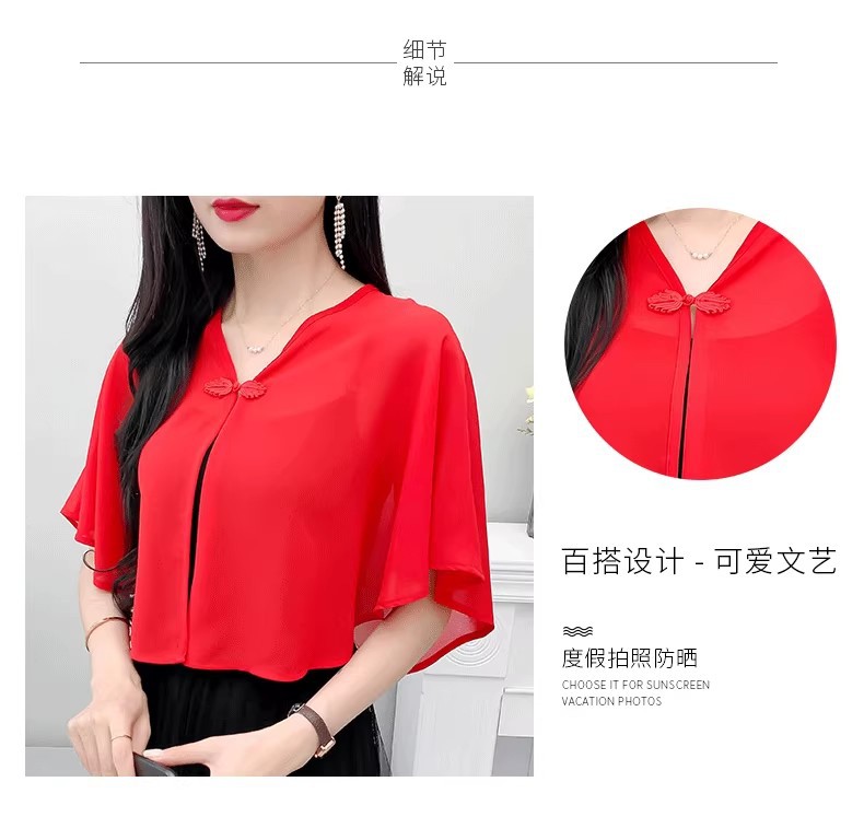 여성을위한 쉬폰 짧은 숄 2025 여름 얇은 코트 자외선 차단 의류 카디건 치파오 스커트와 함께 착용