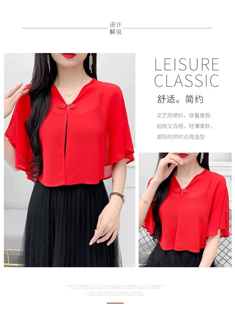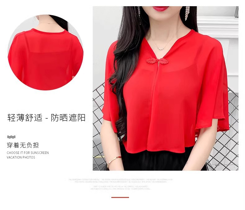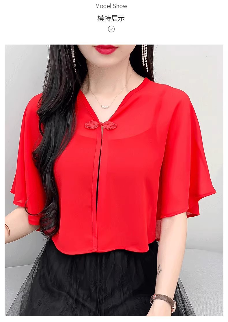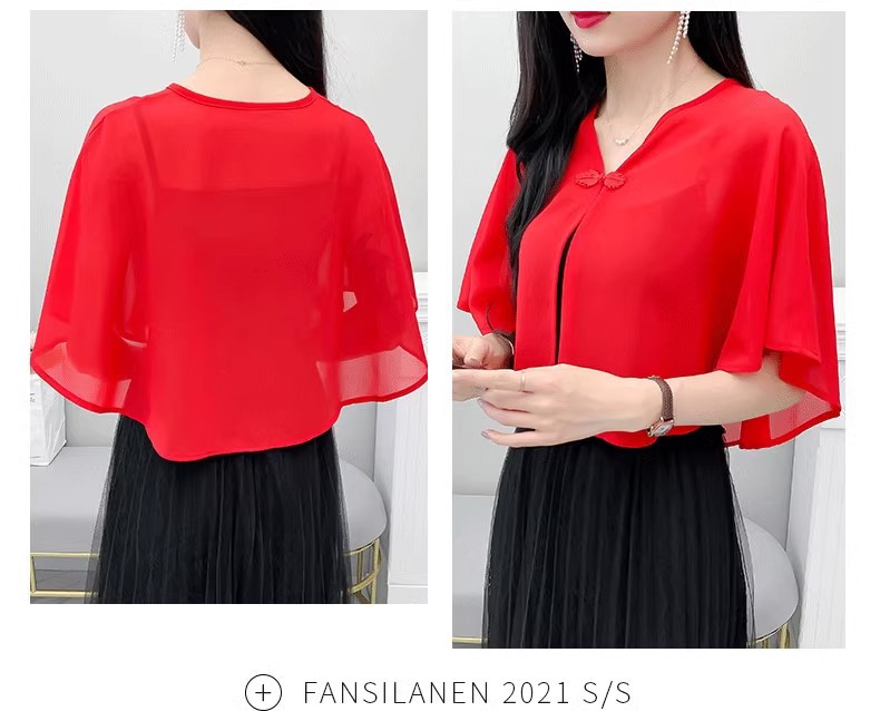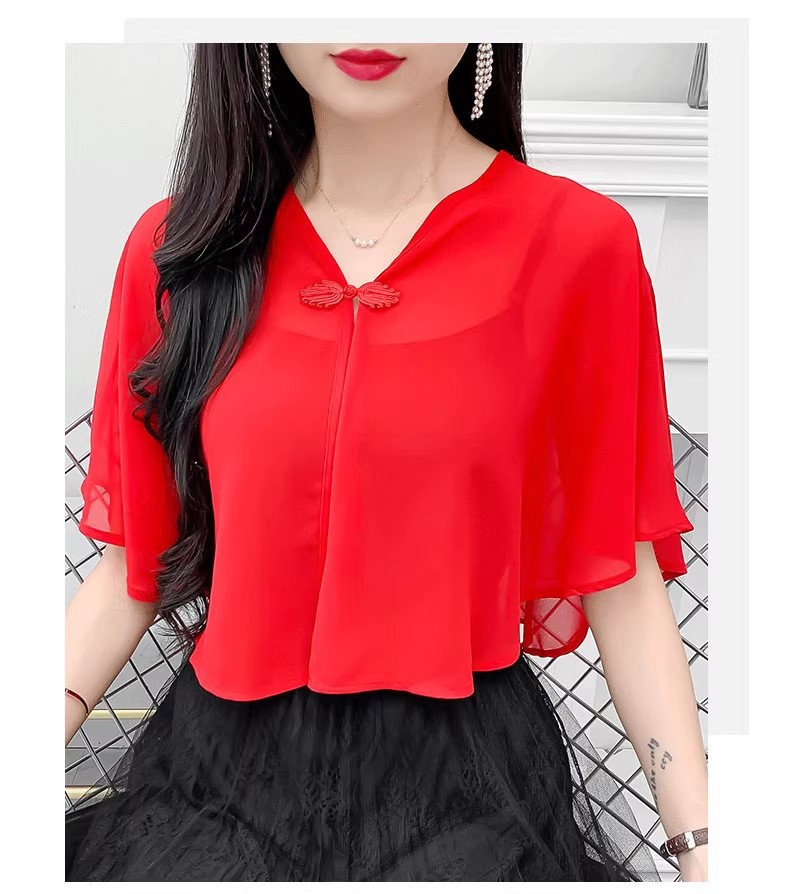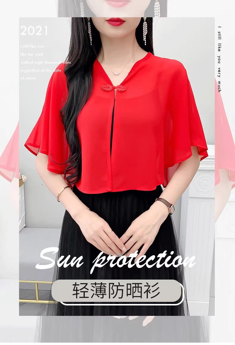 여성을위한 쉬폰 짧은 숄 2025 여름 얇은 코트 자외선 차단 의류 카디건 치파오 스커트와 함께 착용