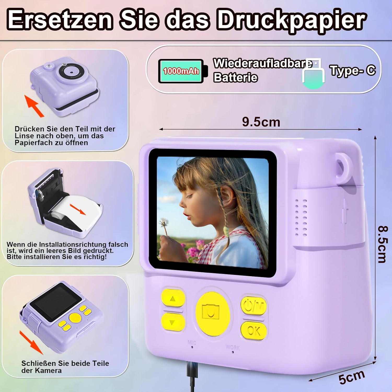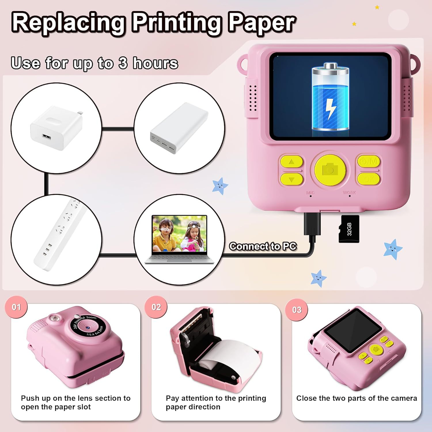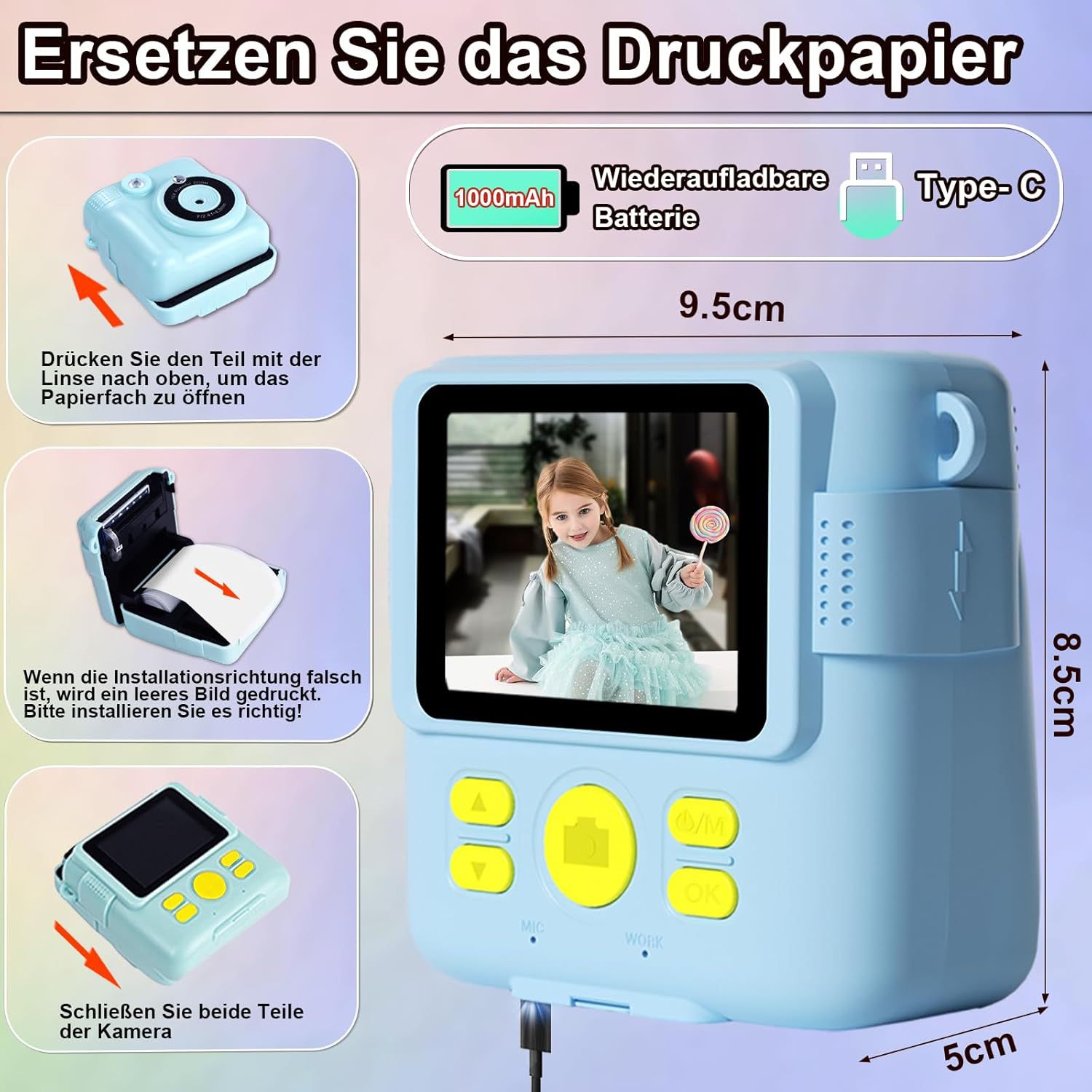 PALODEN 어린이 카메라 PRINT CAMERA CARTOON 스마트 토이 DIY HD 미니 SLR 카메라 선물