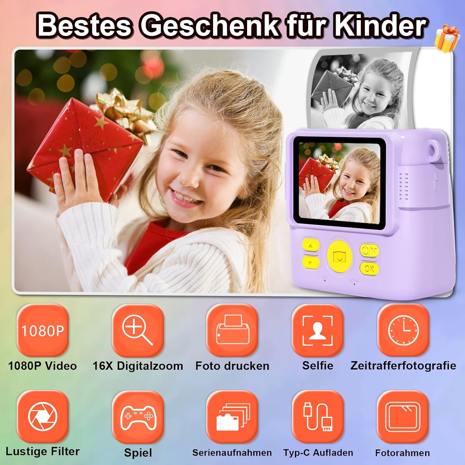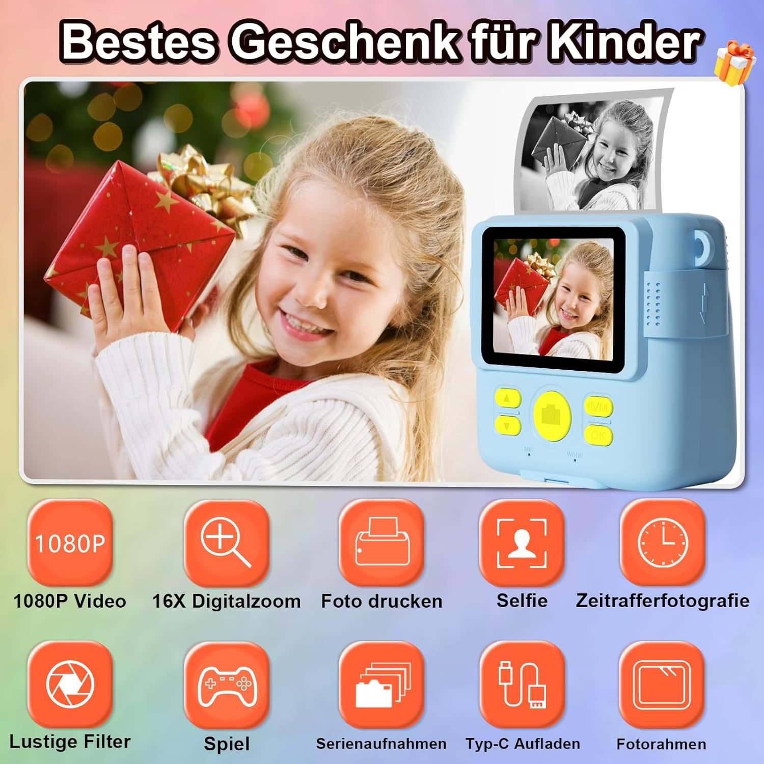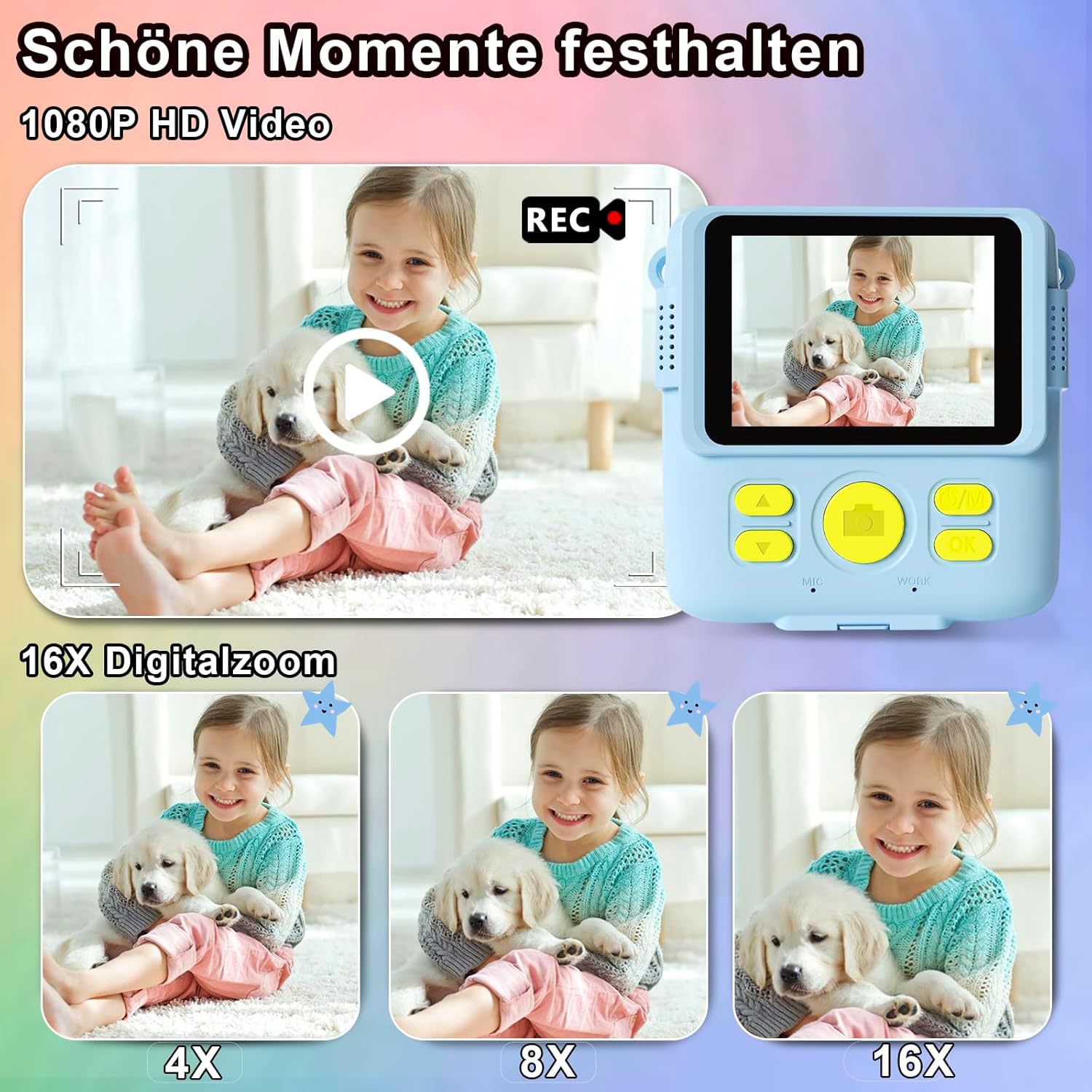 PALODEN 어린이 카메라 PRINT CAMERA CARTOON 스마트 토이 DIY HD 미니 SLR 카메라 선물