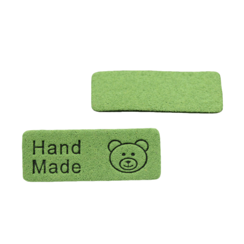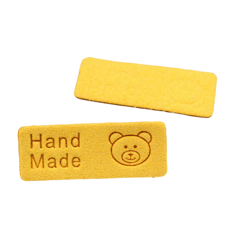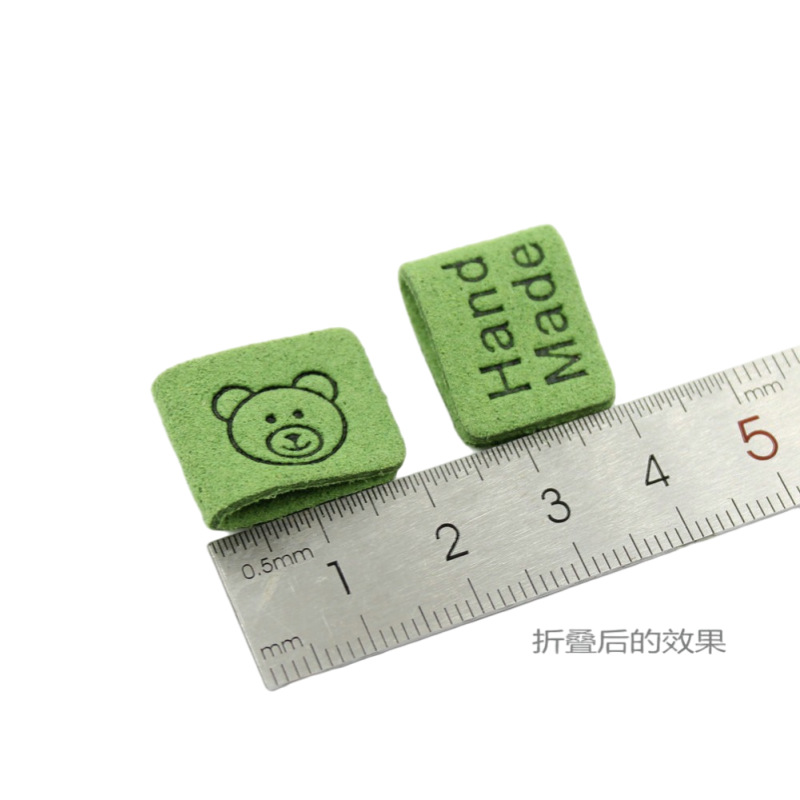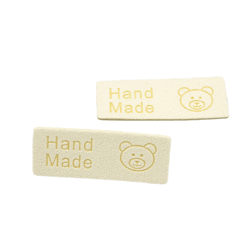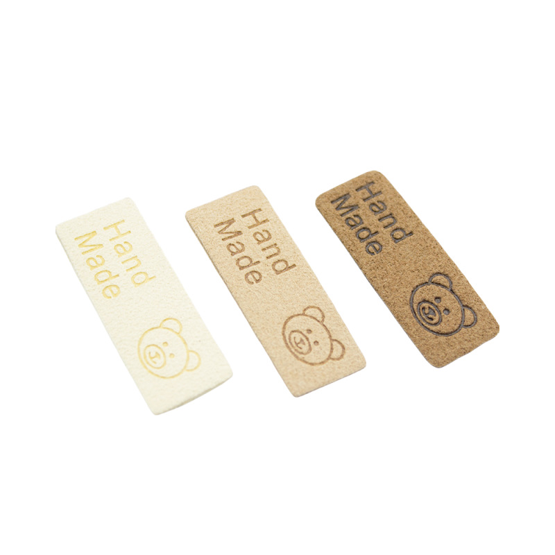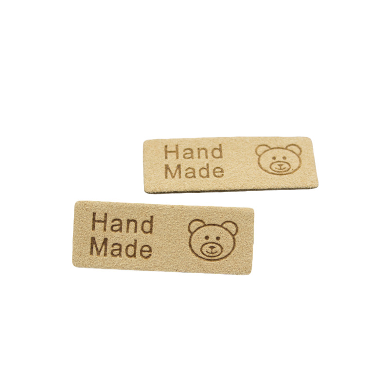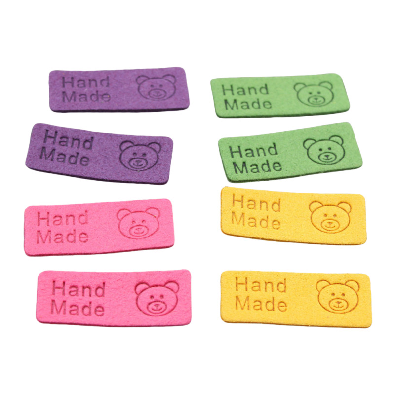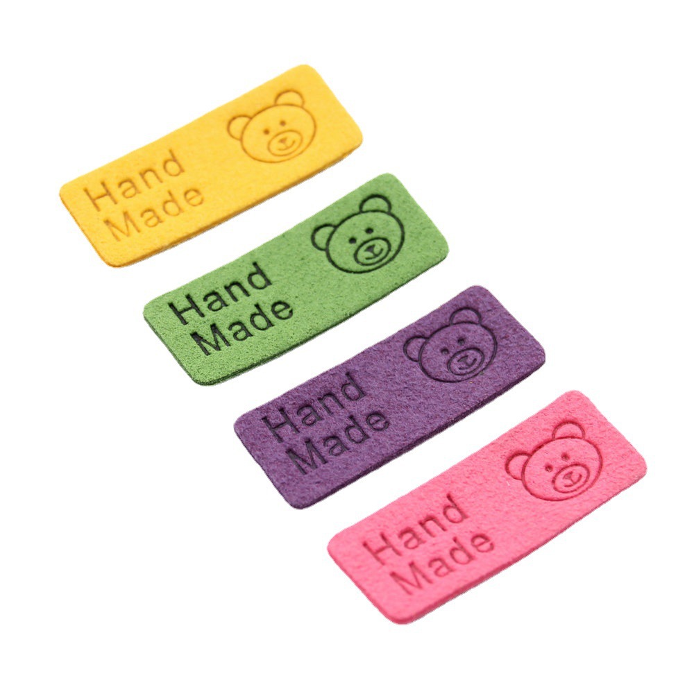 컬러 마이크로 화이버 귀여운 곰 가죽 라벨 슈퍼 소프트 가죽 라벨 로고 의류 보석 모자 라벨 공장 재고스토어 가기