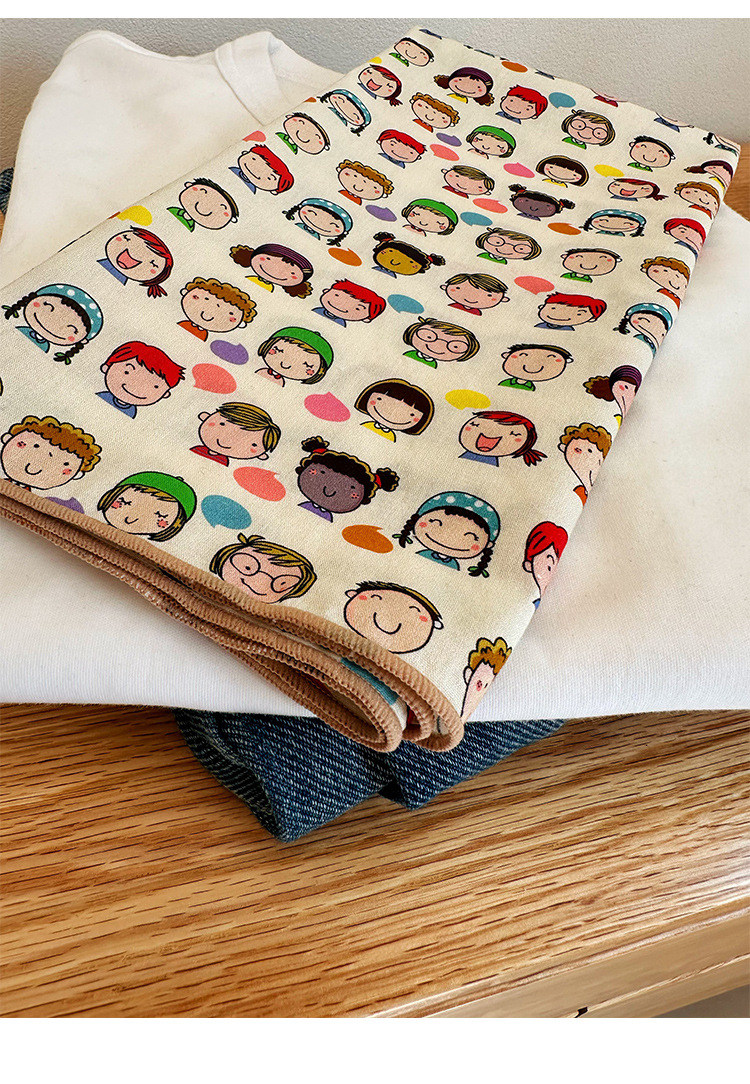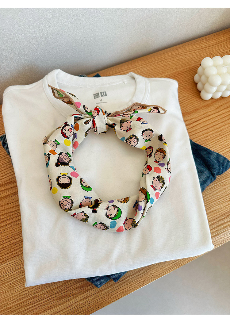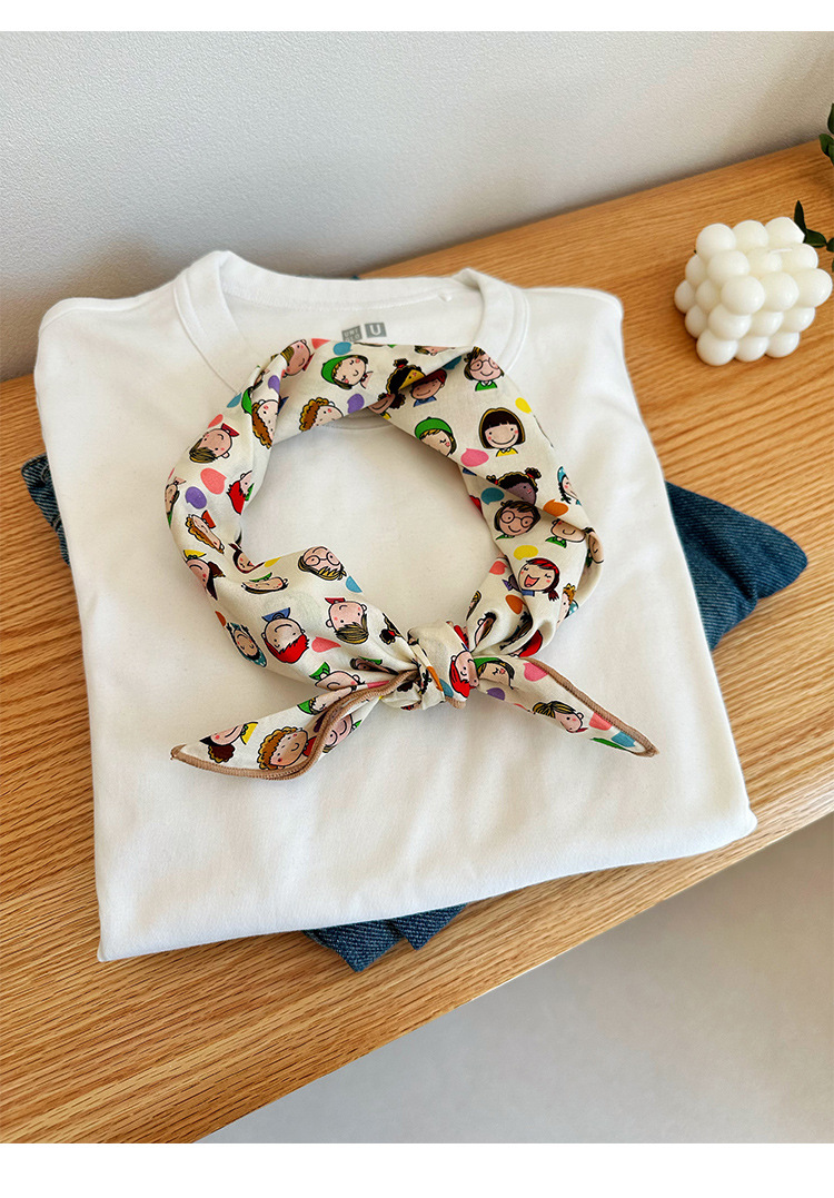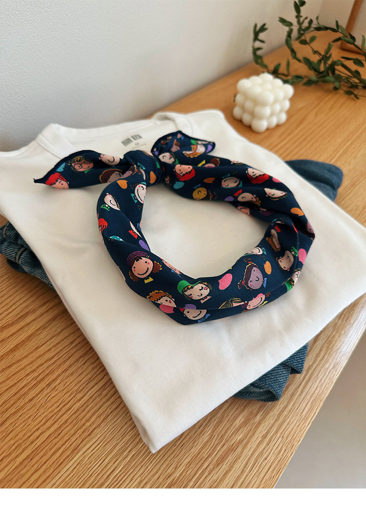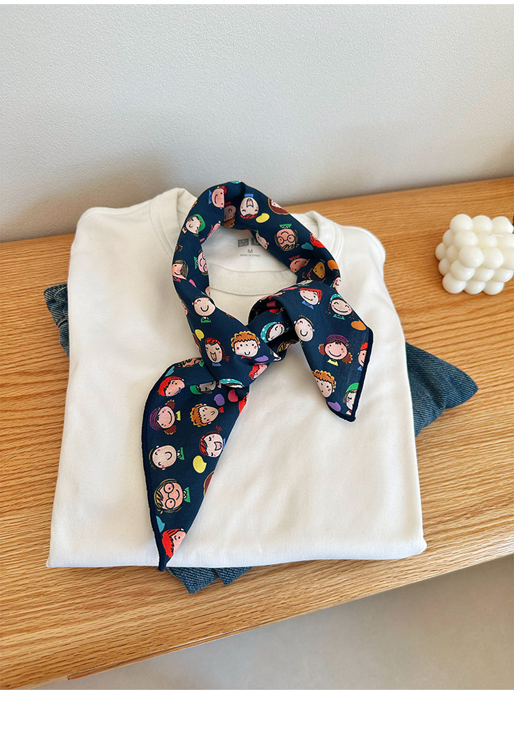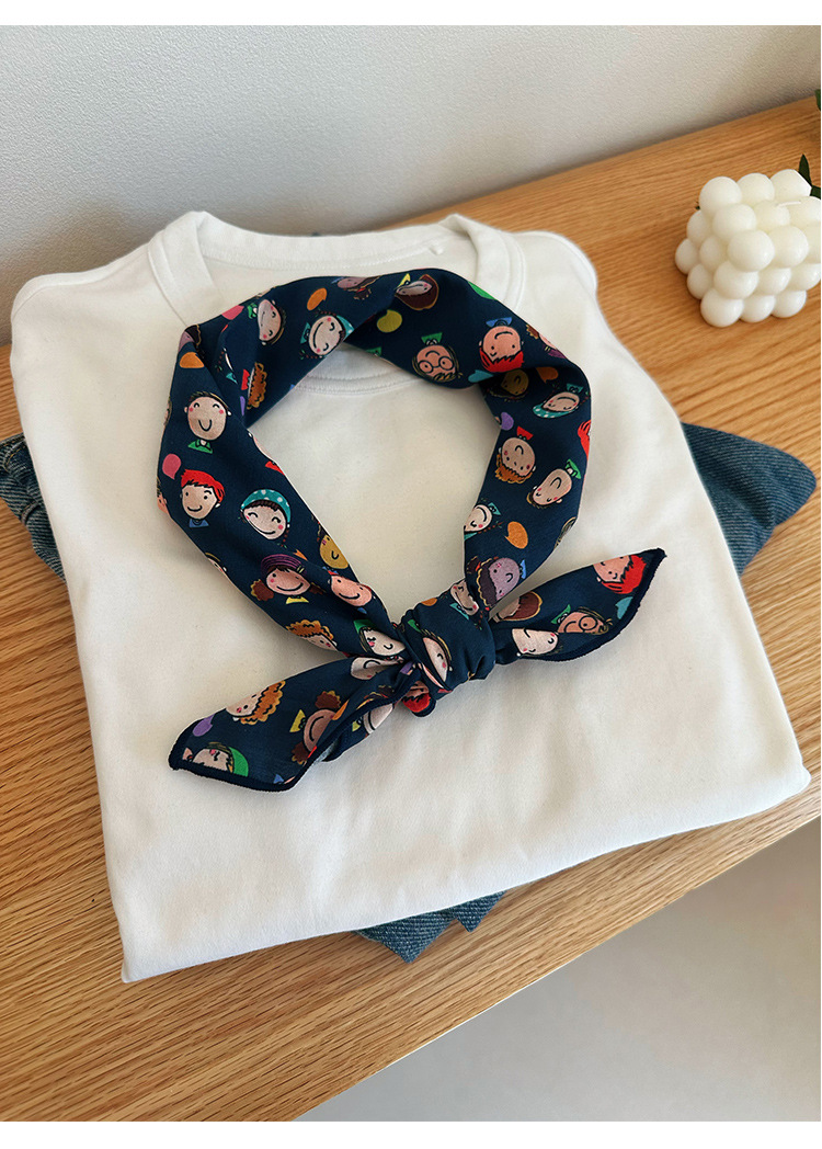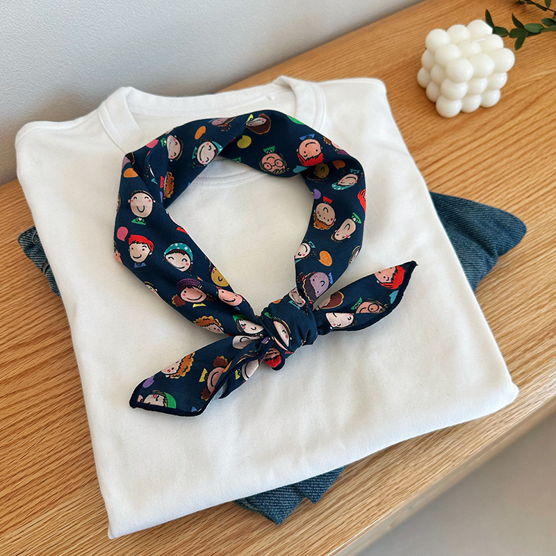 100% 면 한국 만화 아바타 작은 사각형 스카프 여성용 봄, 가을 목 보호 부모-자식 스카프 장식
