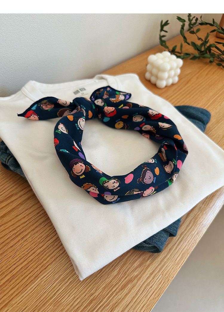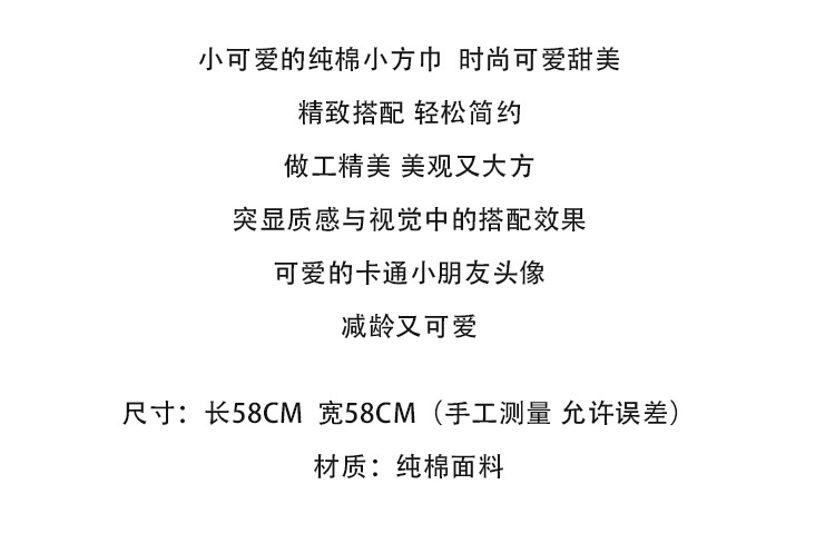 100% 면 한국 만화 아바타 작은 사각형 스카프 여성용 봄, 가을 목 보호 부모-자식 스카프 장식스토어 가기