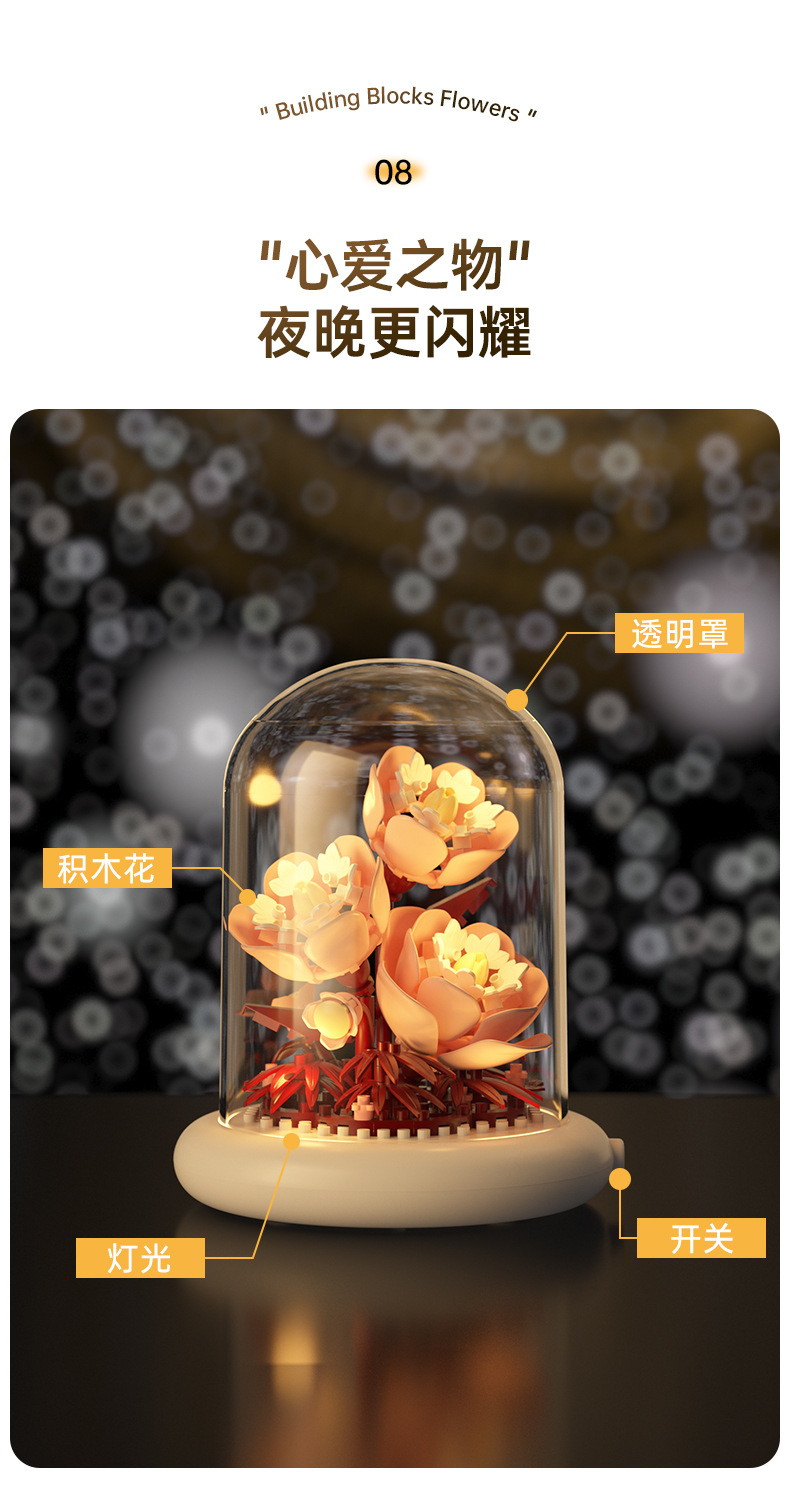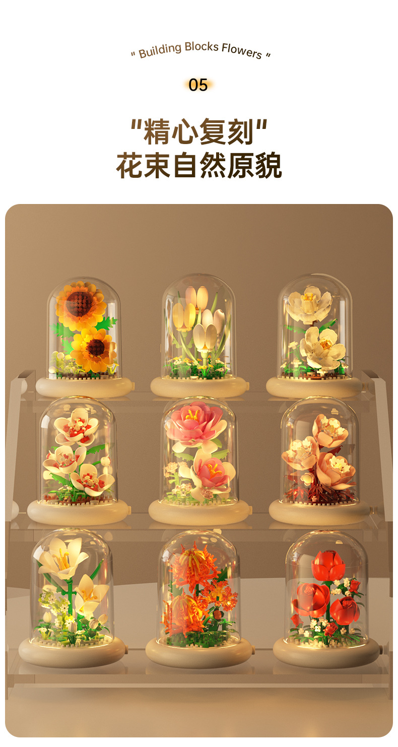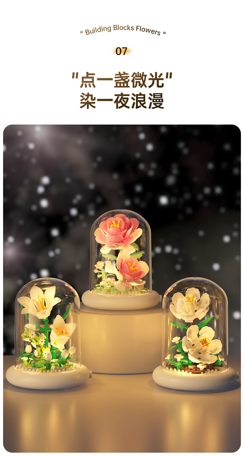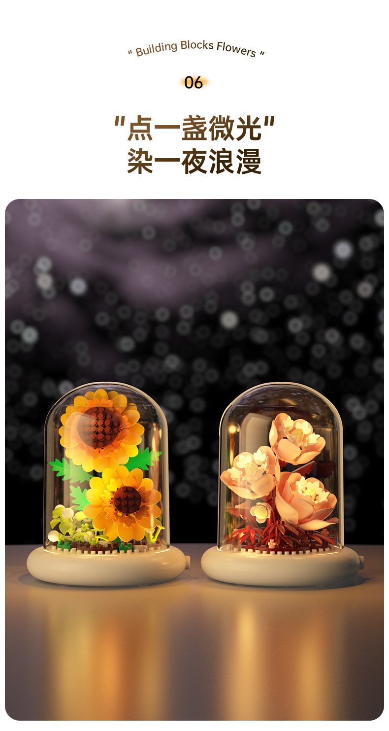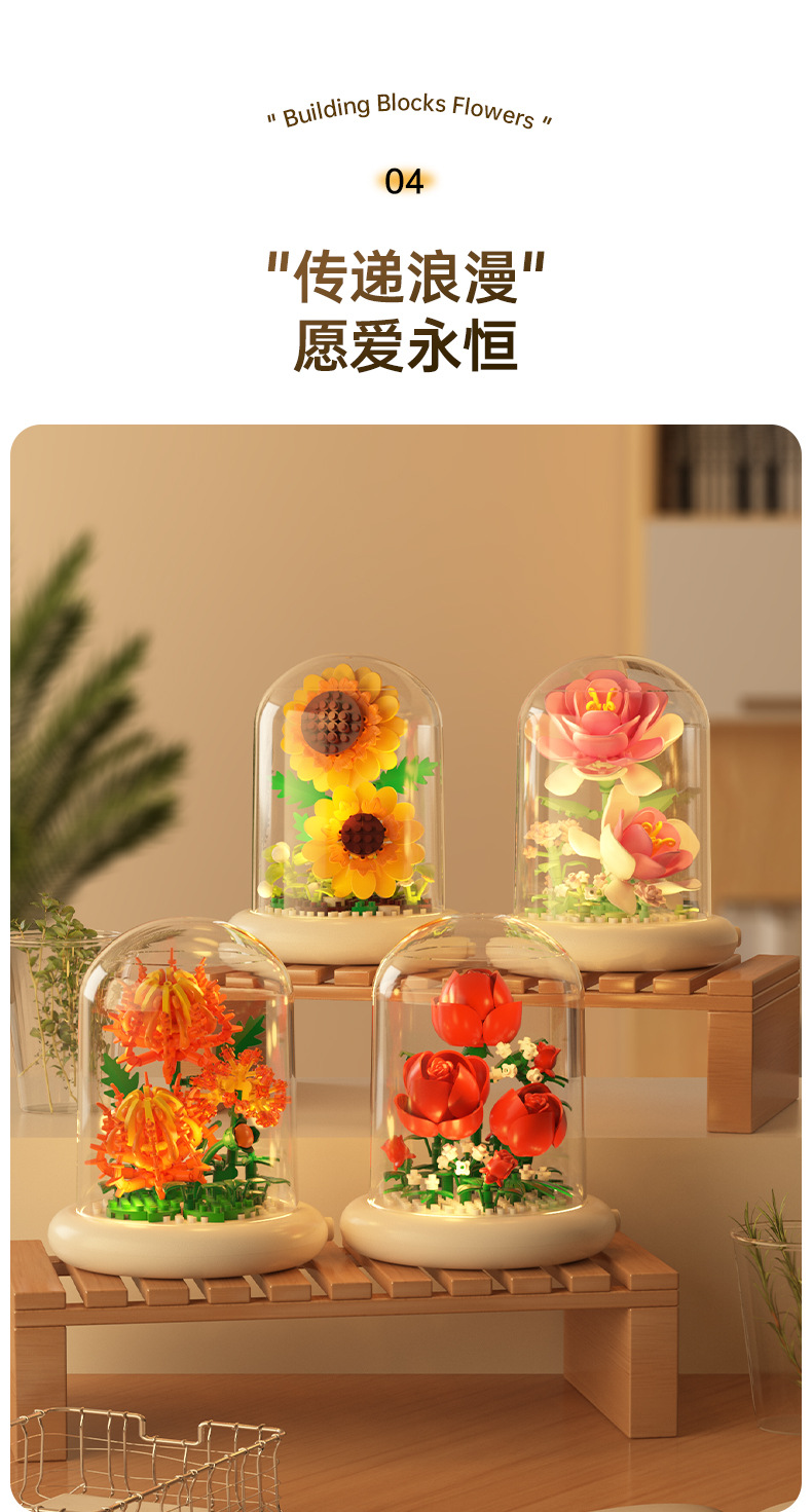영원한 꽃 건물 블록 꽃 먼지 커버 조명 기지 국경 간 발렌타인 데이 교사의 날 선물 교육 조립 장난감스토어 가기
