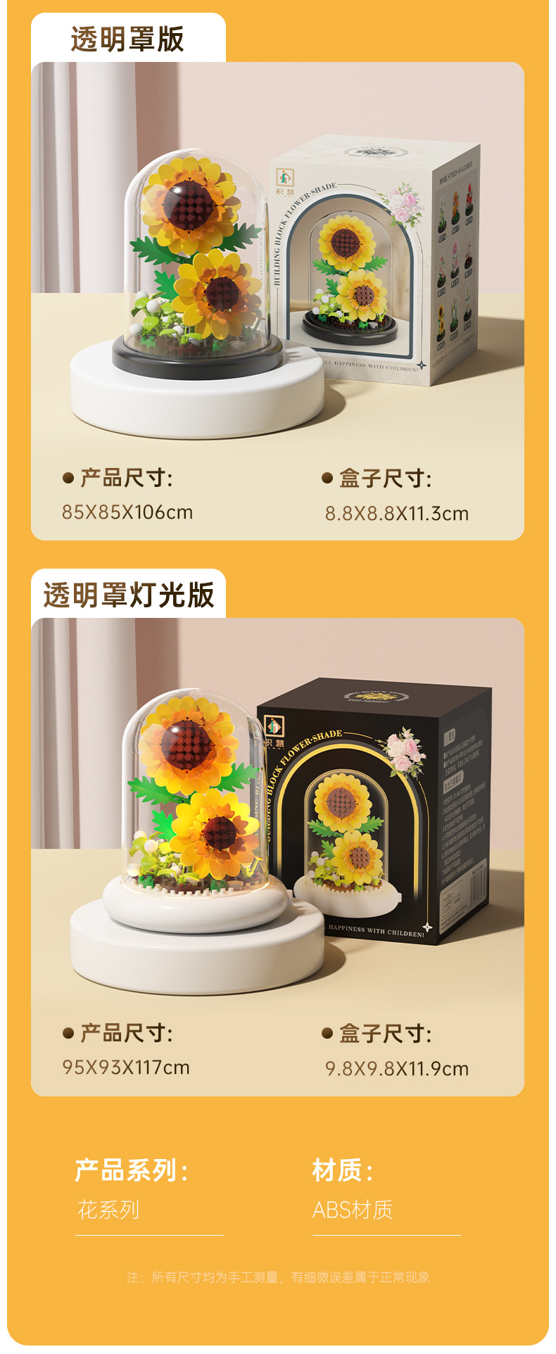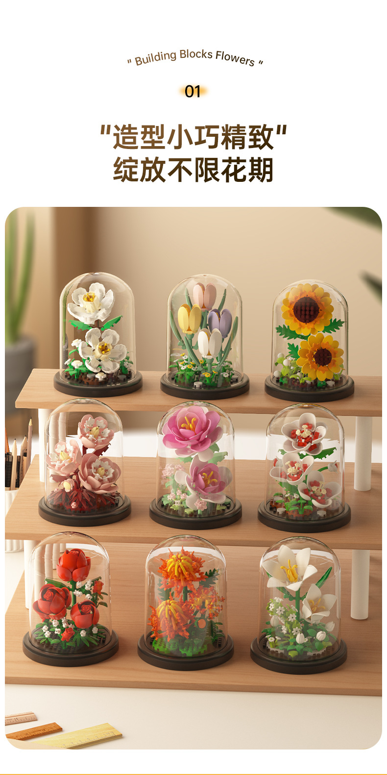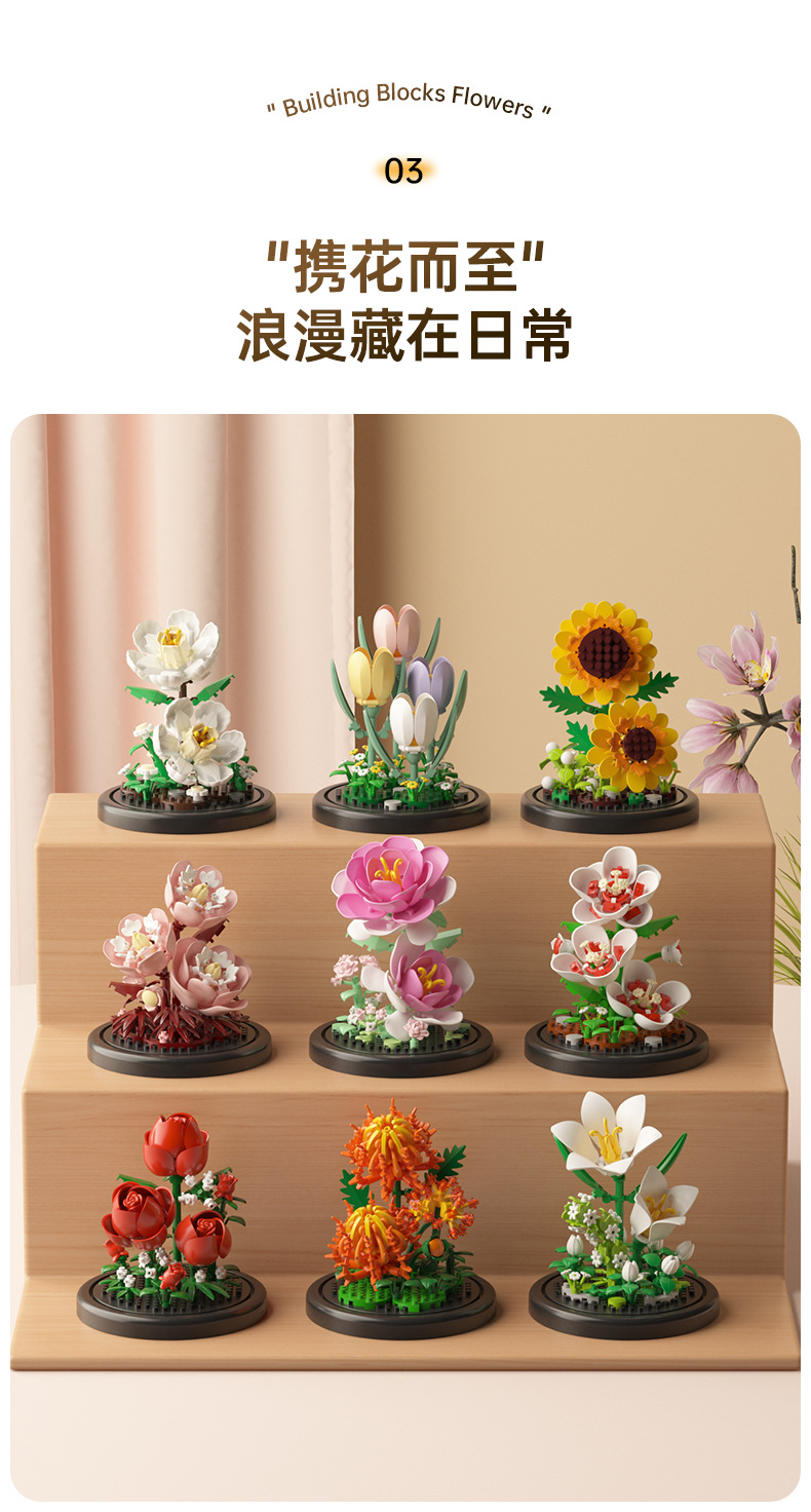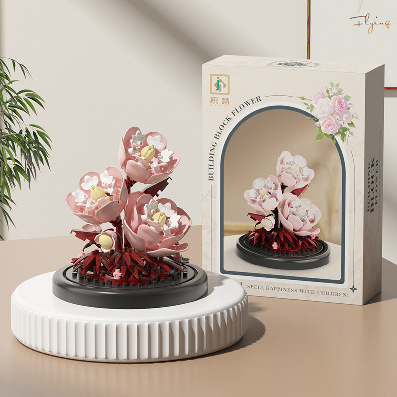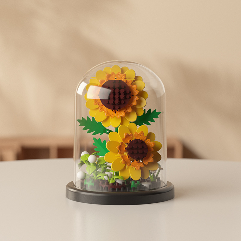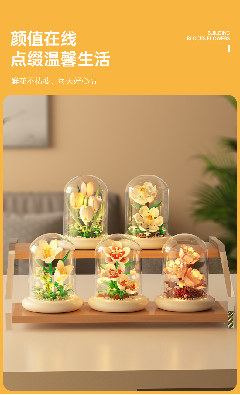 영원한 꽃 건물 블록 꽃 먼지 커버 조명 기지 국경 간 발렌타인 데이 교사의 날 선물 교육 조립 장난감스토어 가기