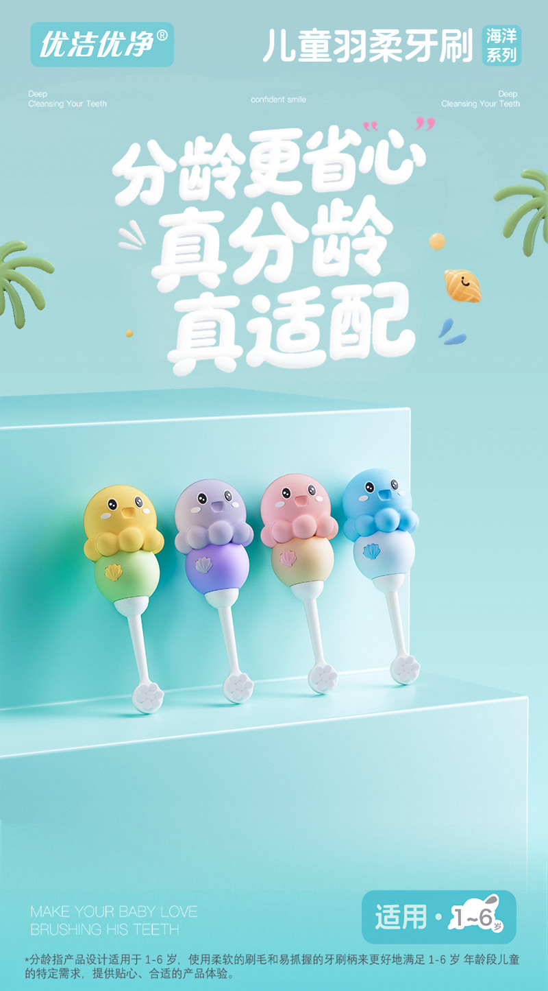 문어 어린이 만화 칫솔 귀여운 부드러운 강모 칫솔 1-6 세 아기 수동 청소 양주 칫솔 도매스토어 가기