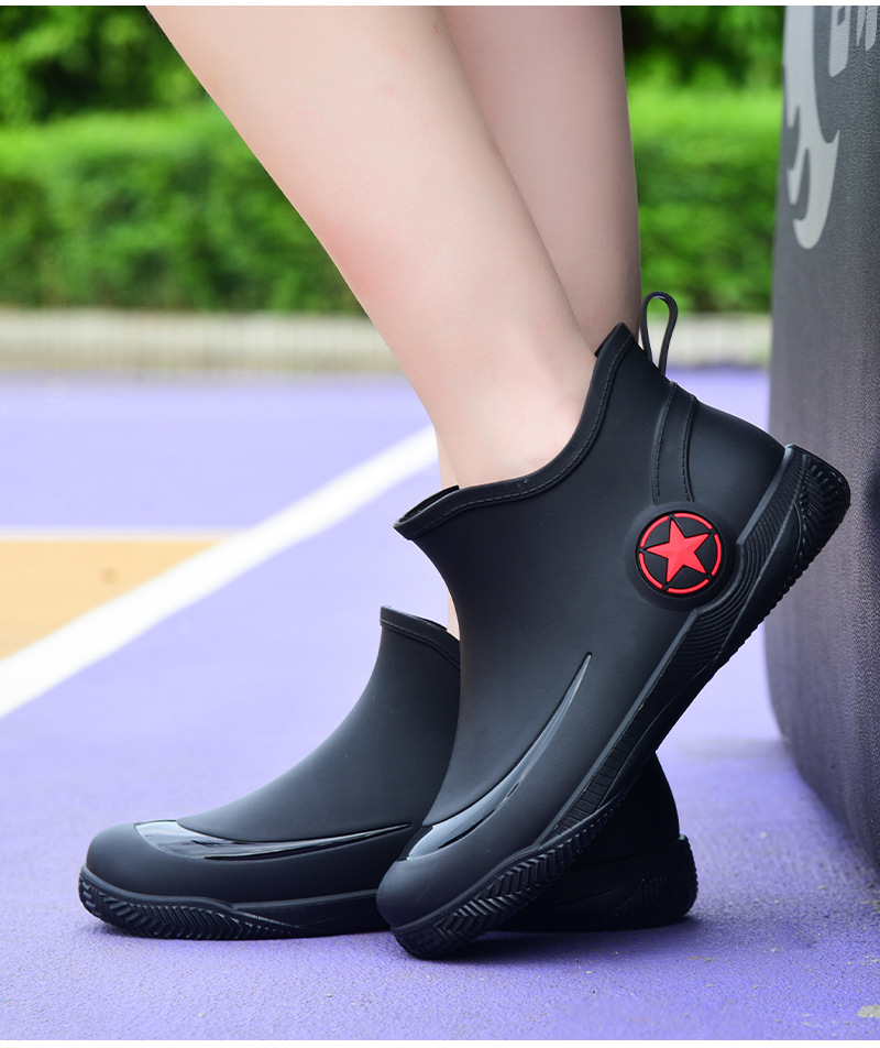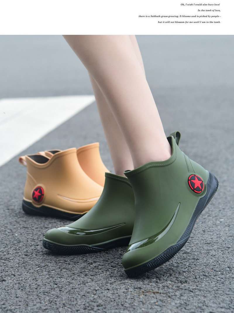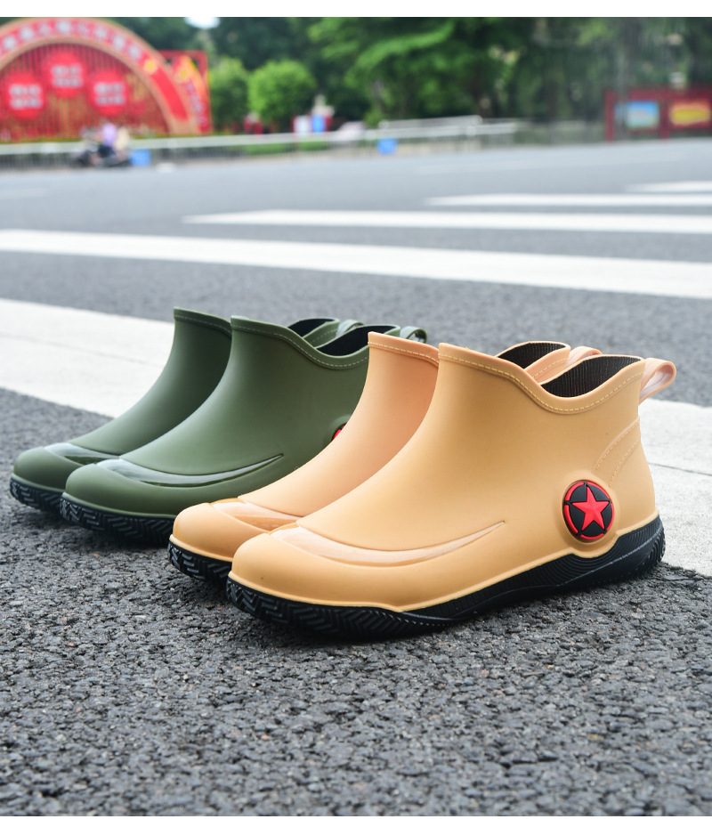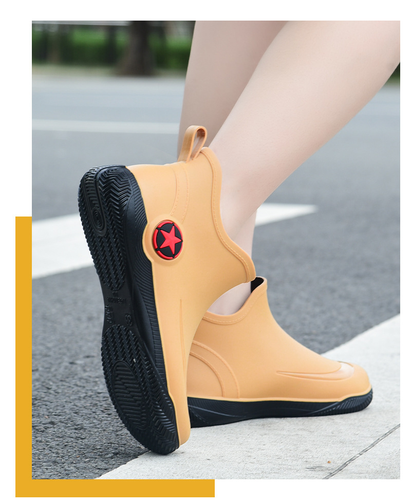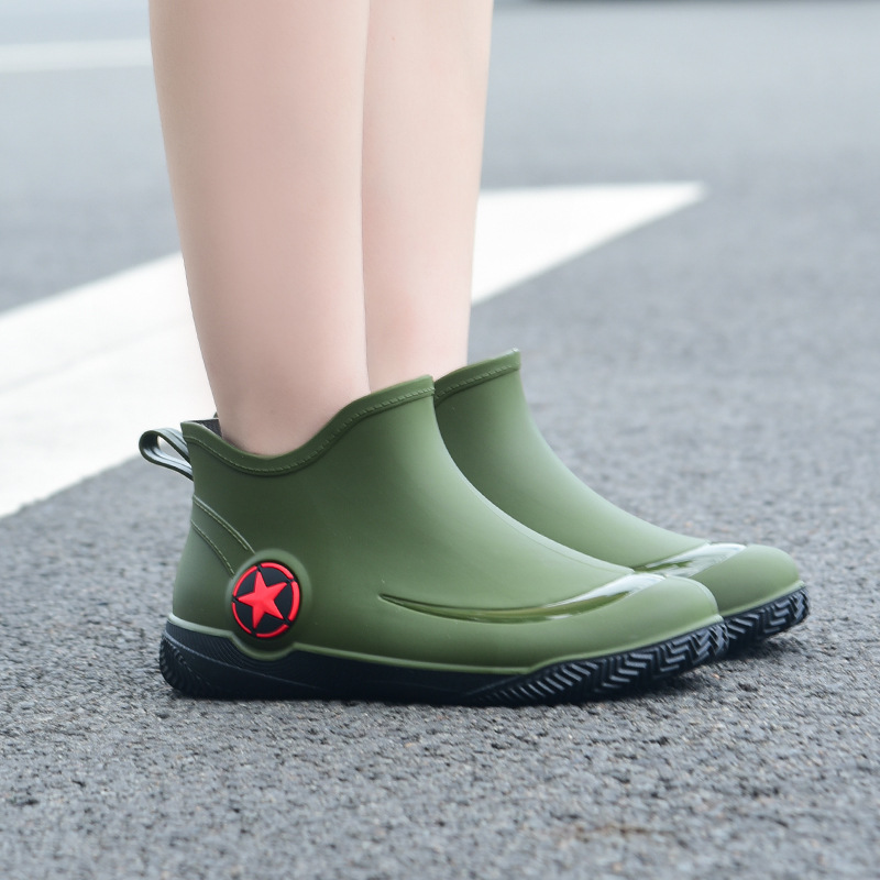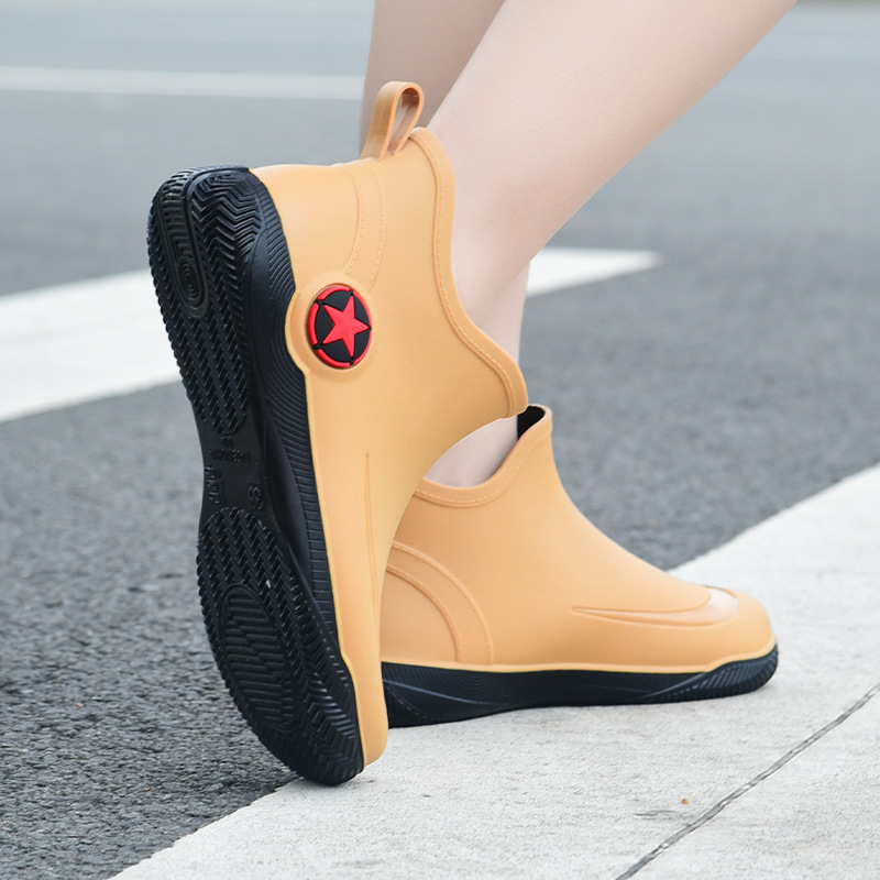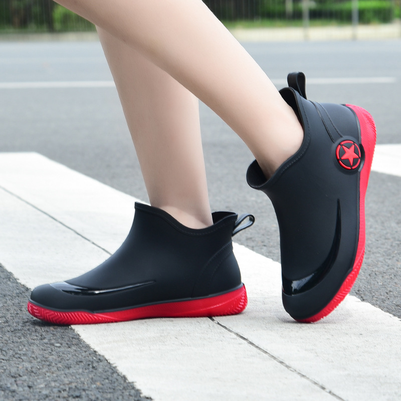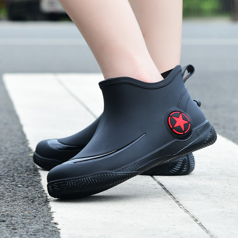 남성과 여성을 위한 세련된 짧은 장화, 로우탑 미끄럼 방지 방수 신발, 캐주얼 얕은 장화, 인기 신발, 플랫 고무 신발 도매스토어 가기
