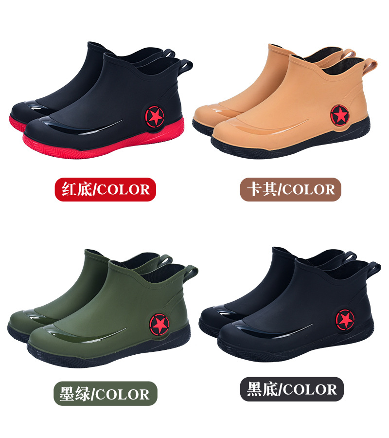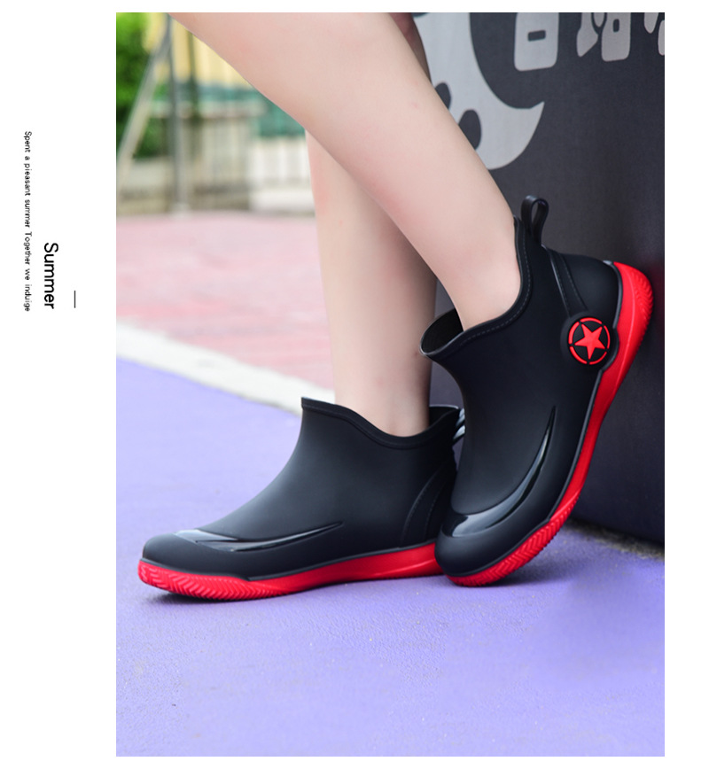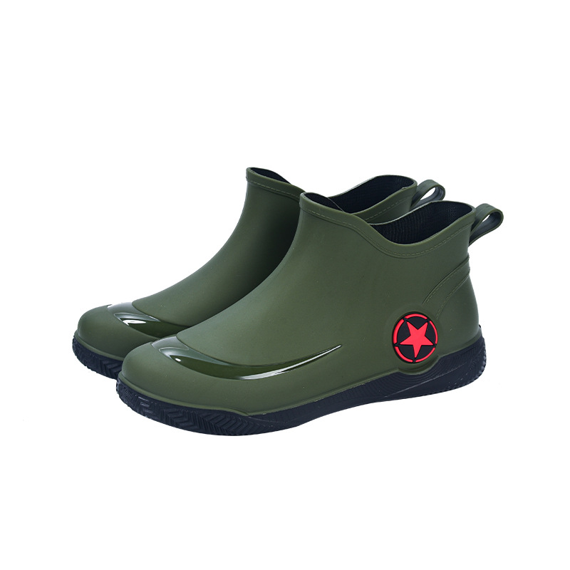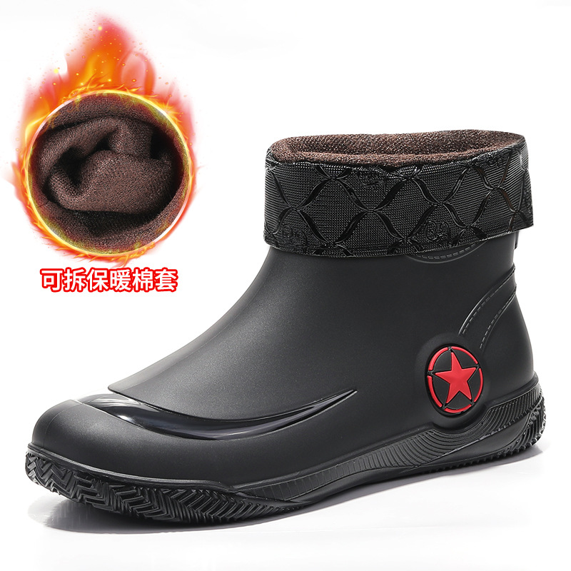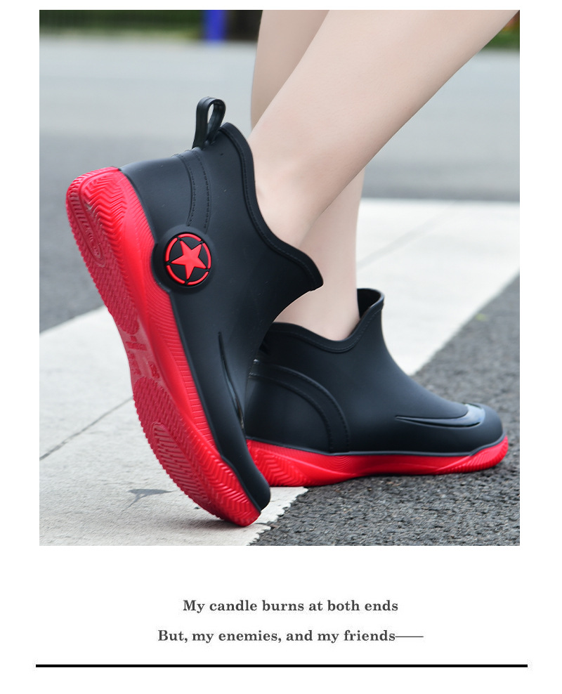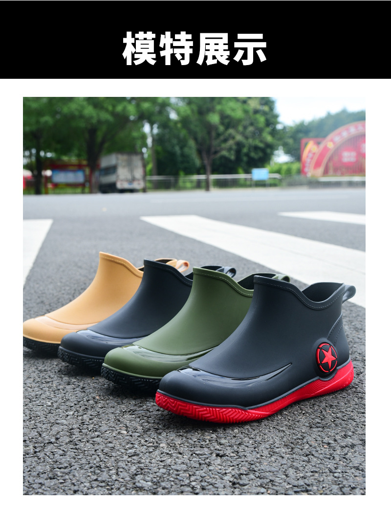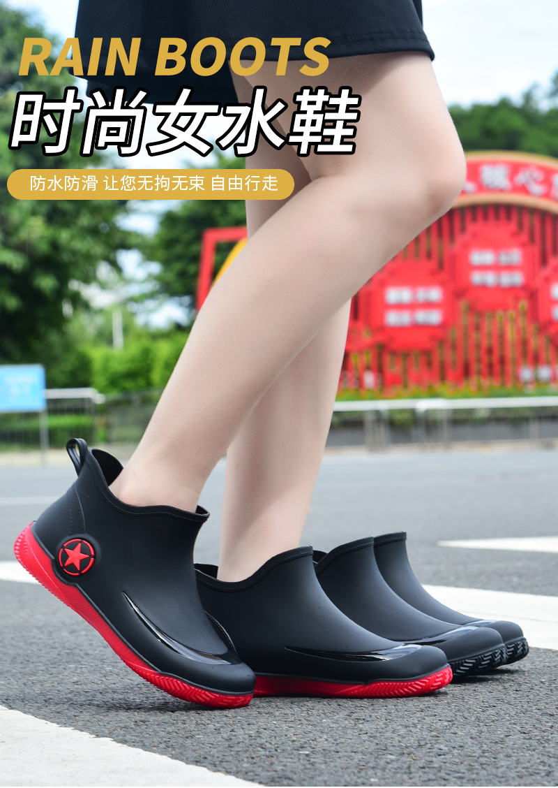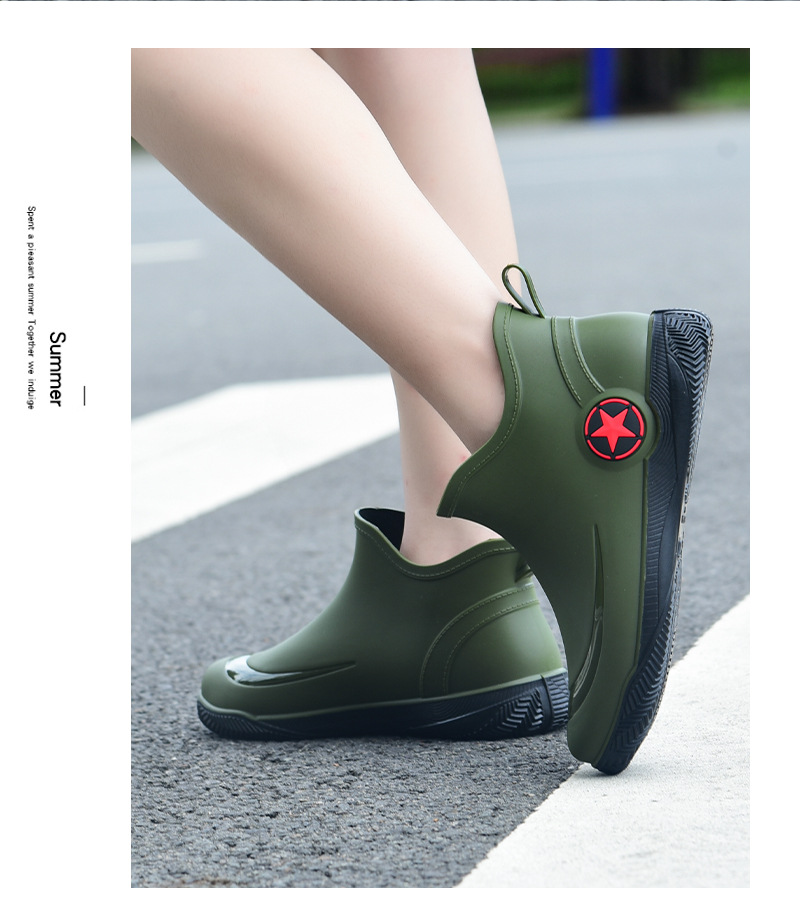 남성과 여성을 위한 세련된 짧은 장화, 로우탑 미끄럼 방지 방수 신발, 캐주얼 얕은 장화, 인기 신발, 플랫 고무 신발 도매스토어 가기