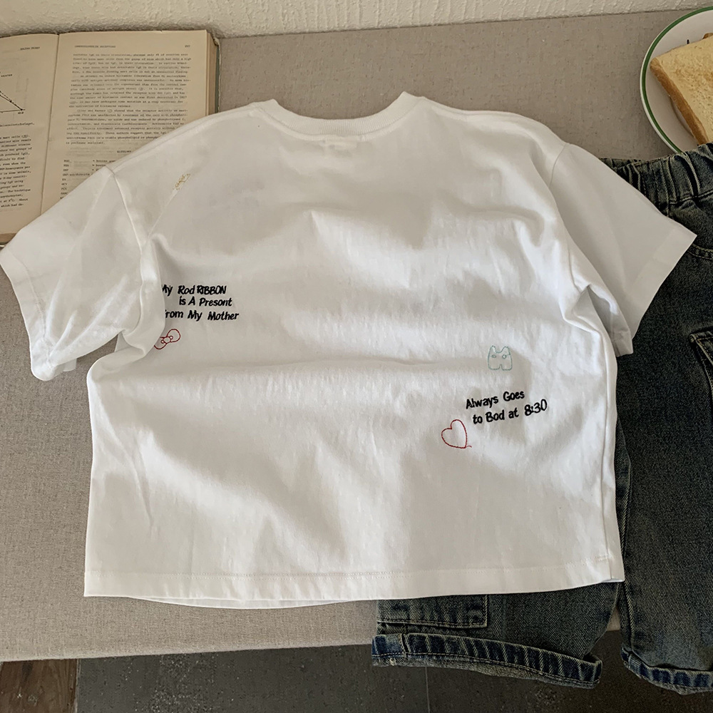 소년 반팔 여름 티셔츠 수 놓은 2025 새로운 어린이 잘 생긴 올매치 아기 소녀의 여름 소년 트렌디 아동복