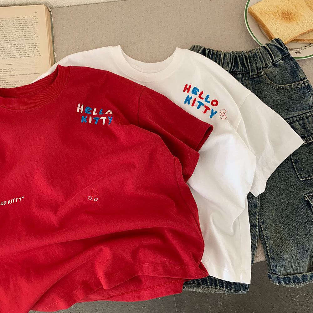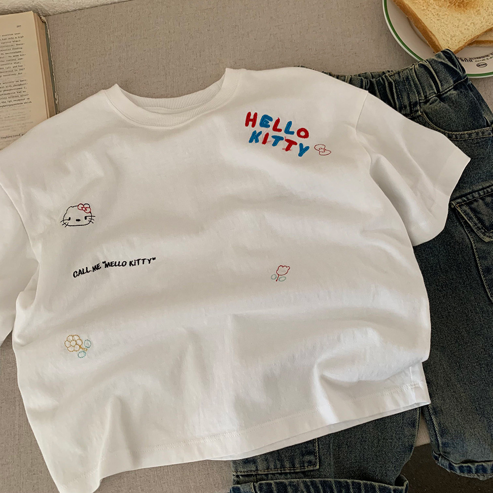 소년 반팔 여름 티셔츠 수 놓은 2025 새로운 어린이 잘 생긴 올매치 아기 소녀의 여름 소년 트렌디 아동복스토어 가기