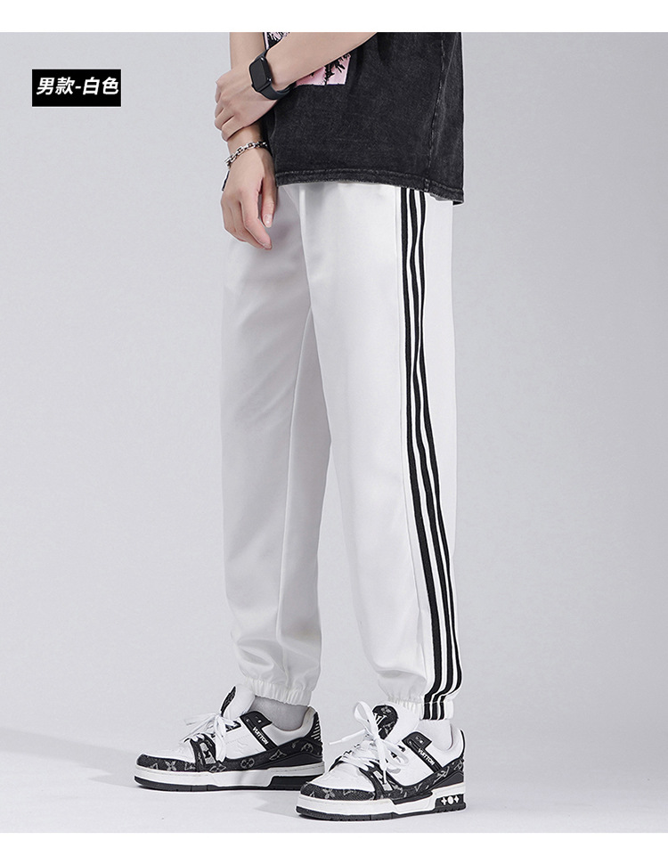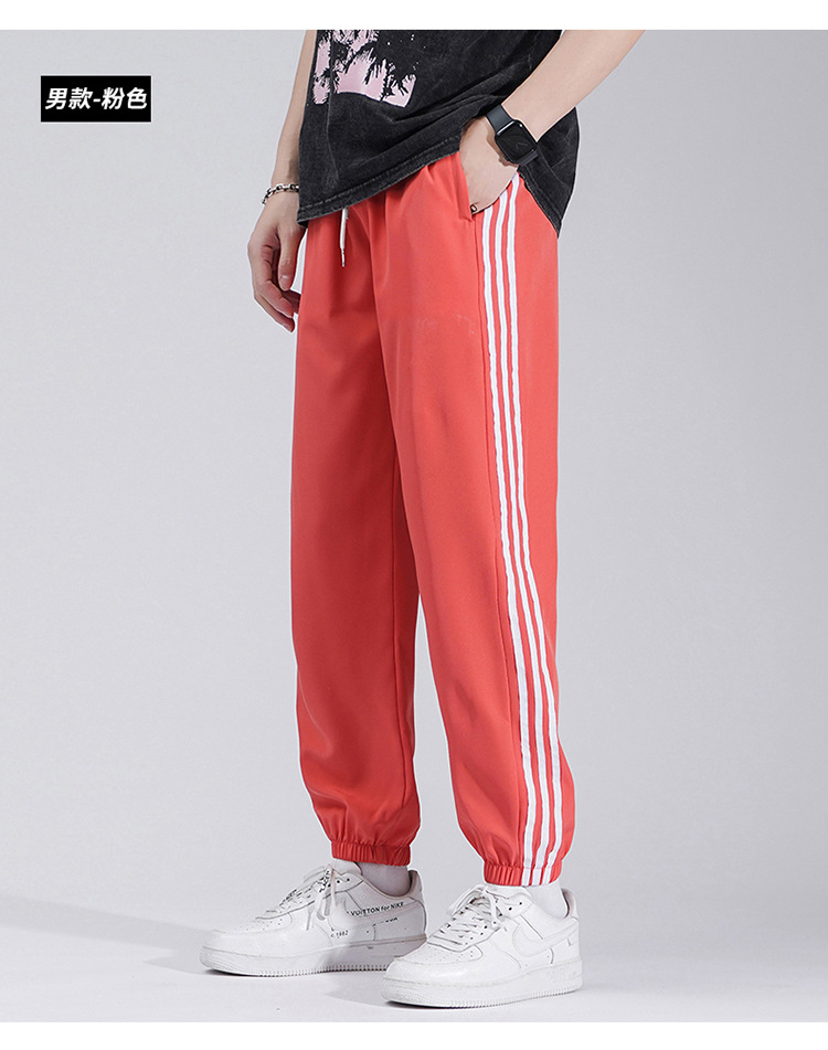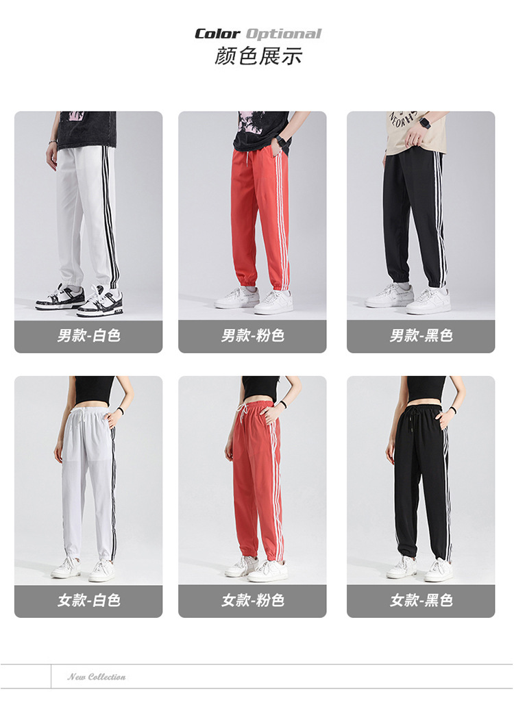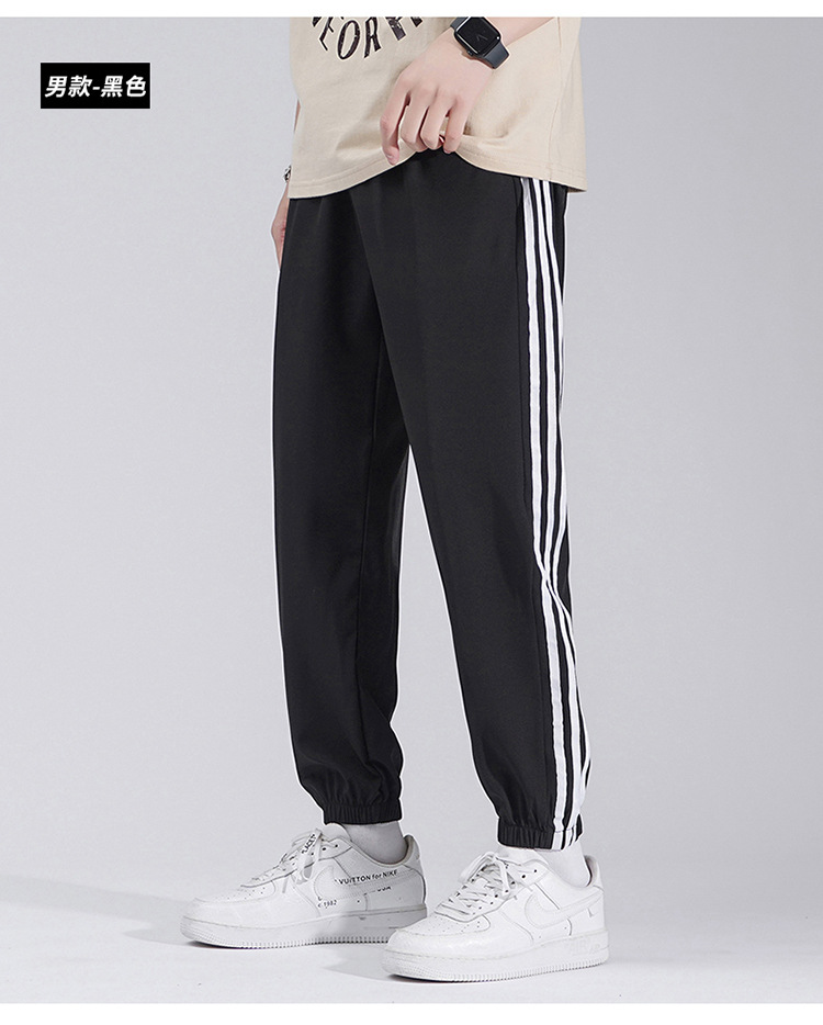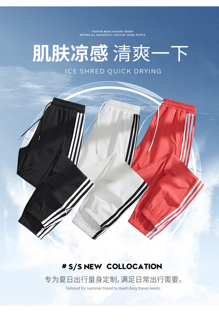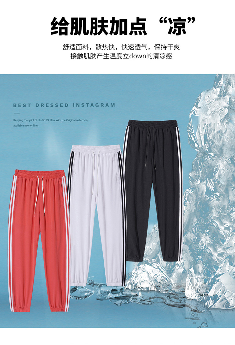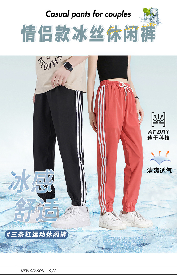 2025 여름 남성과 여성을 위한 세 줄의 아이스 실크 9부 바지, 커플 캐주얼 바지, 남성용 속건성 통기성 스포츠 바지스토어 가기
