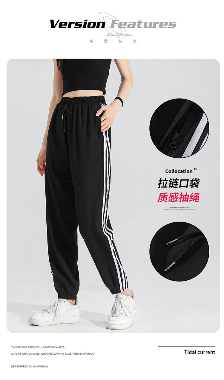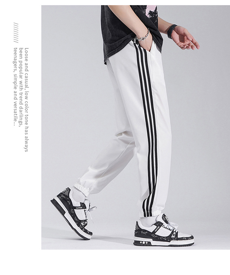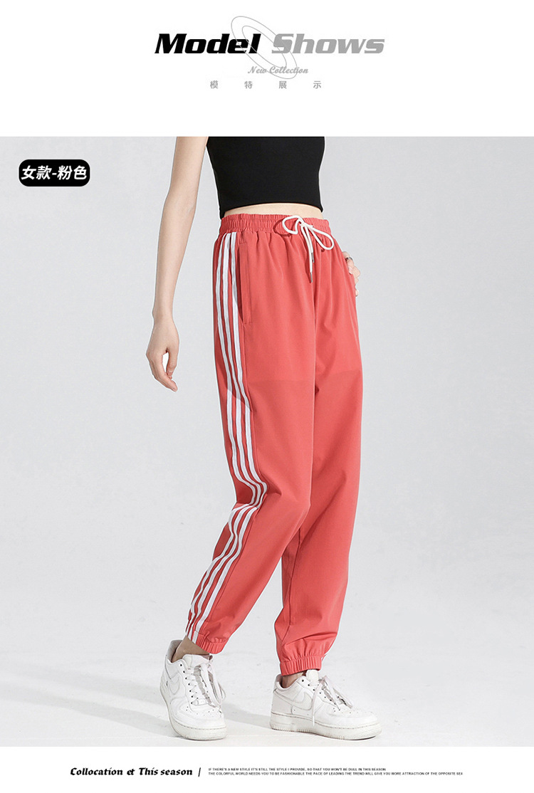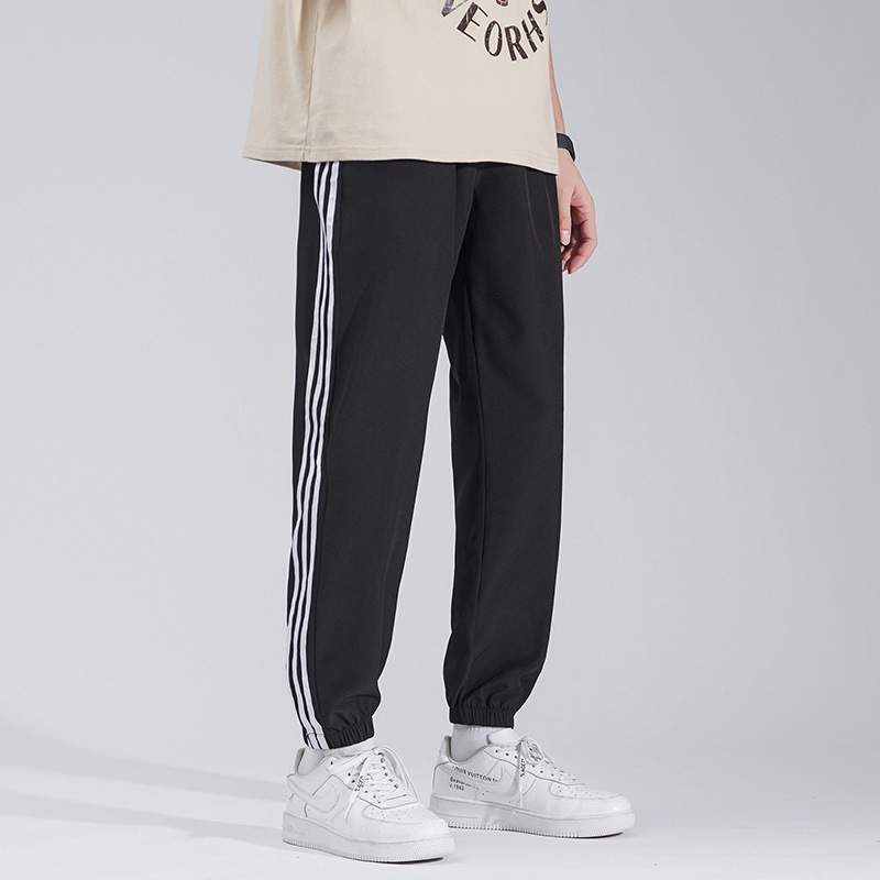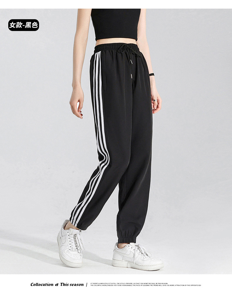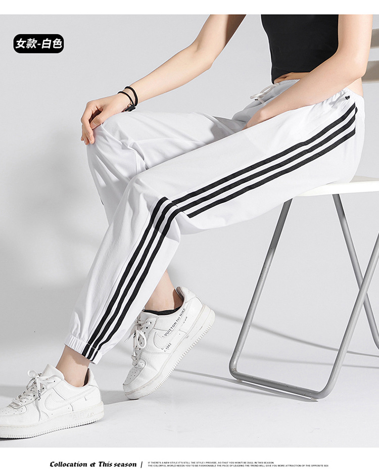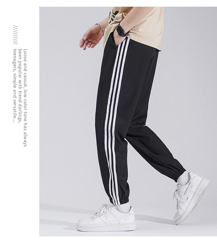 2025 여름 남성과 여성을 위한 세 줄의 아이스 실크 9부 바지, 커플 캐주얼 바지, 남성용 속건성 통기성 스포츠 바지스토어 가기