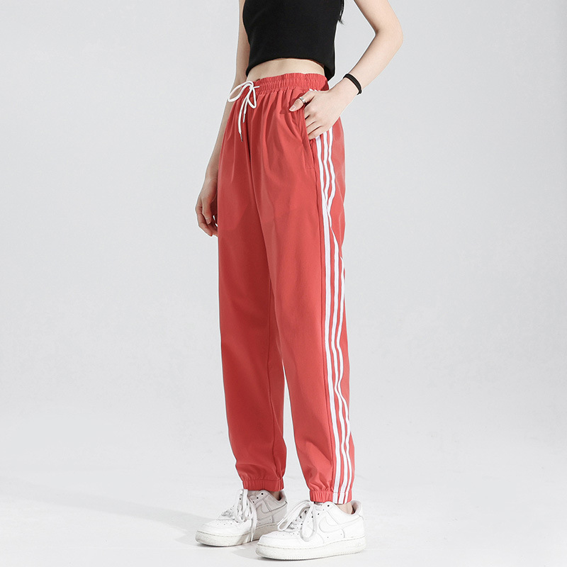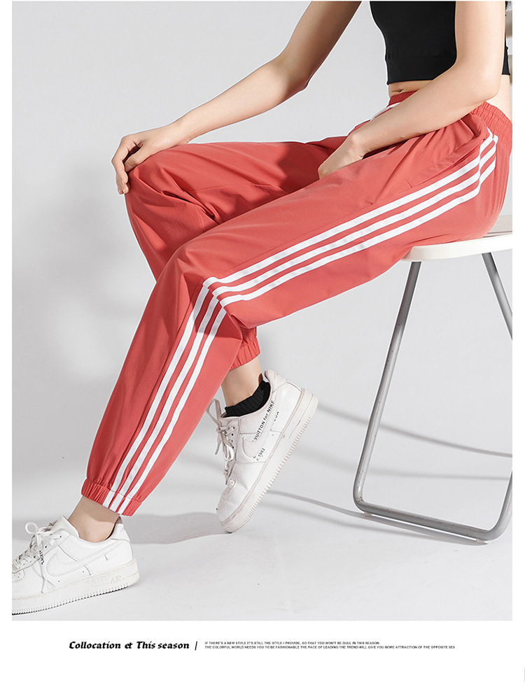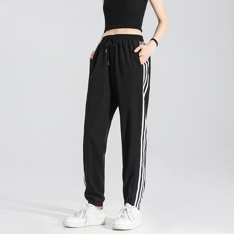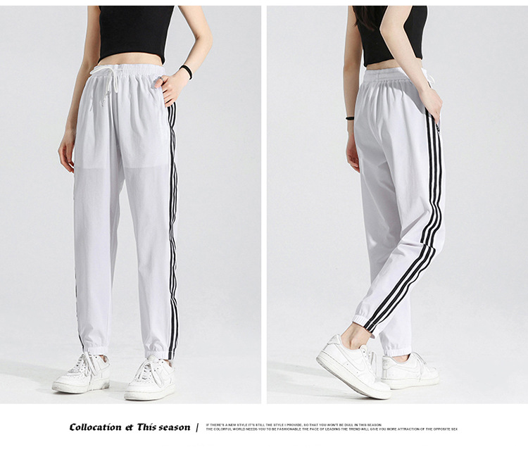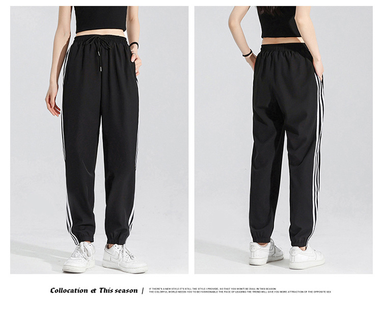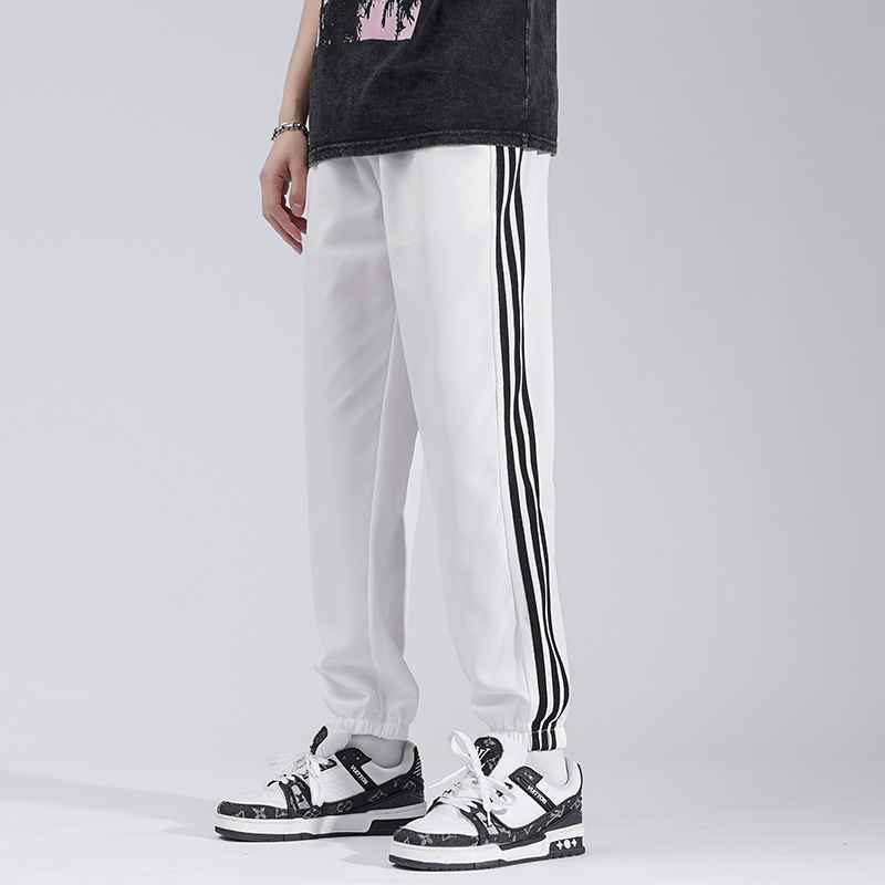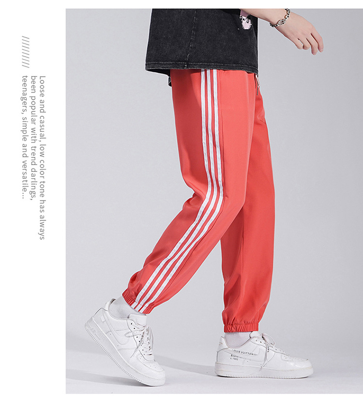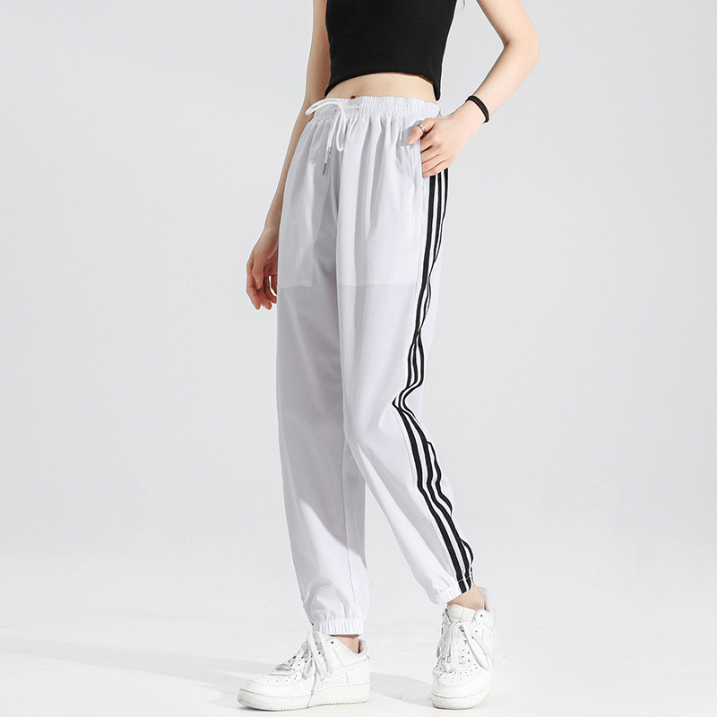 2025 여름 남성과 여성을 위한 세 줄의 아이스 실크 9부 바지, 커플 캐주얼 바지, 남성용 속건성 통기성 스포츠 바지스토어 가기