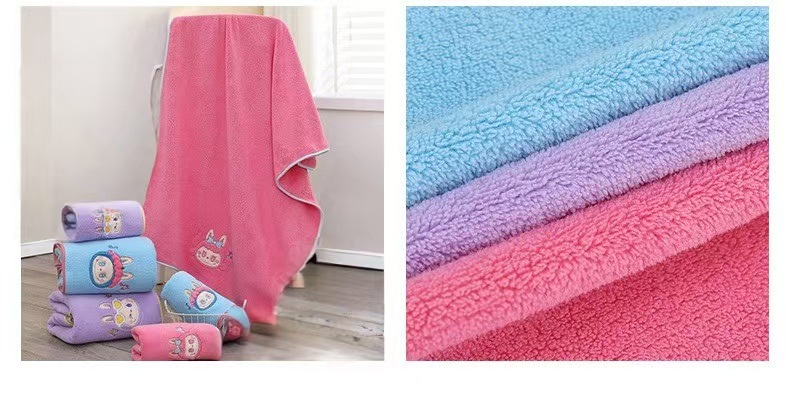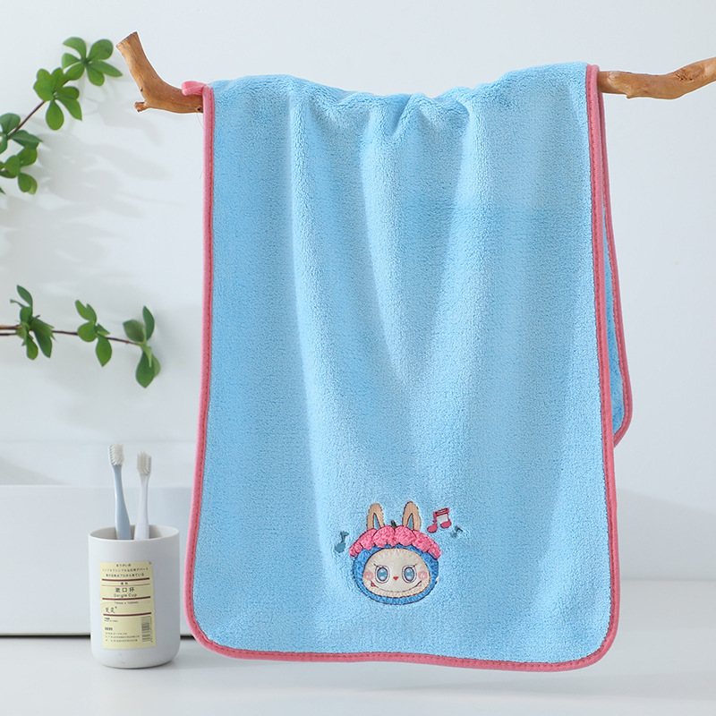 만화 자수 천 수건 투피스 세트 귀여운 학생 랩 수건 흡수성 목욕 타월 산호 양털 2 피스 세트