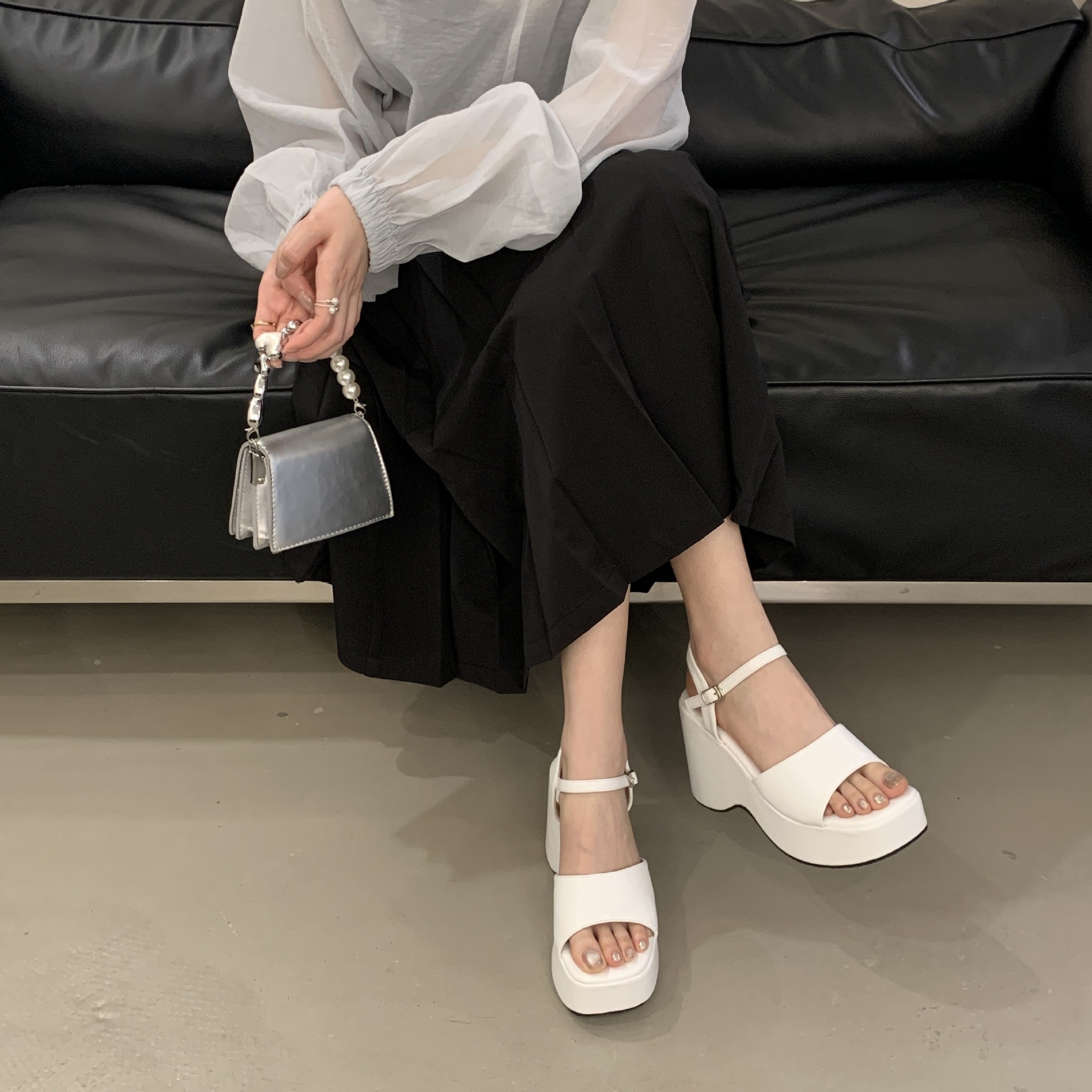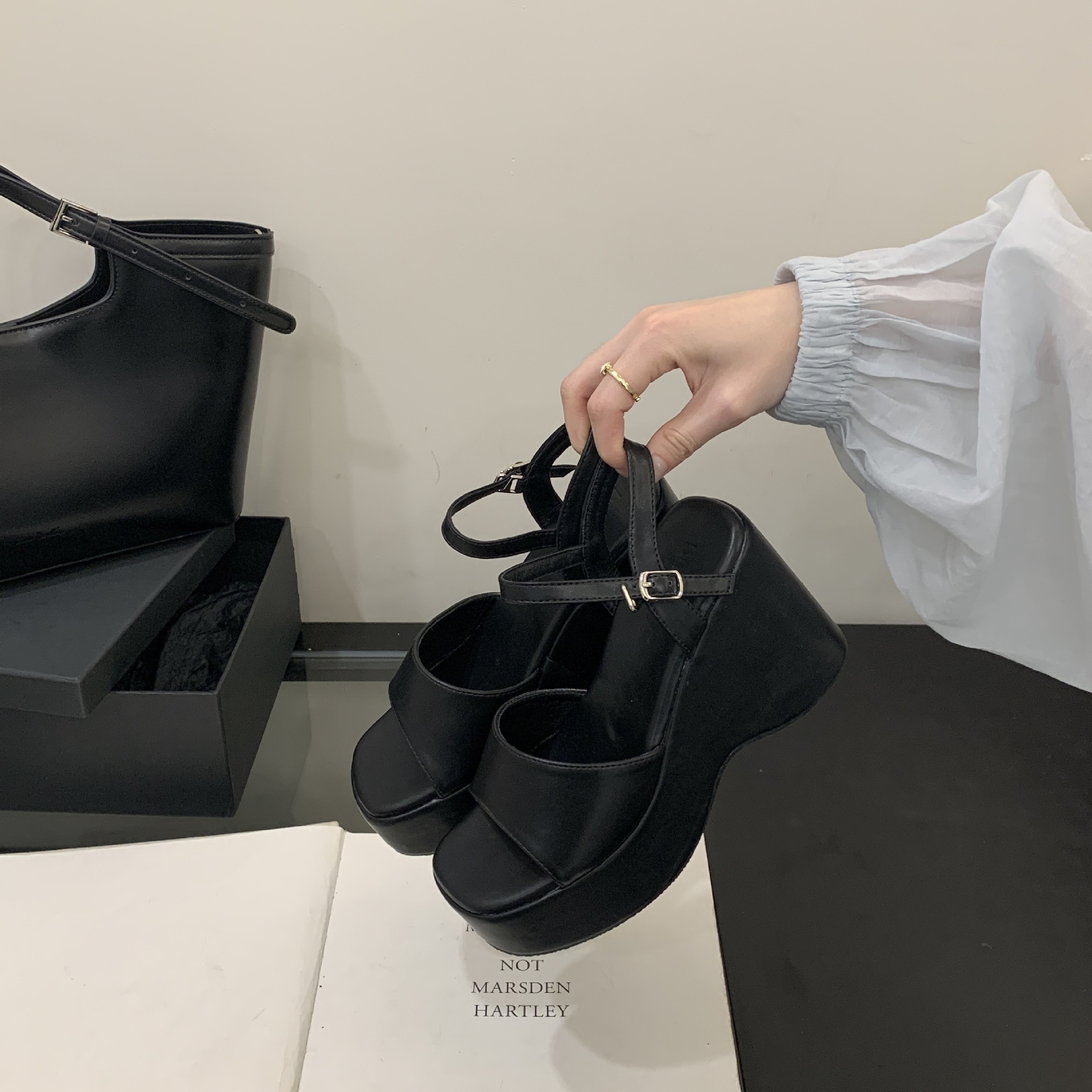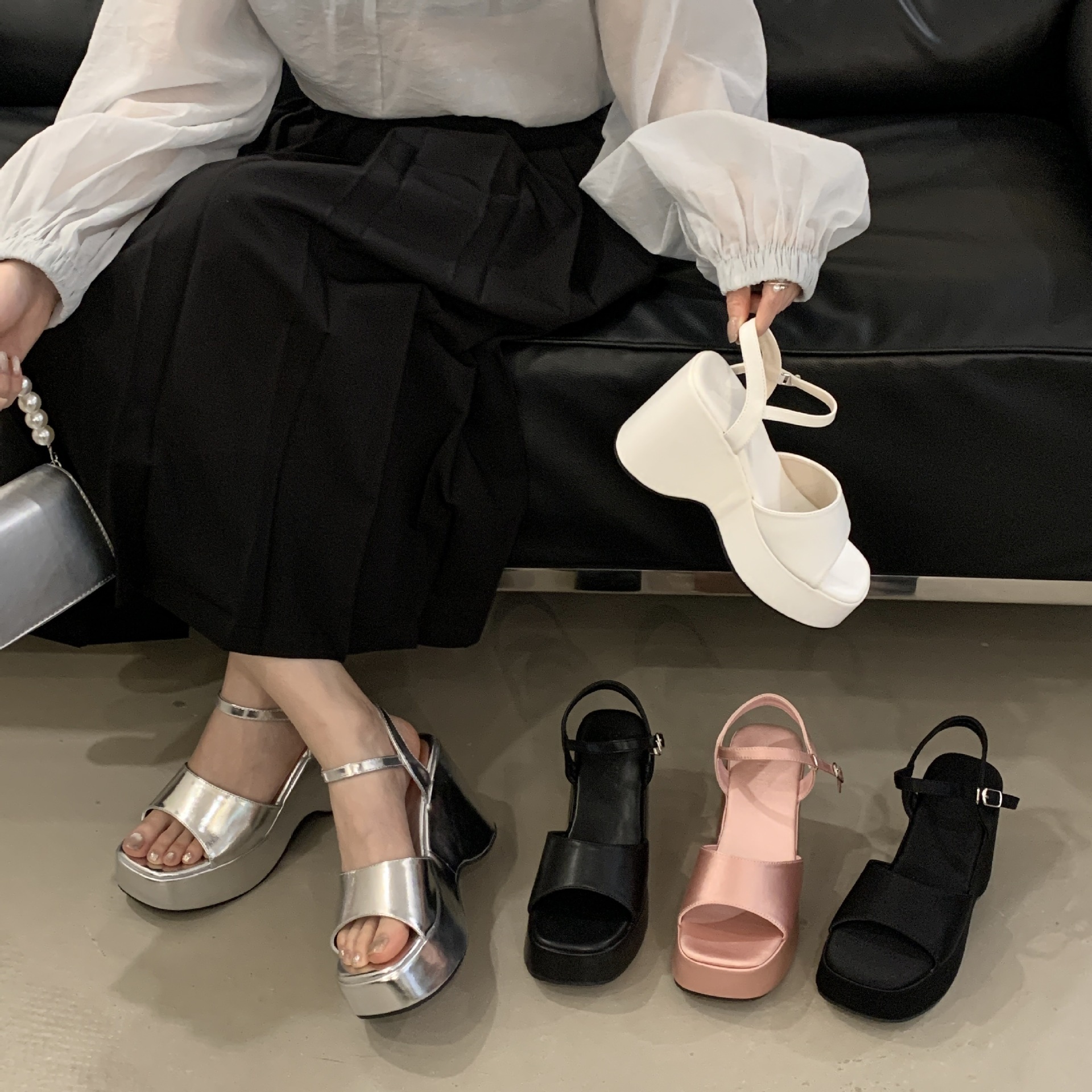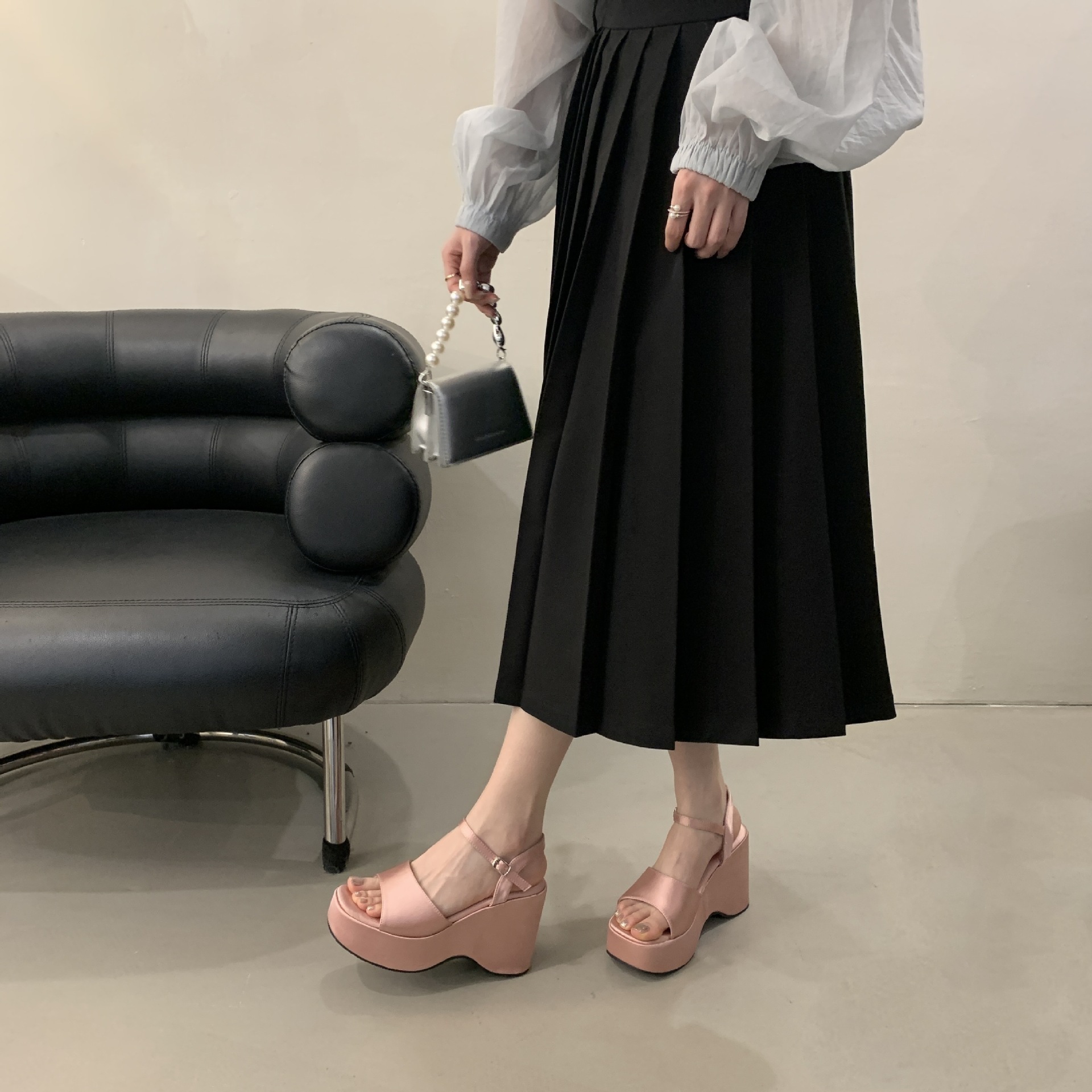한국 동대문 여성화, 슬림하고 우아한 현아의 연령 감소 핑크 오픈토 여성용 두꺼운 굽 방수 플랫폼 샌들스토어 가기