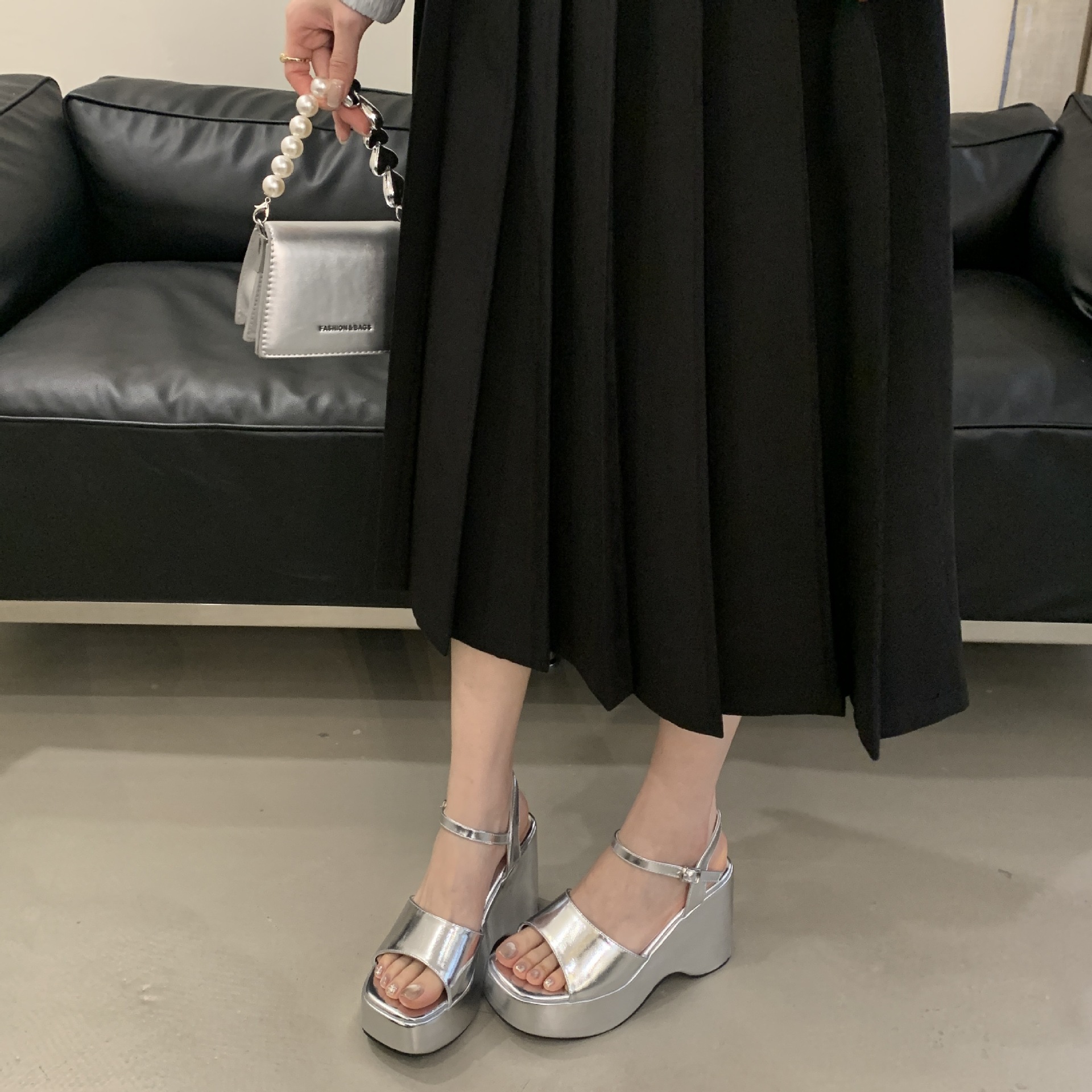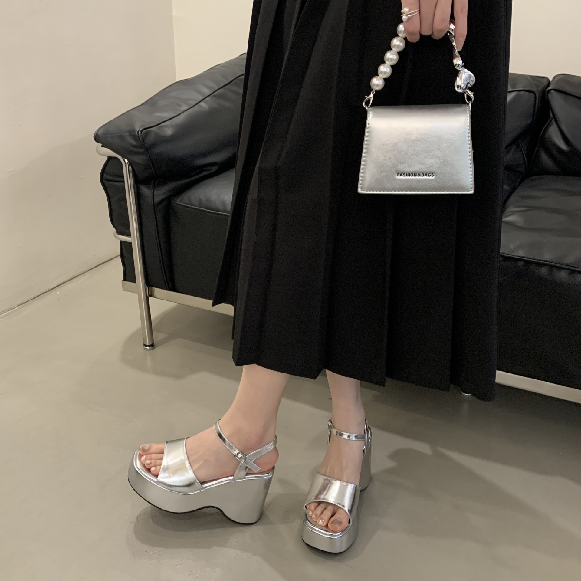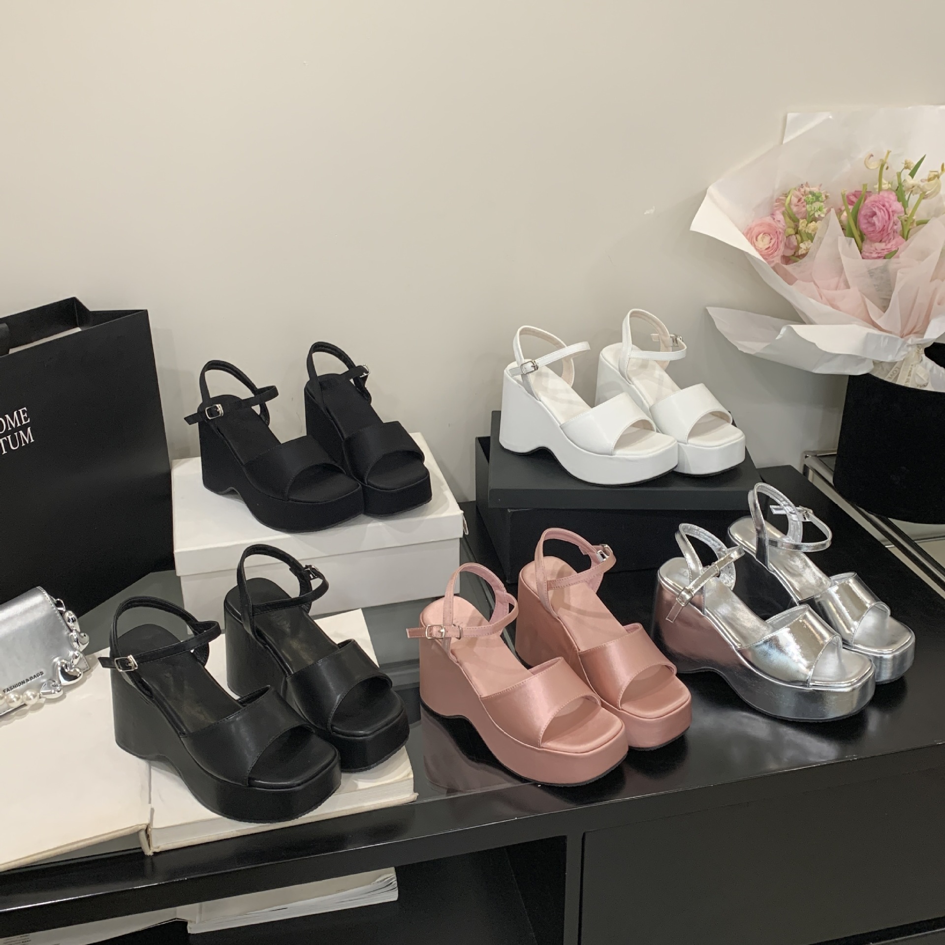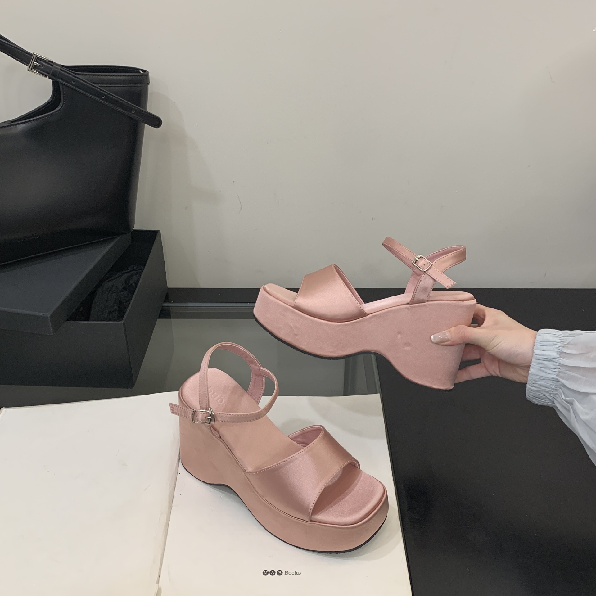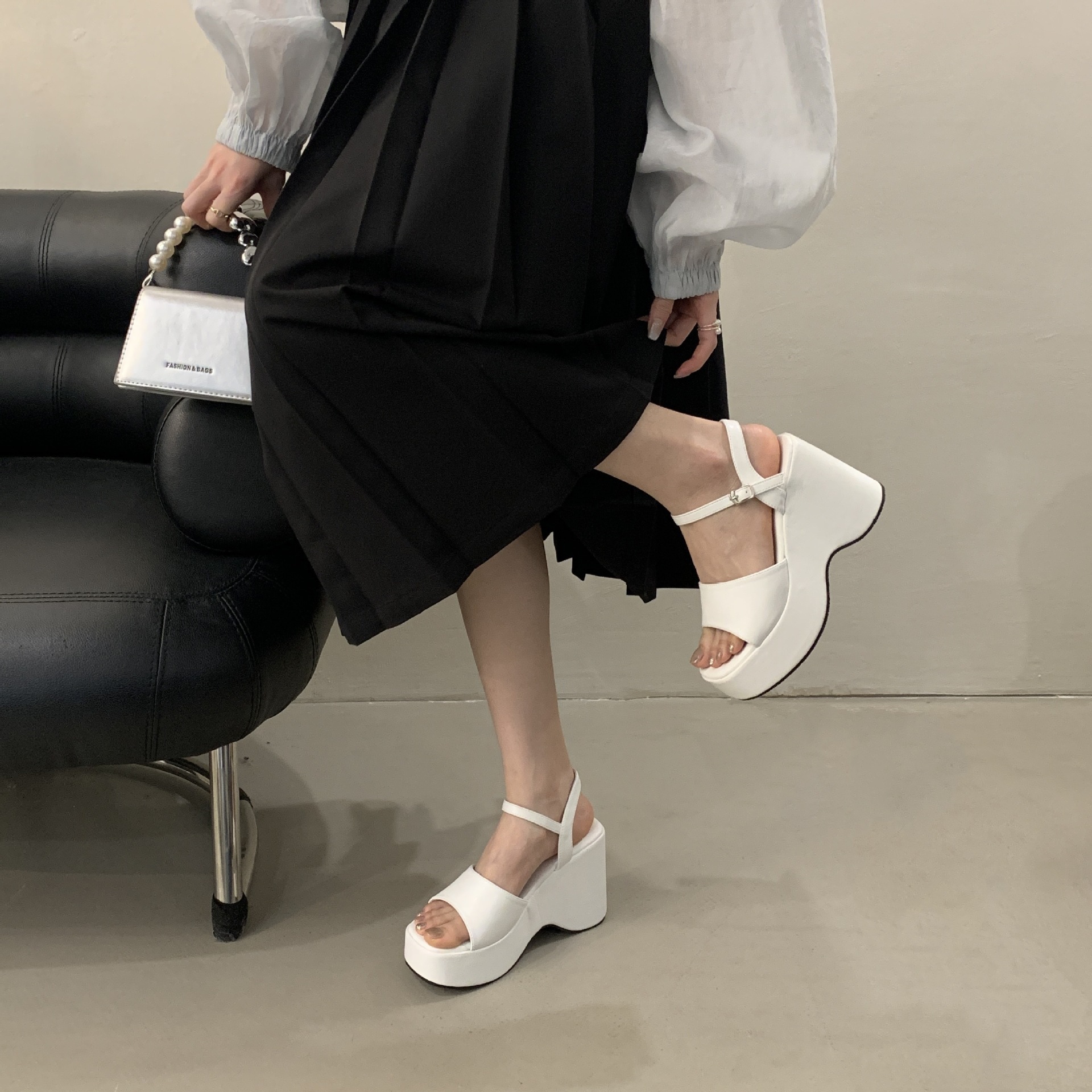 한국 동대문 여성화, 슬림하고 우아한 현아의 연령 감소 핑크 오픈토 여성용 두꺼운 굽 방수 플랫폼 샌들스토어 가기