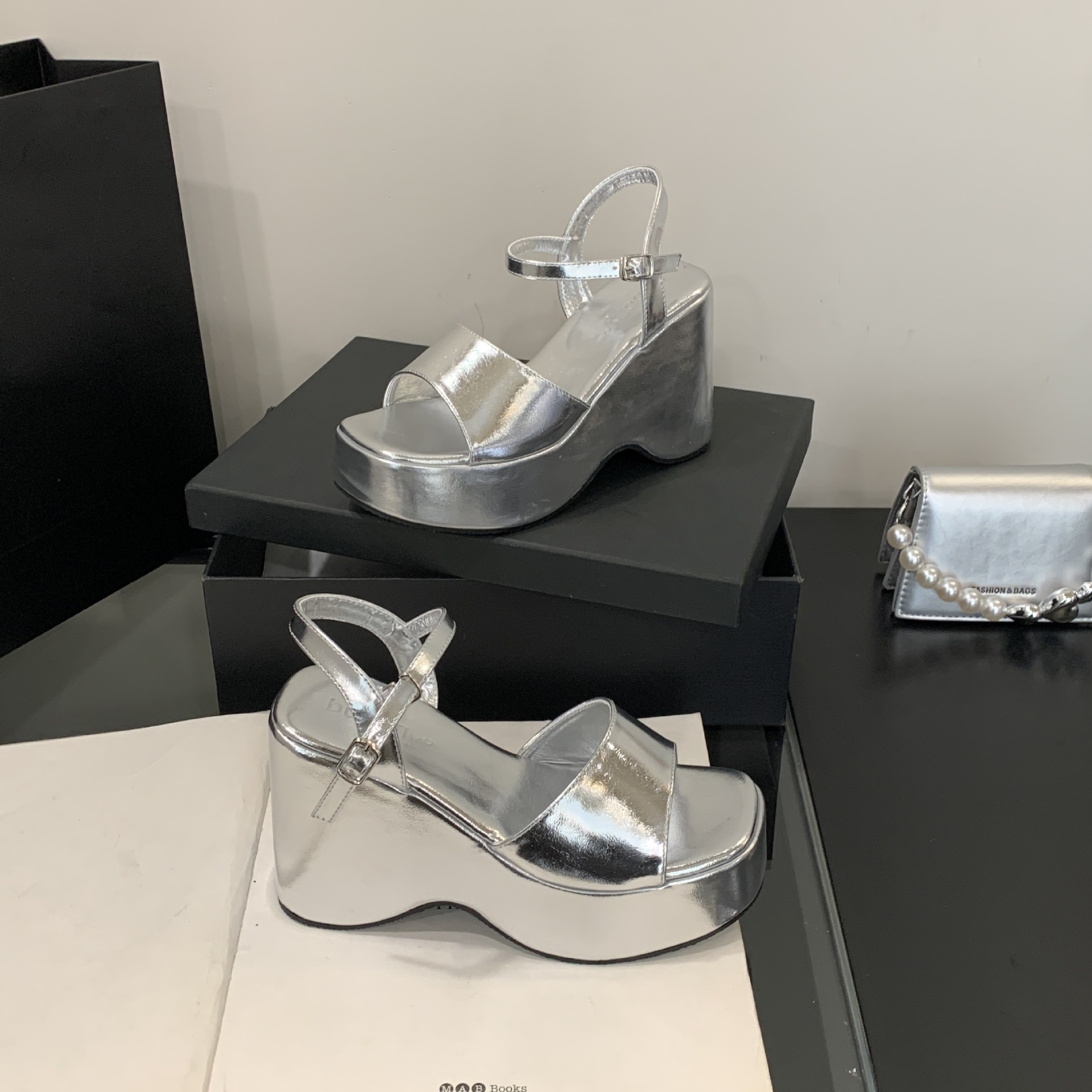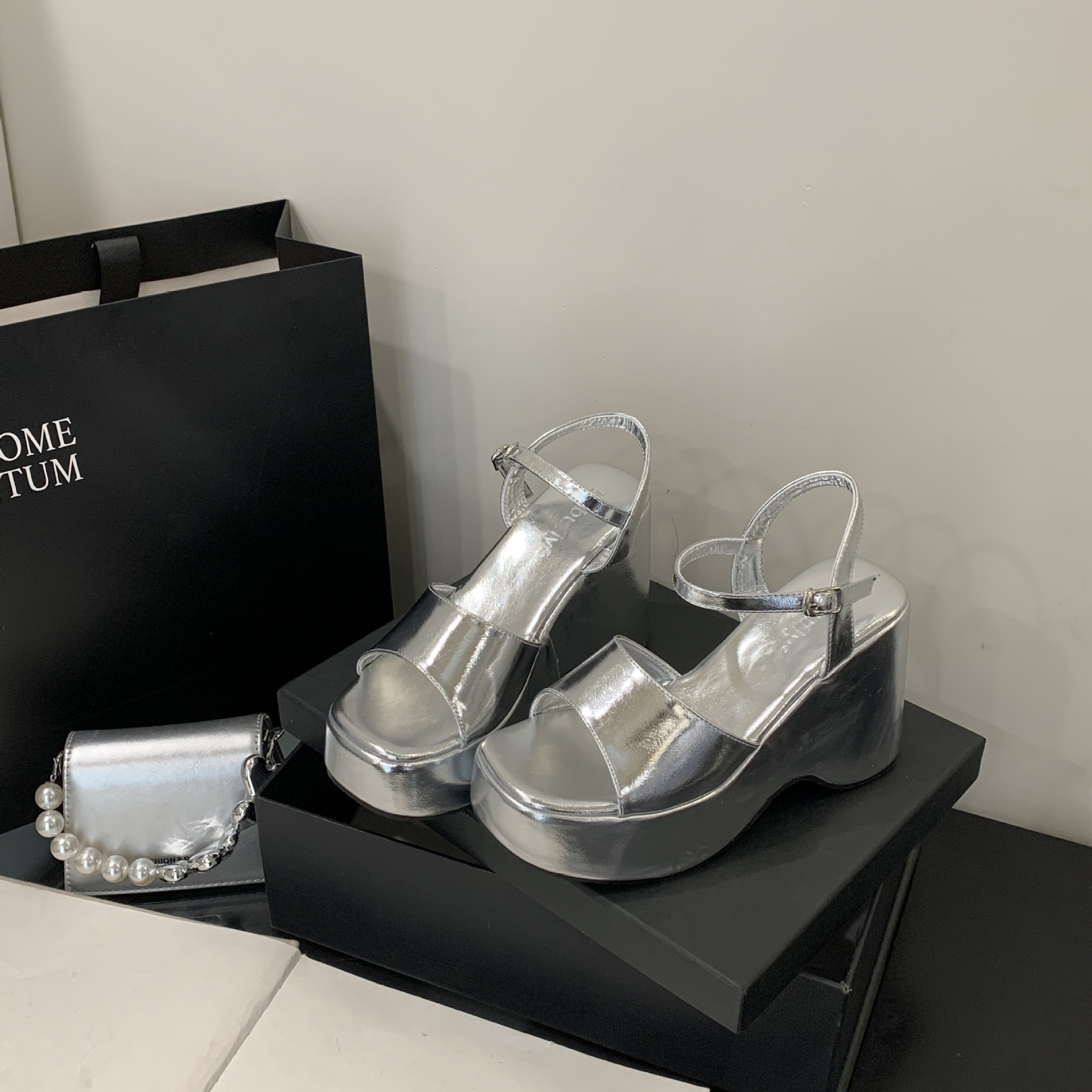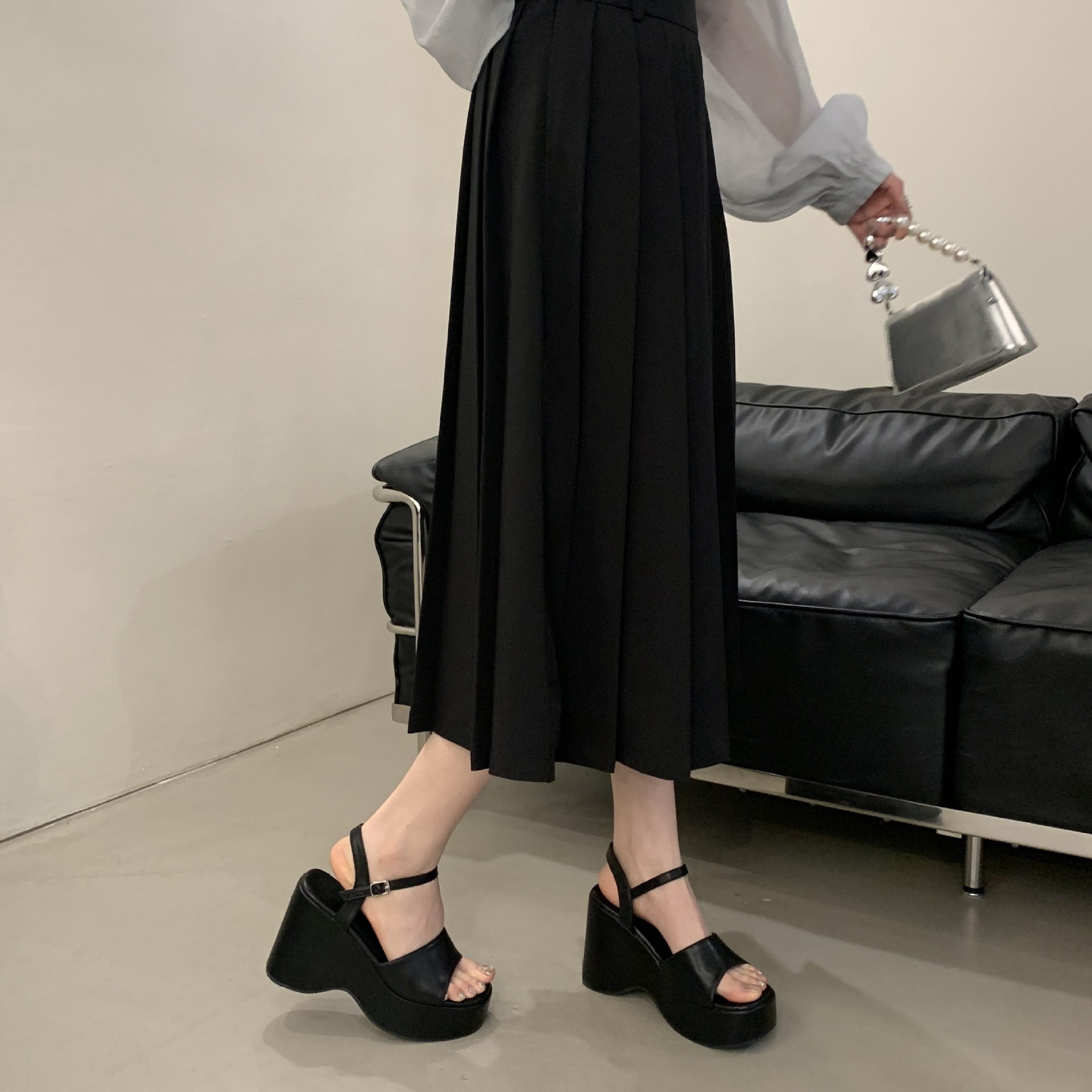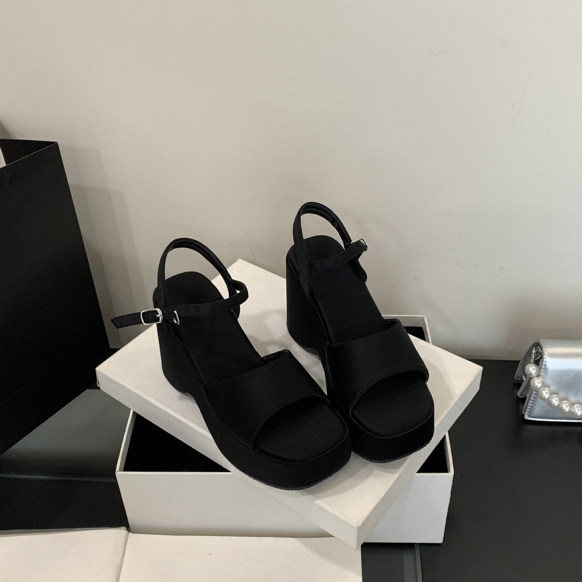 한국 동대문 여성화, 슬림하고 우아한 현아의 연령 감소 핑크 오픈토 여성용 두꺼운 굽 방수 플랫폼 샌들스토어 가기