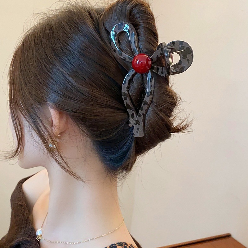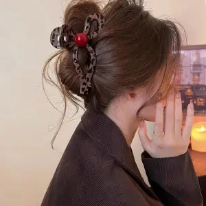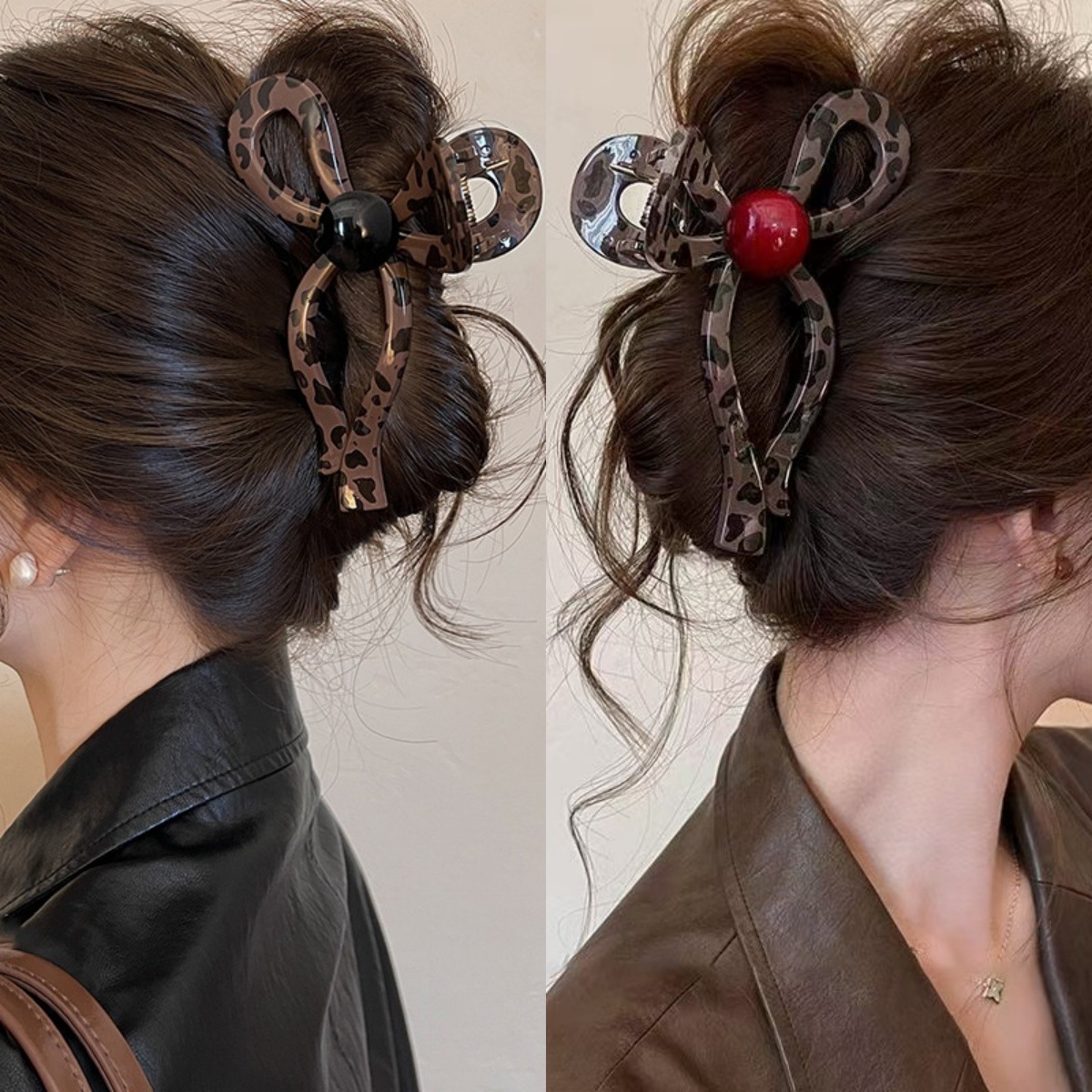 새로운 빈티지 레오파드 무늬 활 하이 엔드 클립 진주 다크 브라운 클립 여성 대형 상어 클립 머리핀 도매스토어 가기