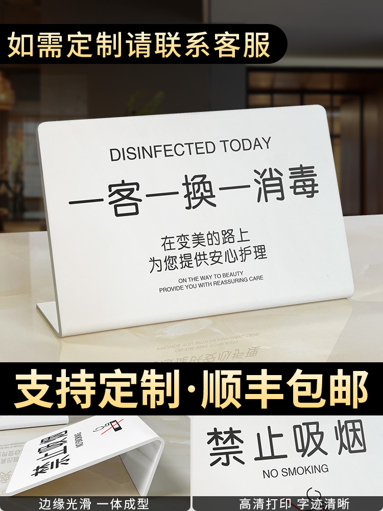아크릴 1인당 1개 교체 및 소독 알림 표시, 오늘 소독된 표시, 호텔 객실스토어 가기