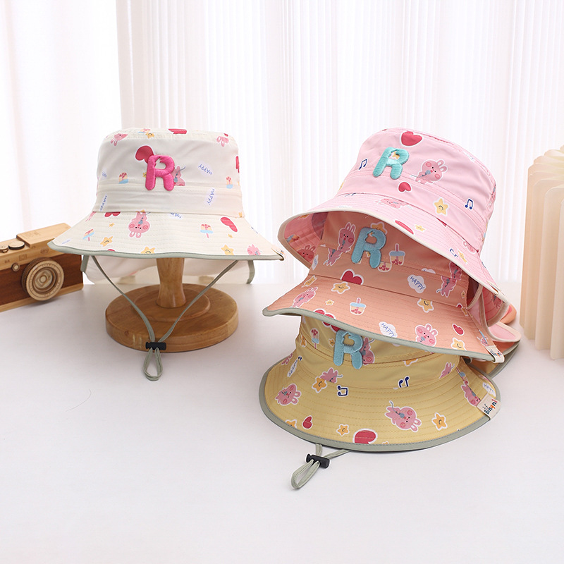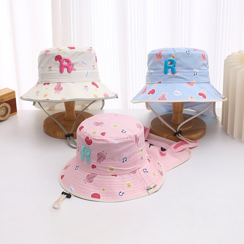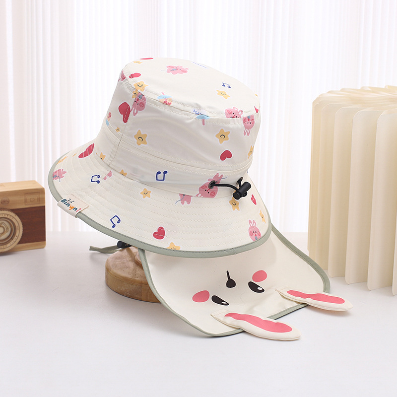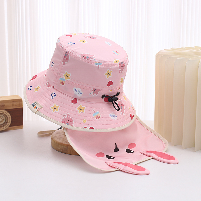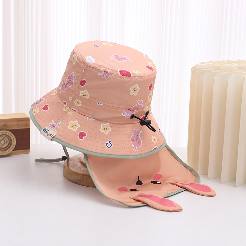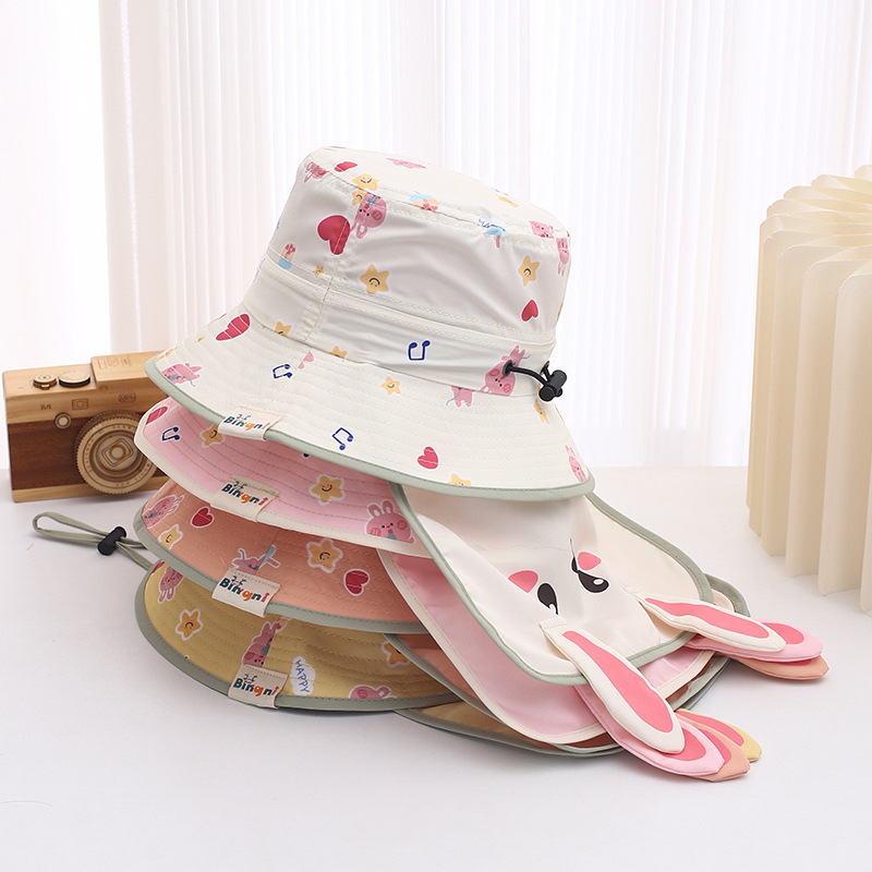 귀여운 토끼 목도리 아기 모자 1-3 세 소년과 소녀 빠른 건조 분지 모자 어부 모자 여름 태양 모자