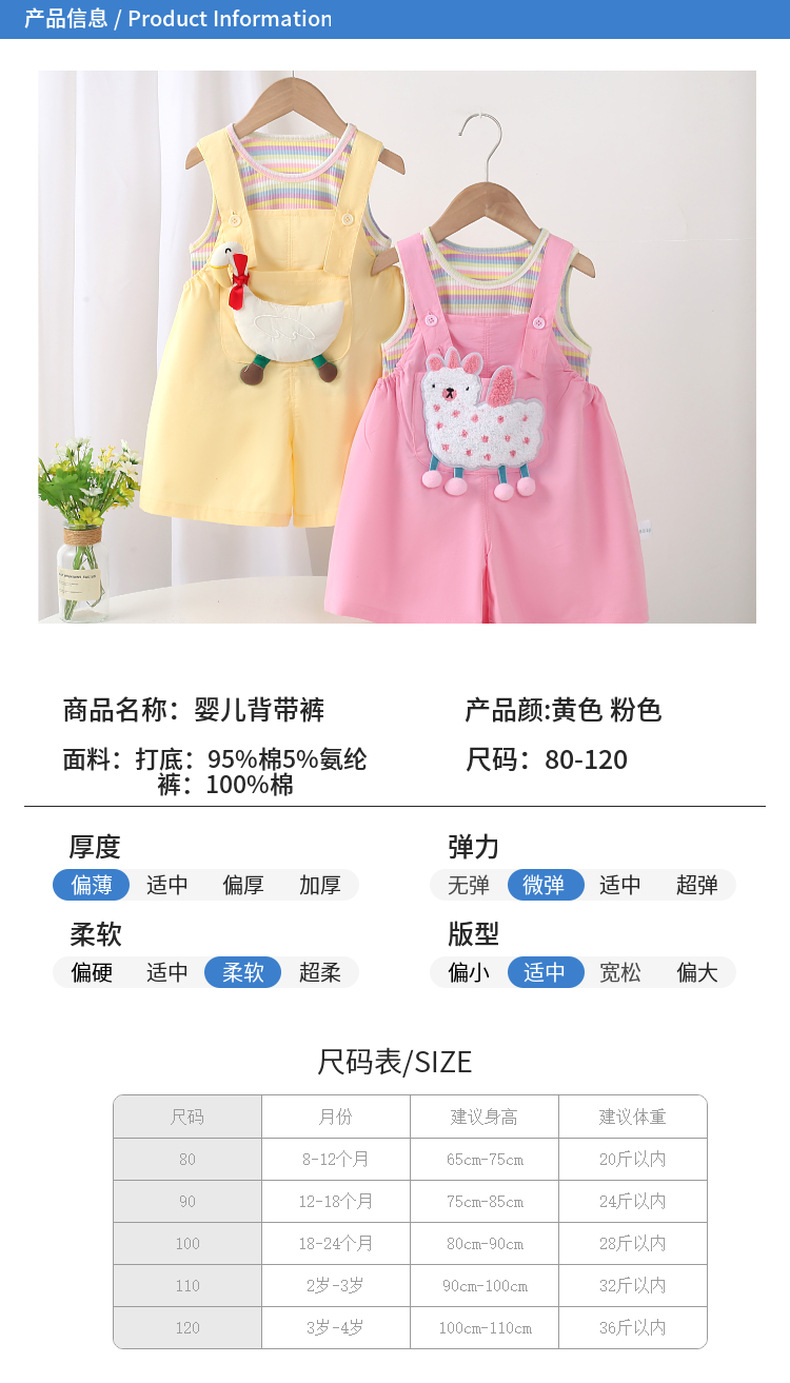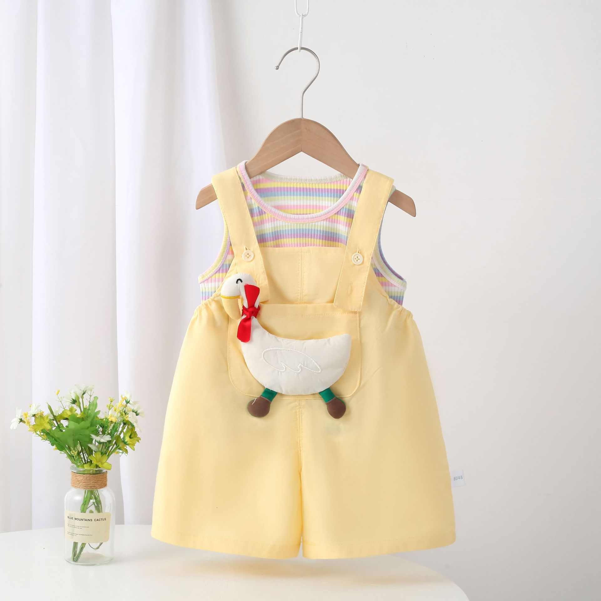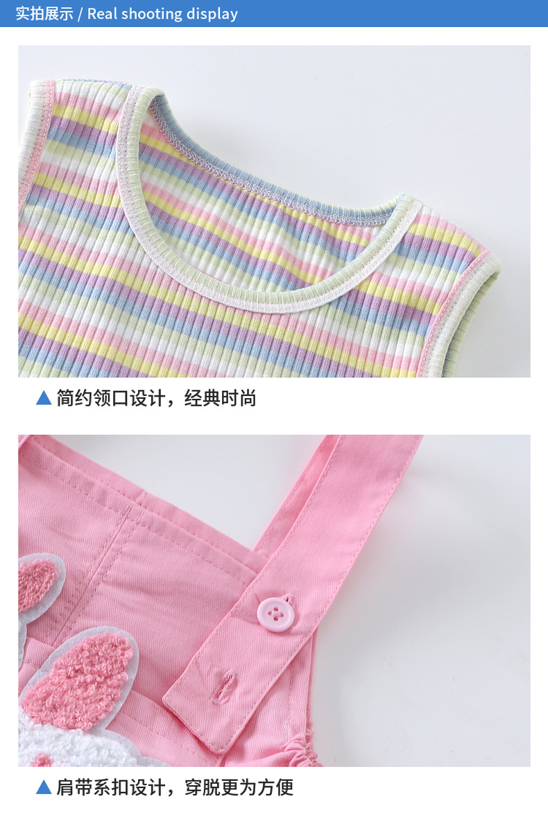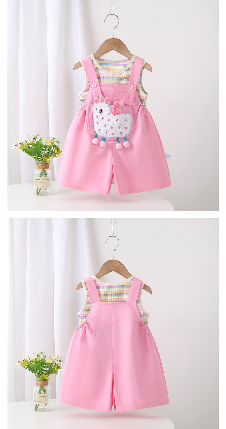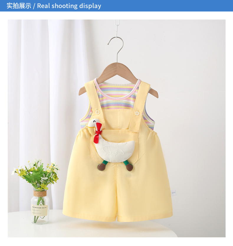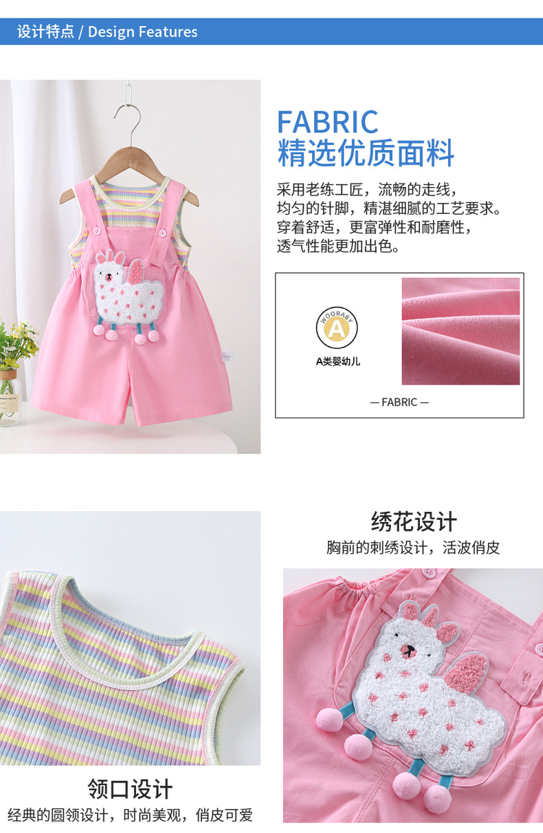 어린이 소년과 소녀 아기 민소매 티셔츠 세트 여름 새로운 유아 입체 만화 서스펜더 반바지 투피스 세트스토어 가기