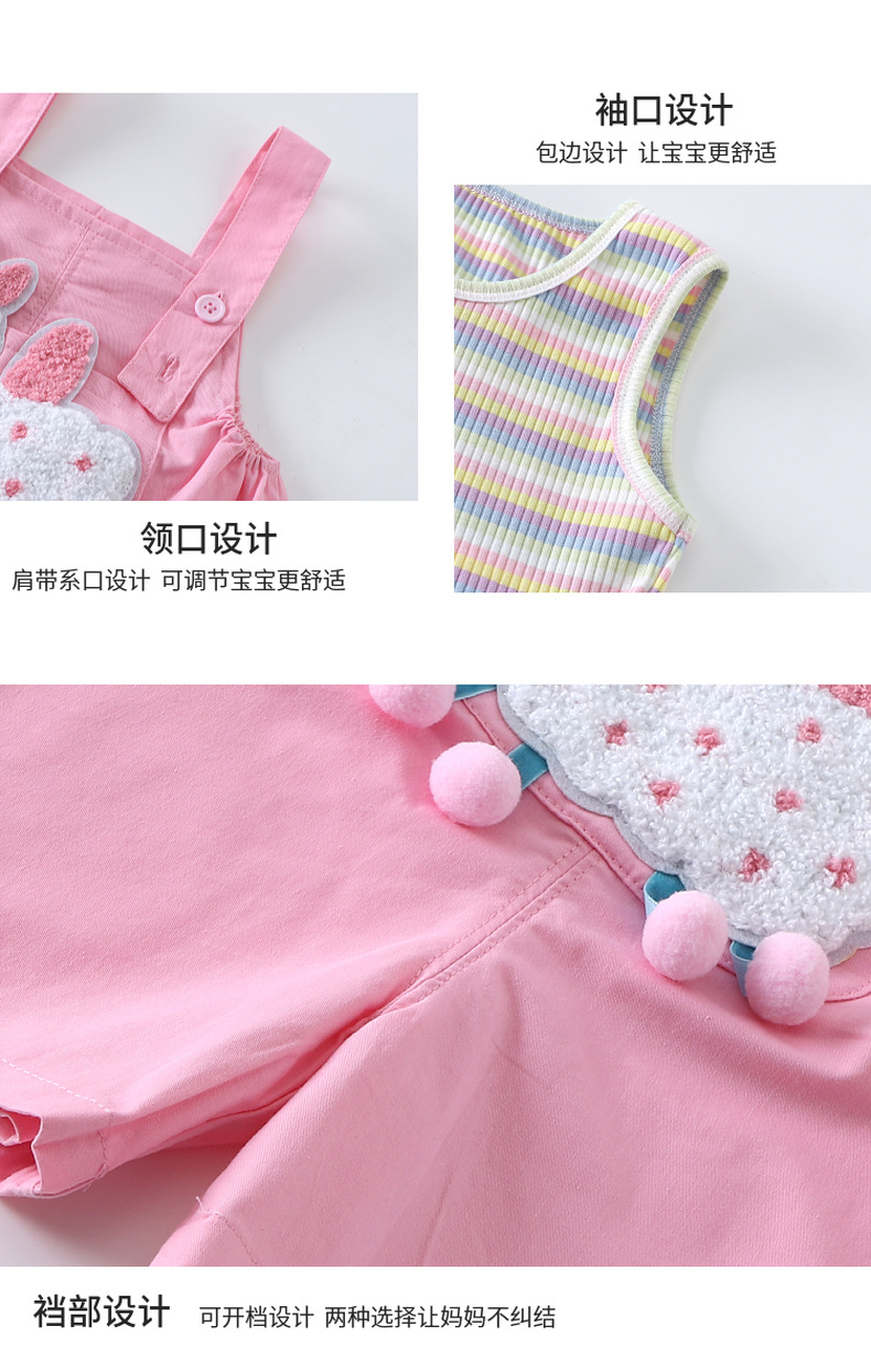 어린이 소년과 소녀 아기 민소매 티셔츠 세트 여름 새로운 유아 입체 만화 서스펜더 반바지 투피스 세트