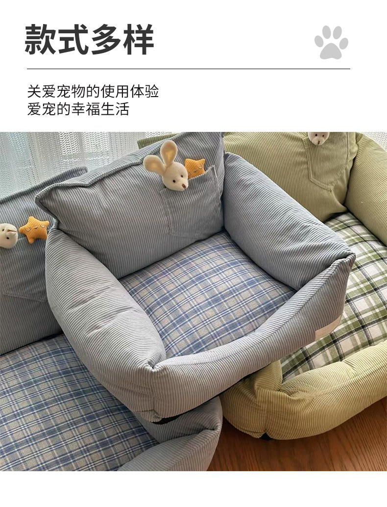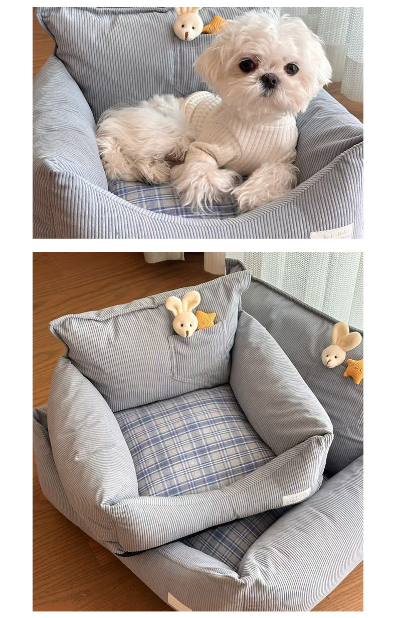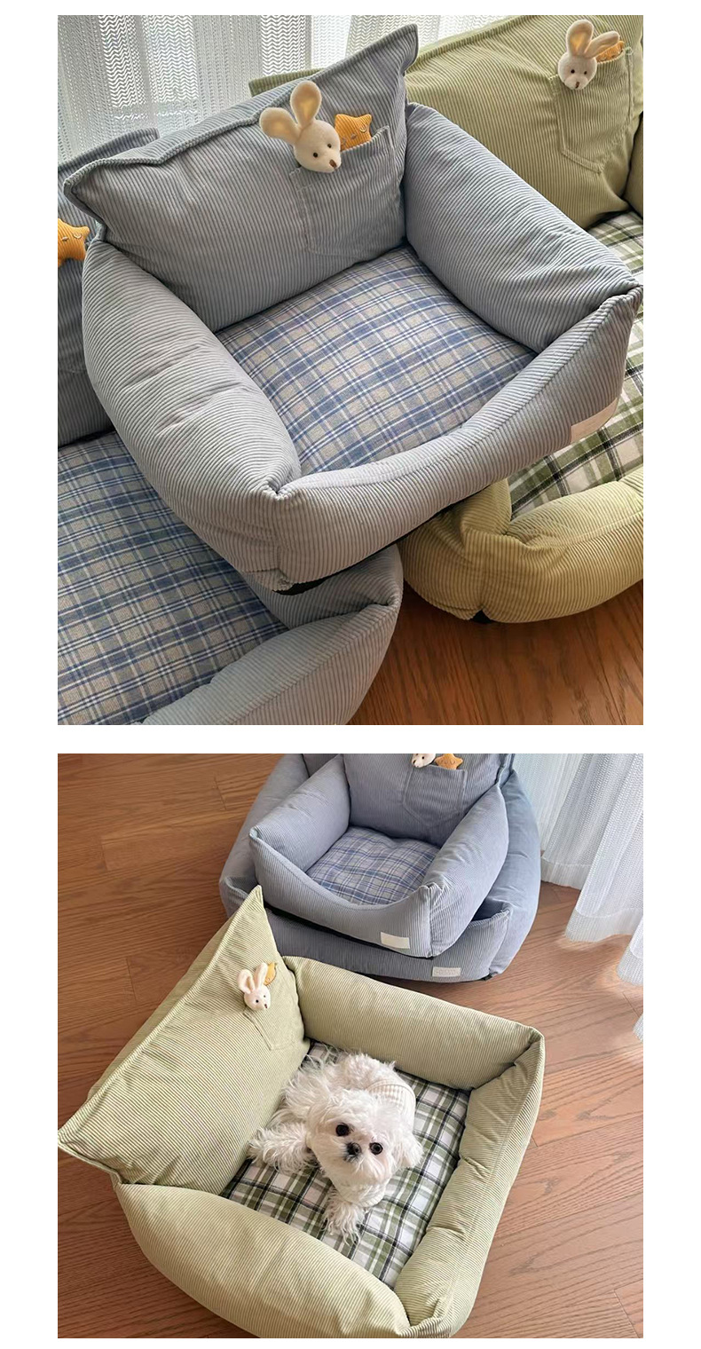 사계절용 개집, 탈부착 및 세탁 가능, 탈부착 가능한 고양이 개집, 소형견용 개 소파, 물림 방지 소프트 네스트, 봄, 가을 스타일