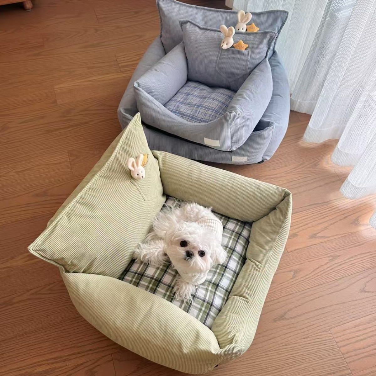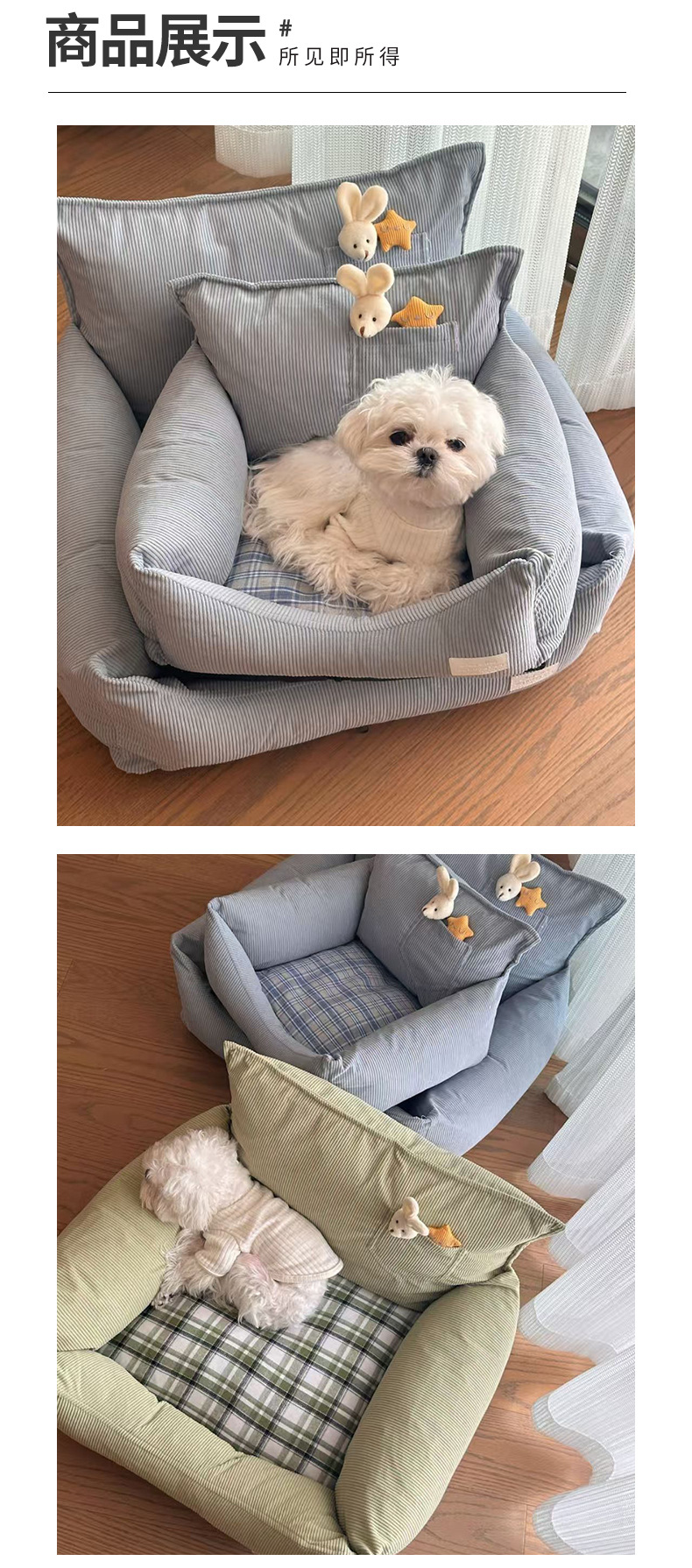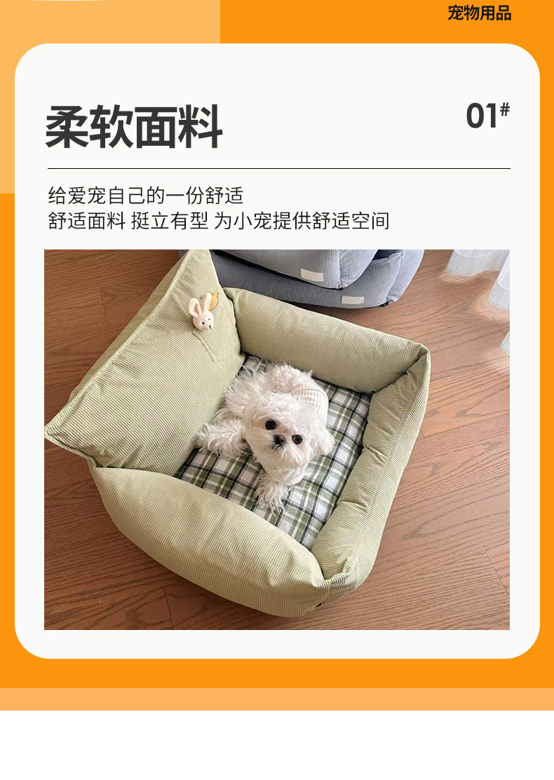 사계절용 개집, 탈부착 및 세탁 가능, 탈부착 가능한 고양이 개집, 소형견용 개 소파, 물림 방지 소프트 네스트, 봄, 가을 스타일