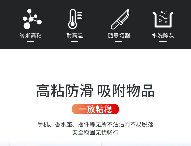 Jili 자동차 미끄럼 방지 매트, 자동차 보관 매트, 센터 콘솔 계기판, 자동차 휴대폰 미끄럼 방지 고무 매트, 고온 방지