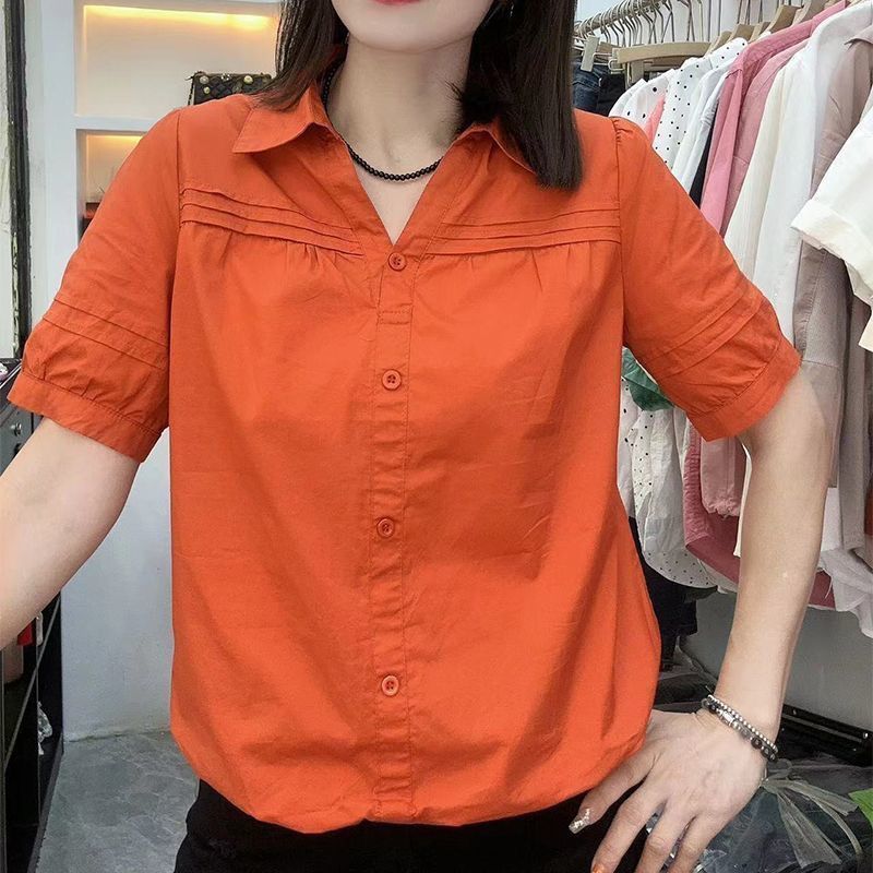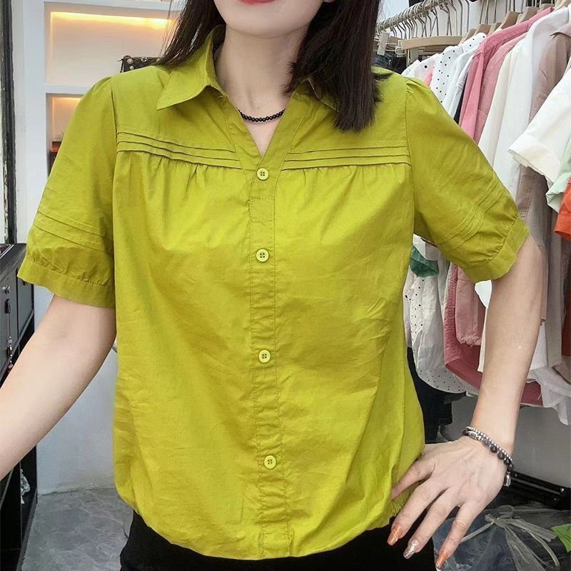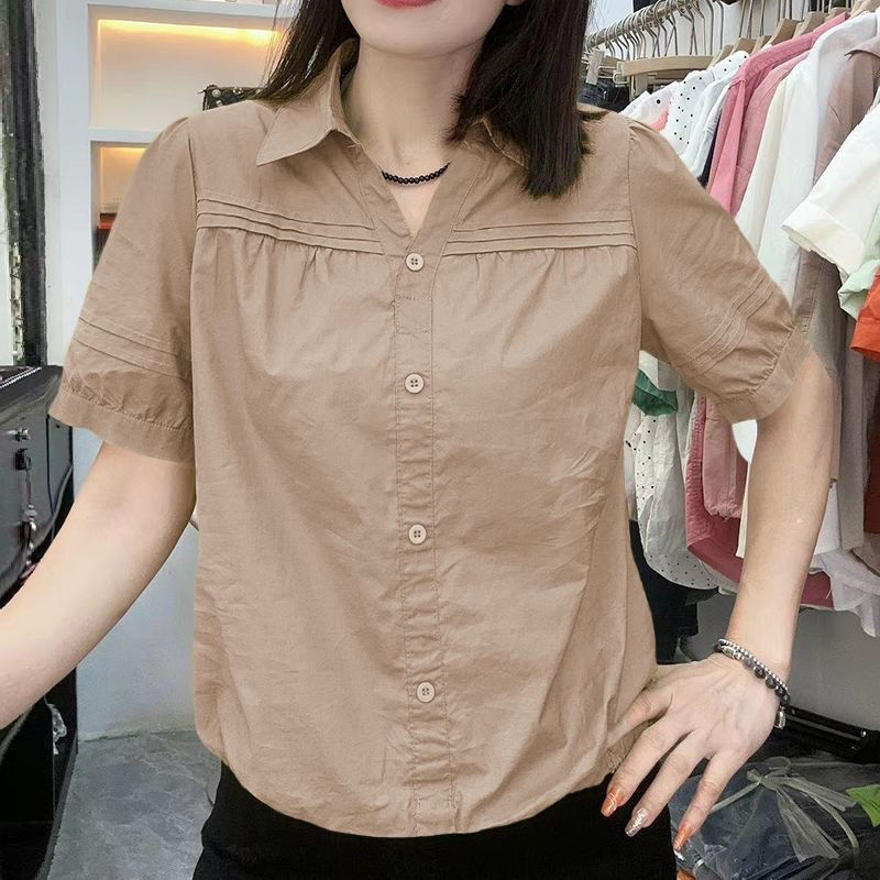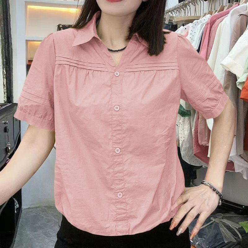 주름 반팔 셔츠 여성의 짧은 허리 여름 새로운 얇은 옷깃 느슨한 탑 여성스토어 가기