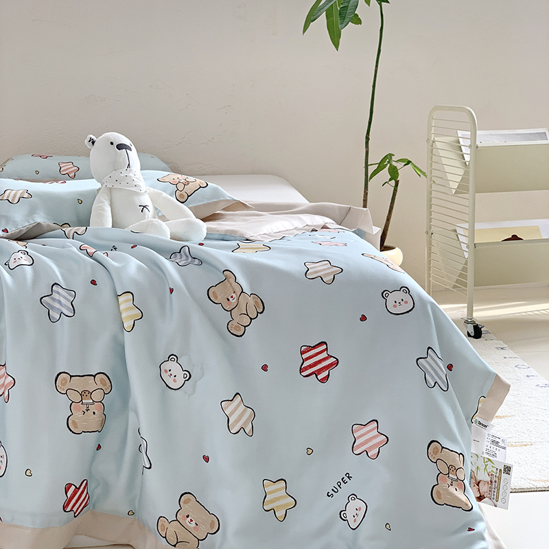 여름 60 란징 실크의 날 어린이 여름 시원한 이불 유치원 아기 아기 얇은 에어컨 이불 여름 이불 기계 세탁기