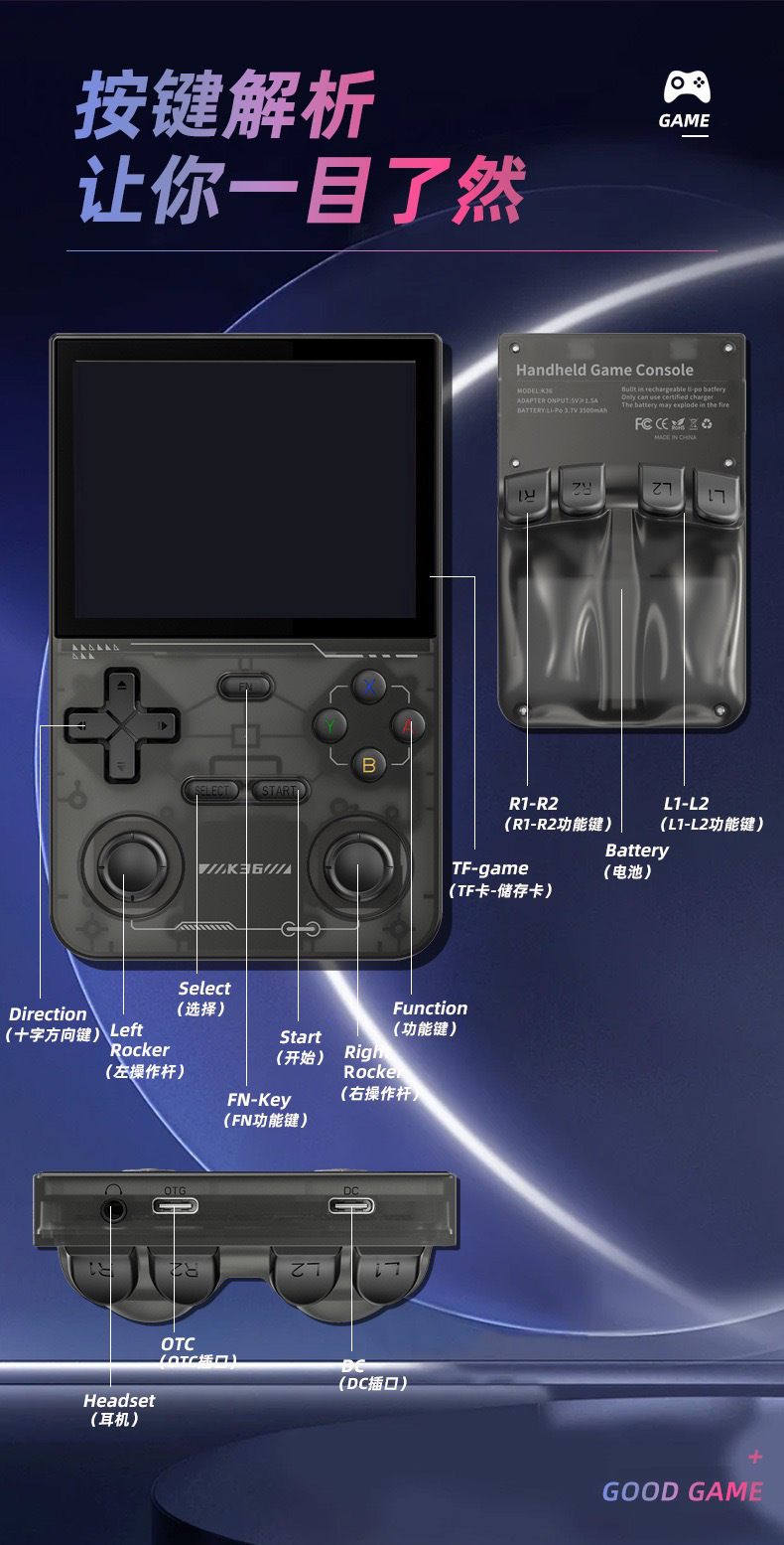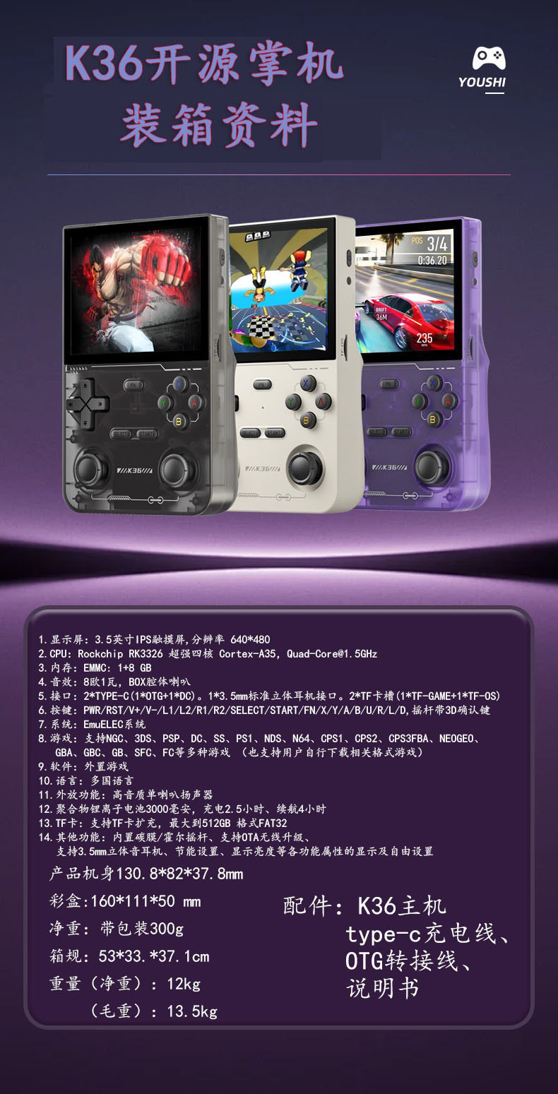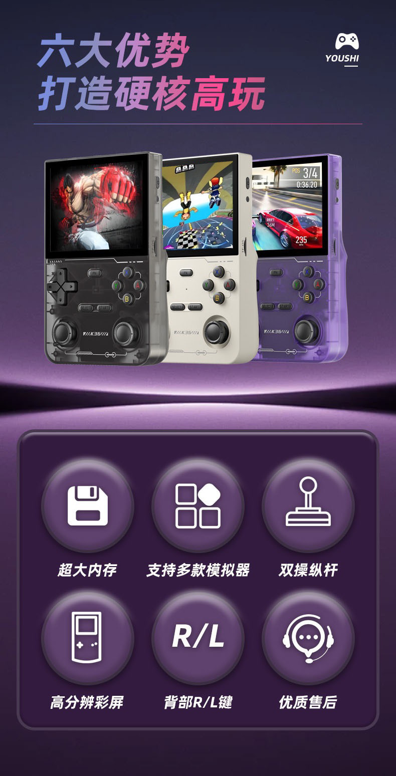 새로운 K36 휴대용 게임기 리눅스 시스템 오픈 소스 미니 휴대용 휴대용 HD psp 게임기 아케이드