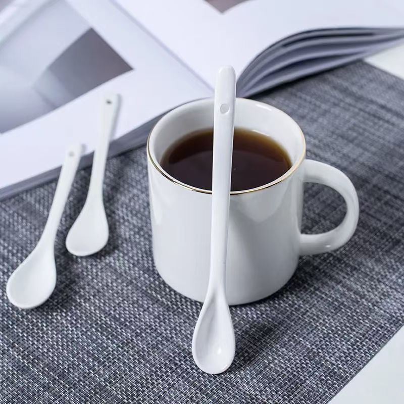 创意长柄白色搅拌勺陶瓷咖啡勺蜂蜜搅拌棒调料勺超短勺子短柄勺可爱熊猫勺