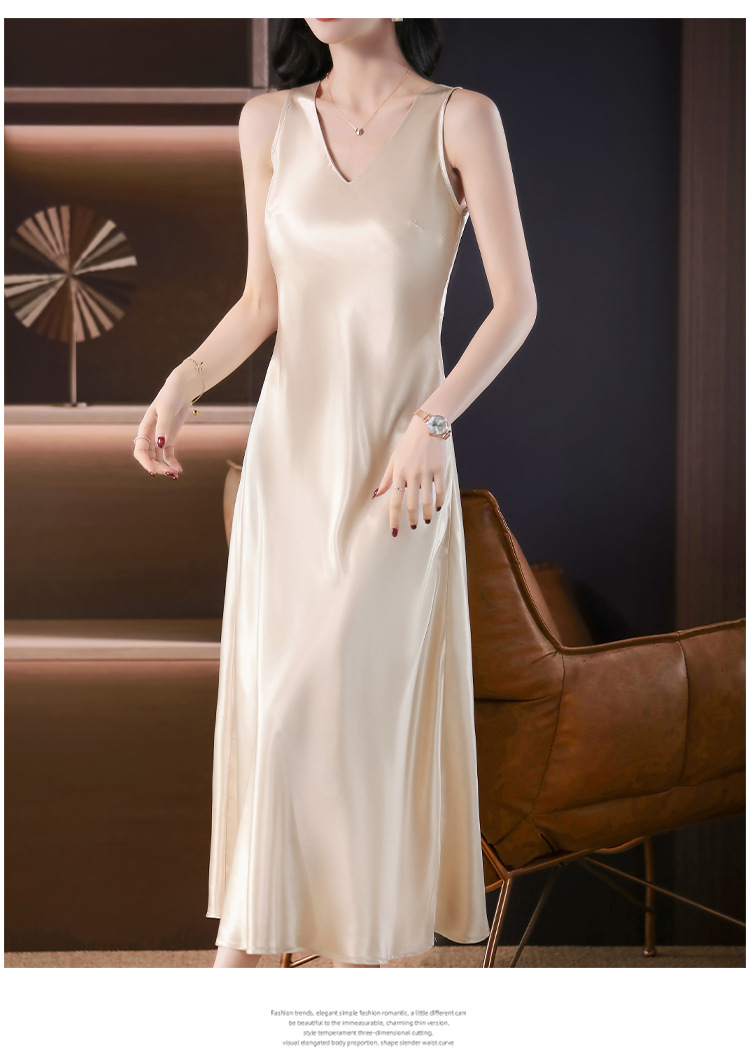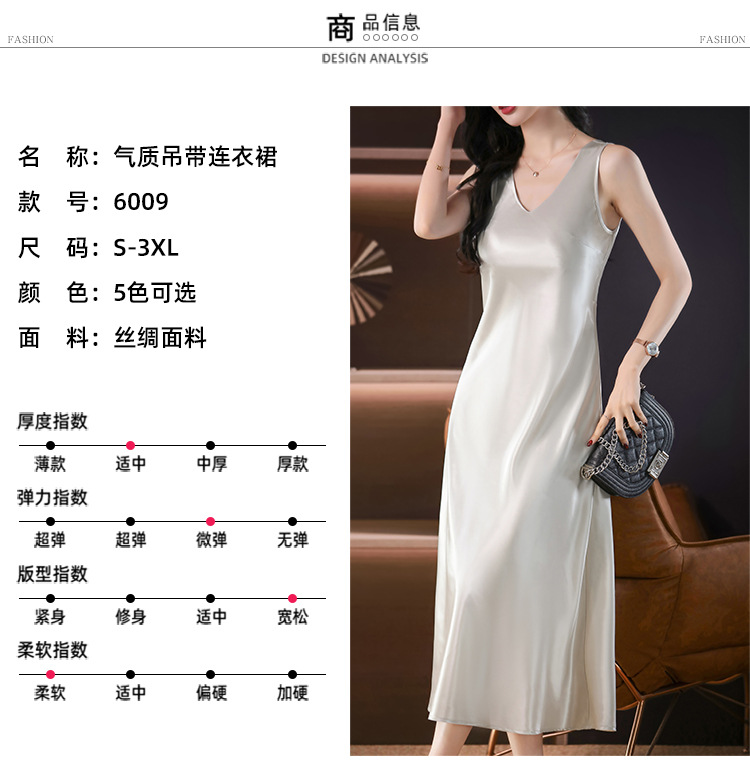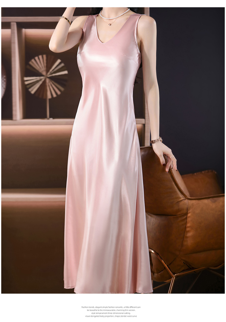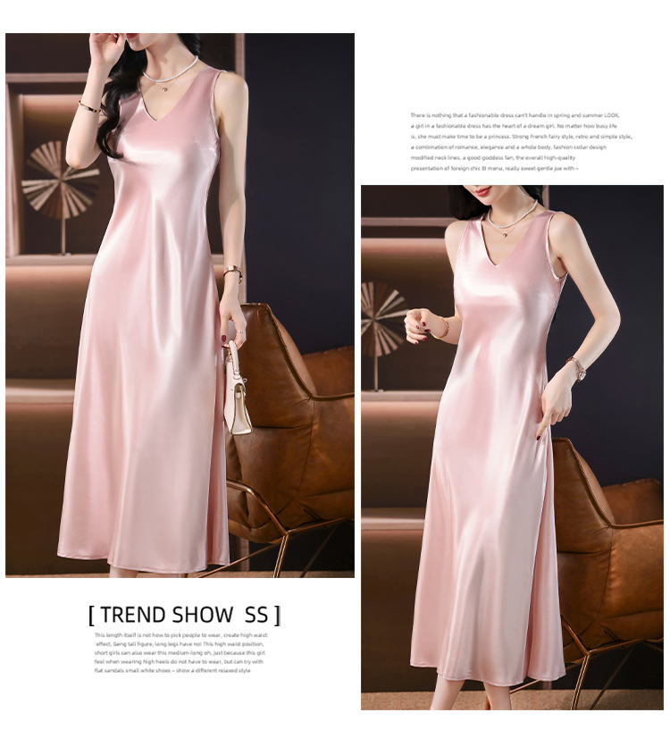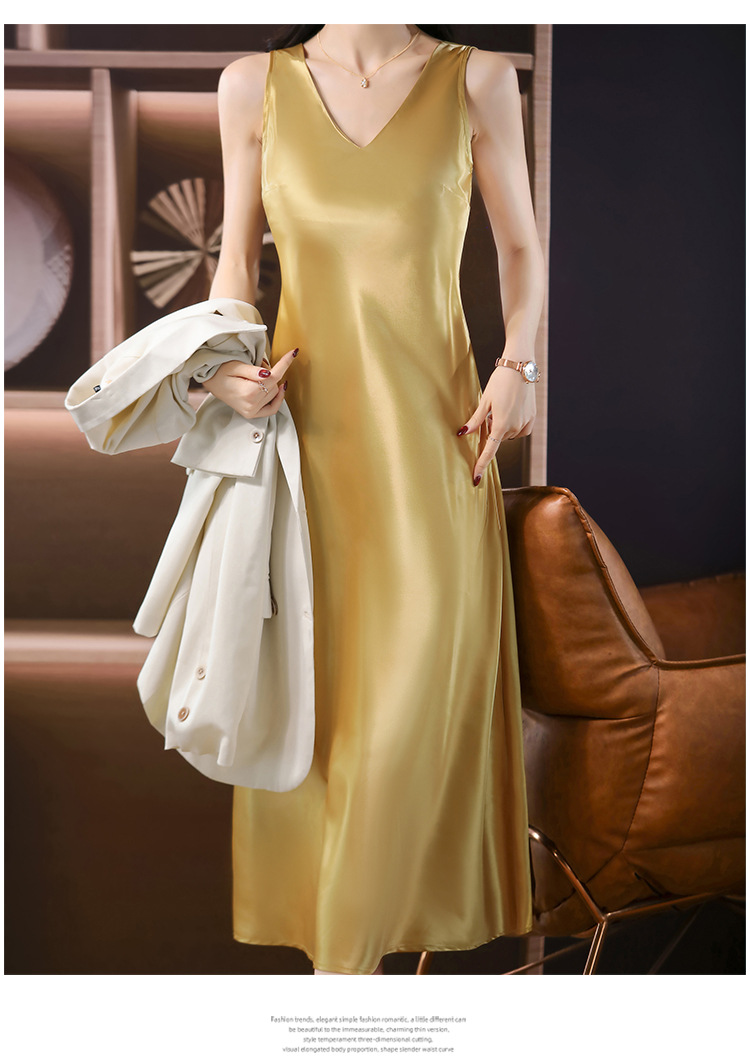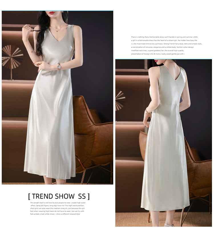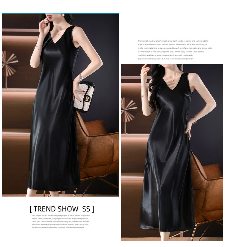 봄 2025 새로운 새틴 단순 원피스 슬림 긴 슬림 핏 올 매치 스키니 원피스스토어 가기
