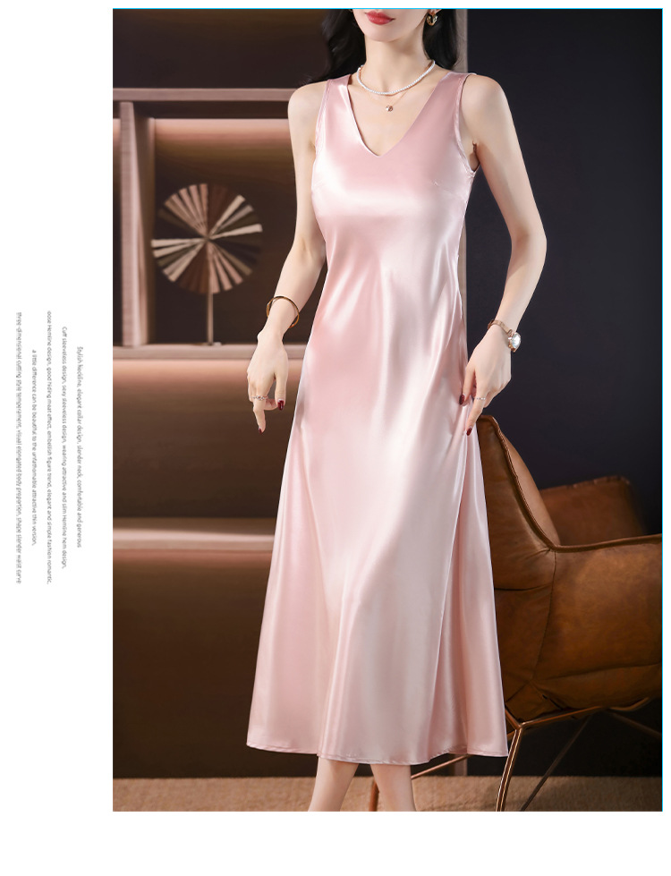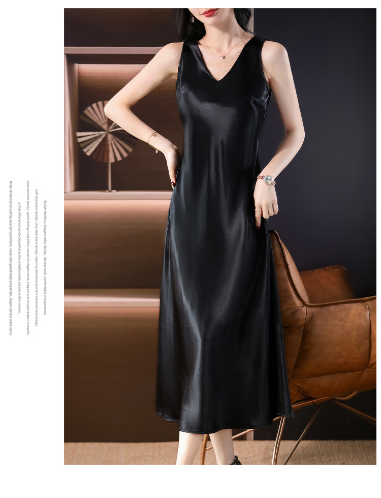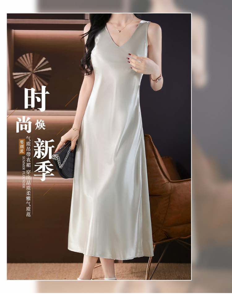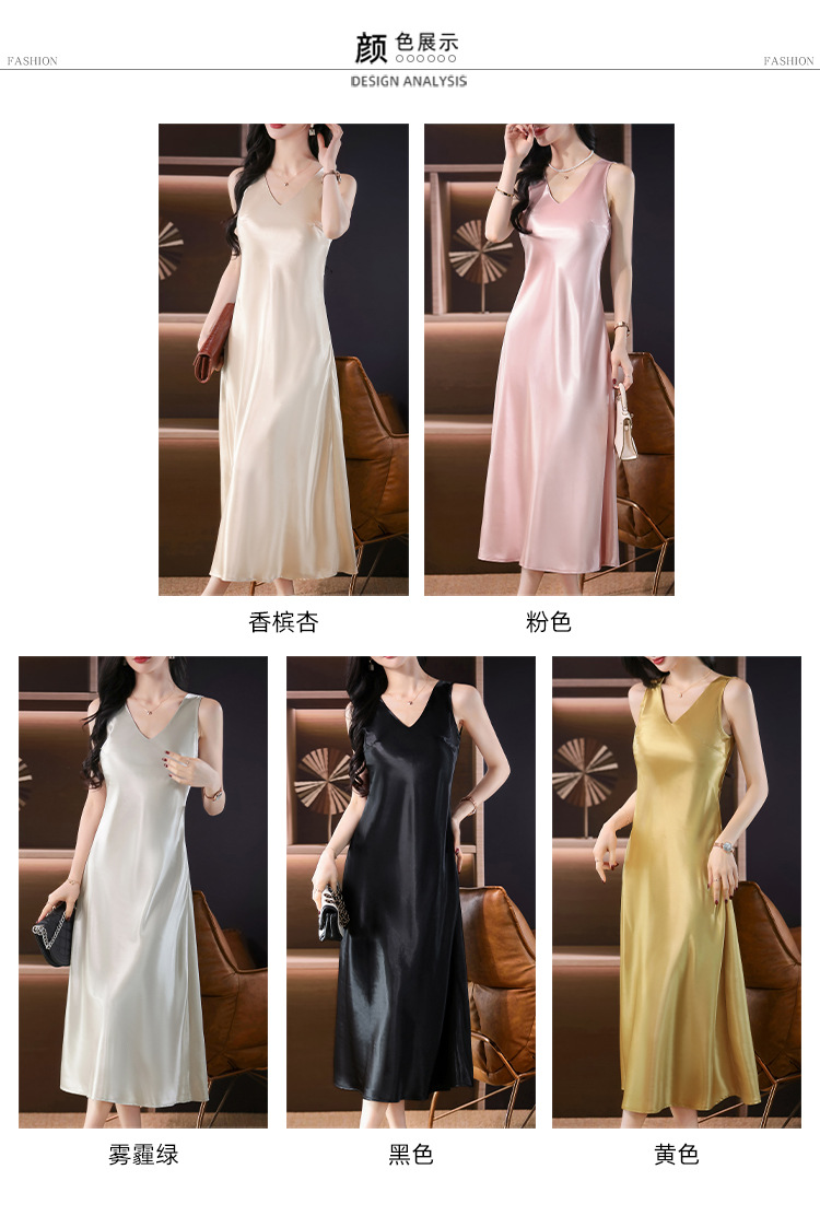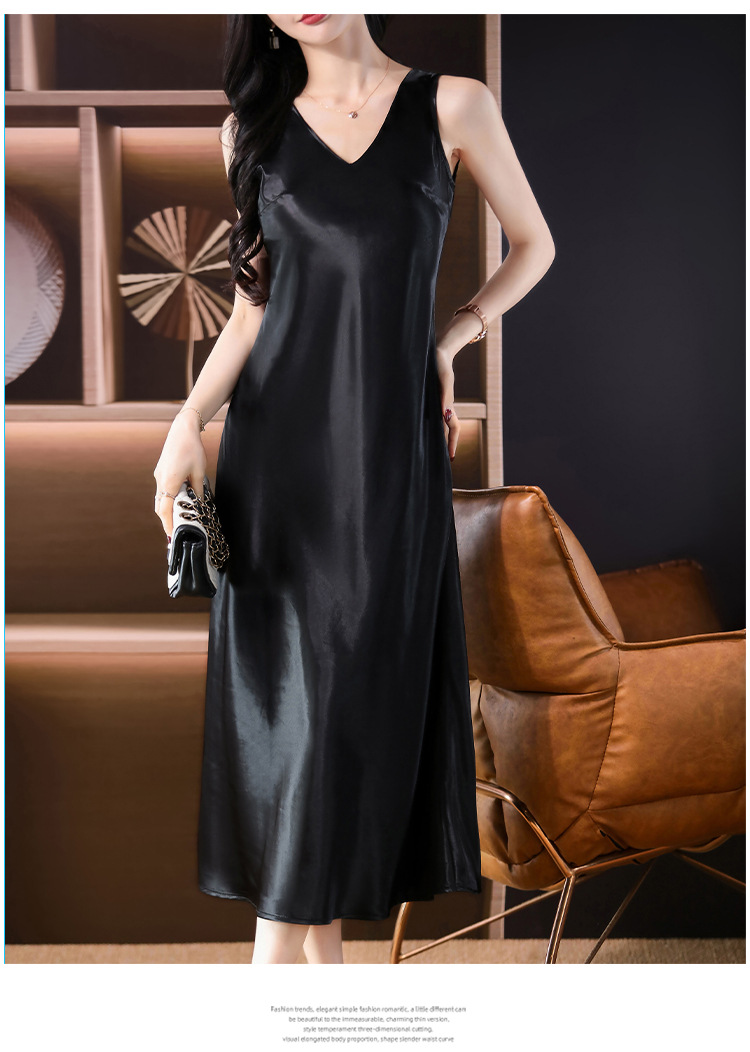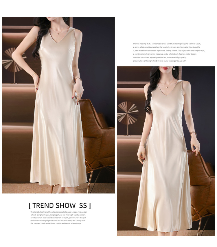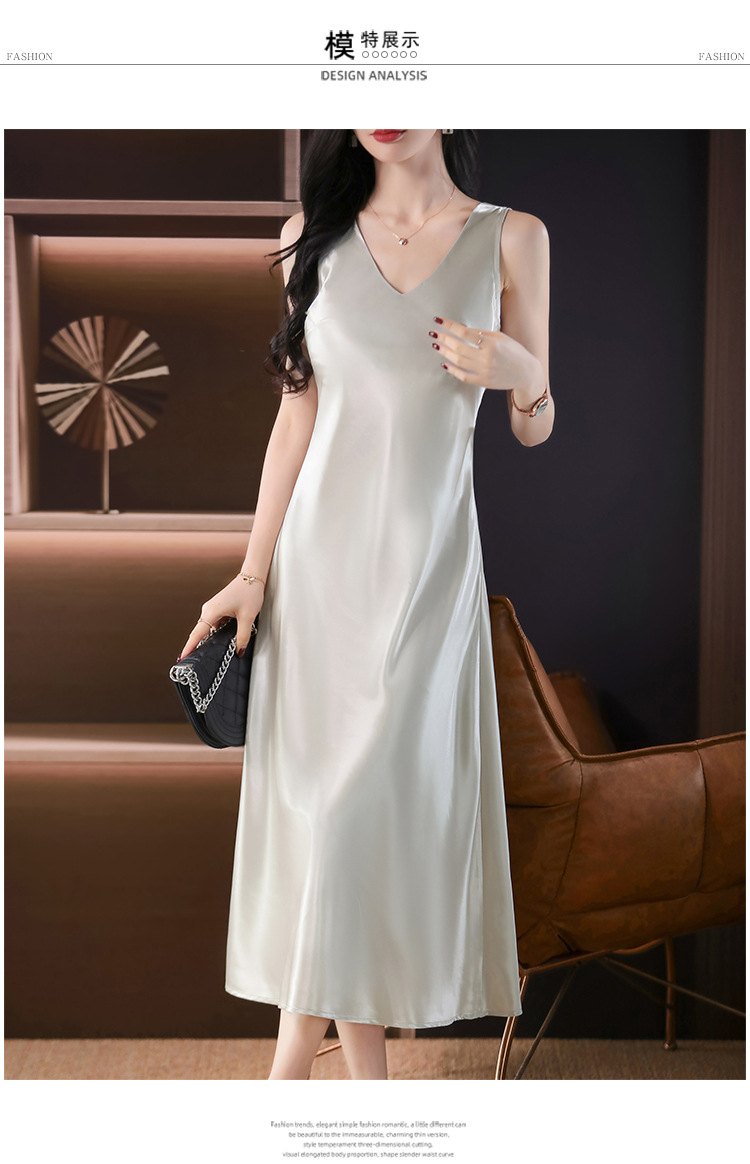 봄 2025 새로운 새틴 단순 원피스 슬림 긴 슬림 핏 올 매치 스키니 원피스스토어 가기