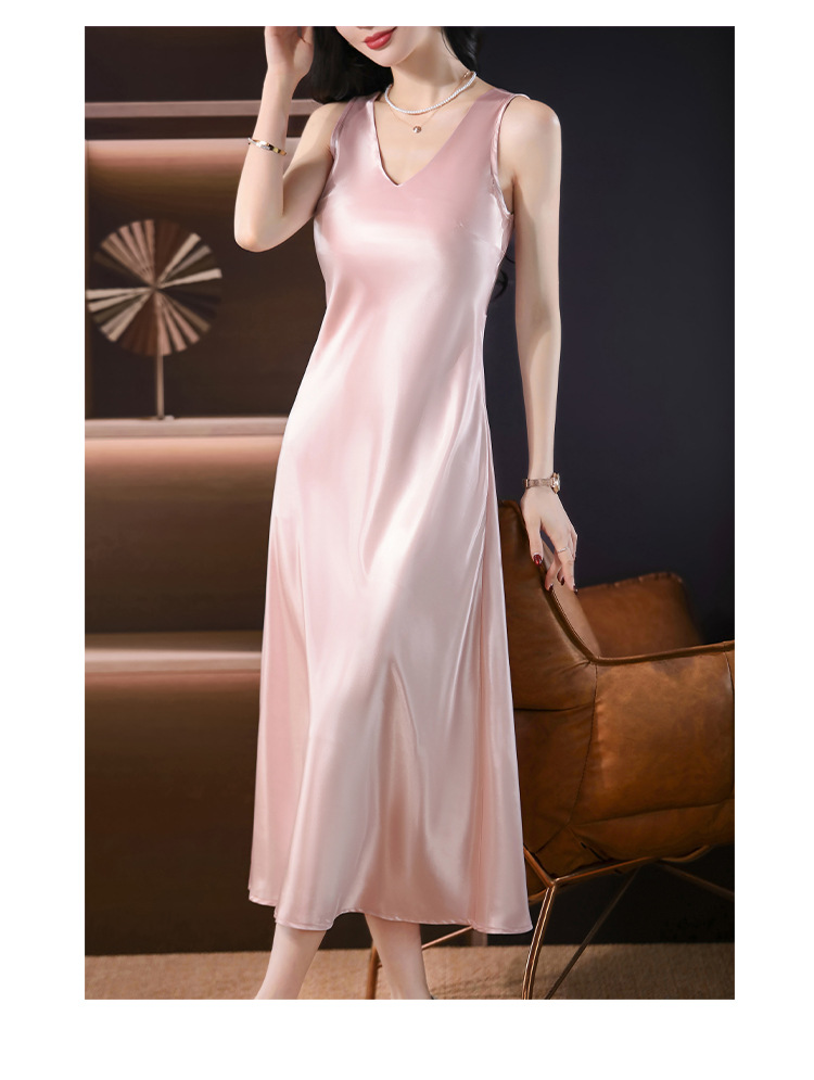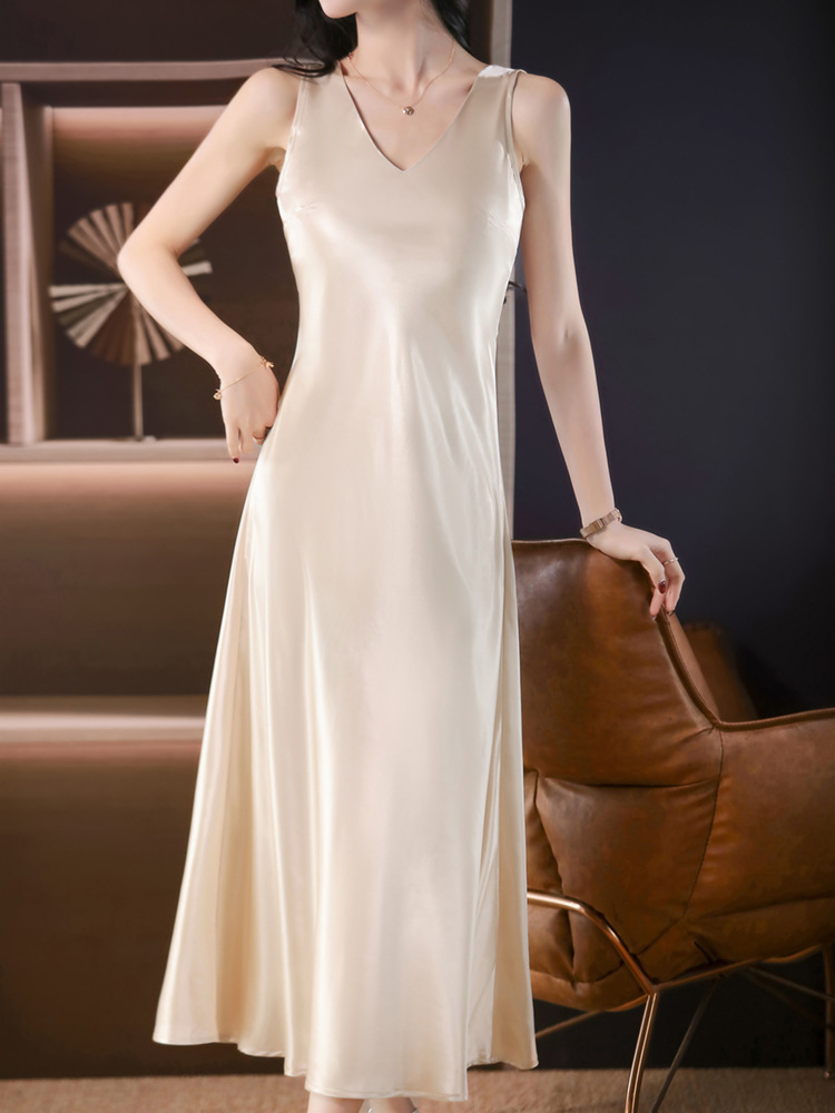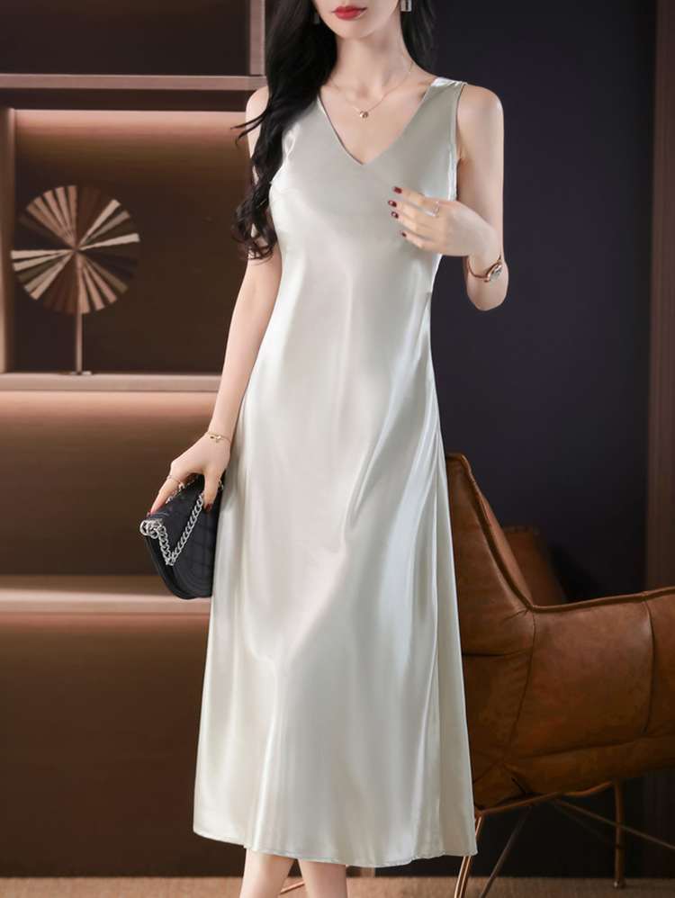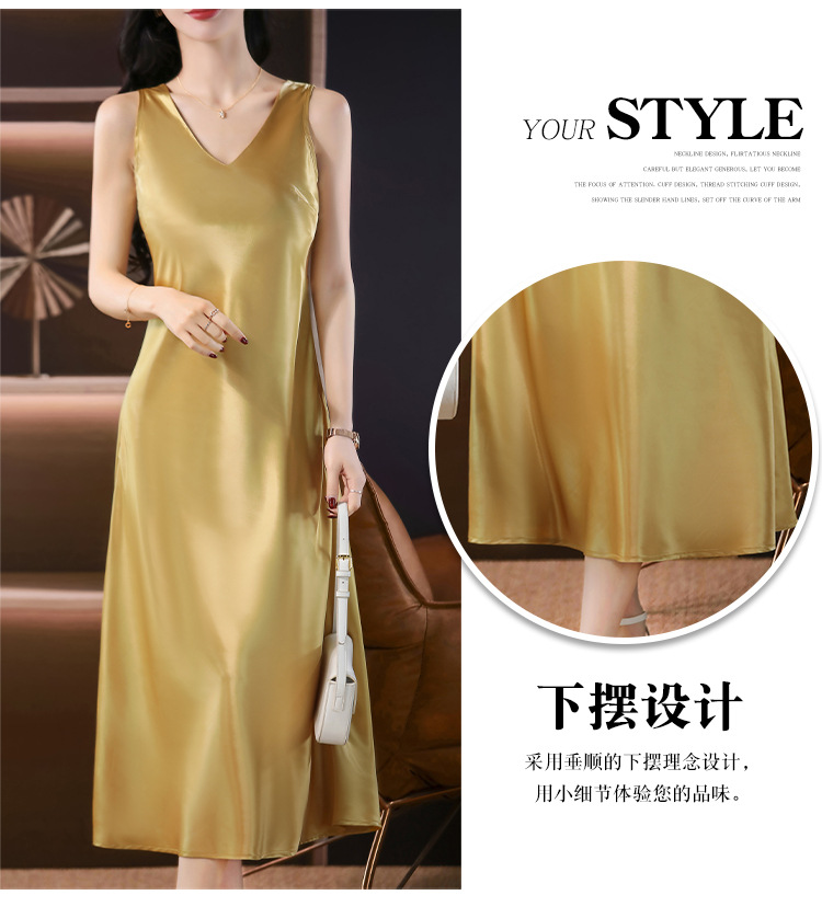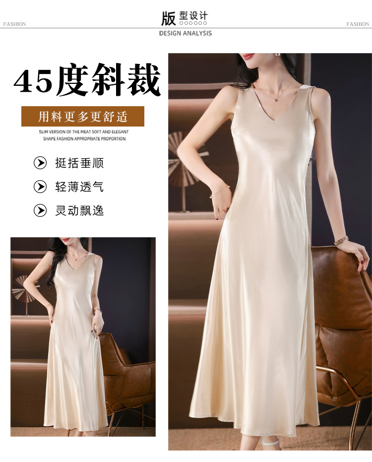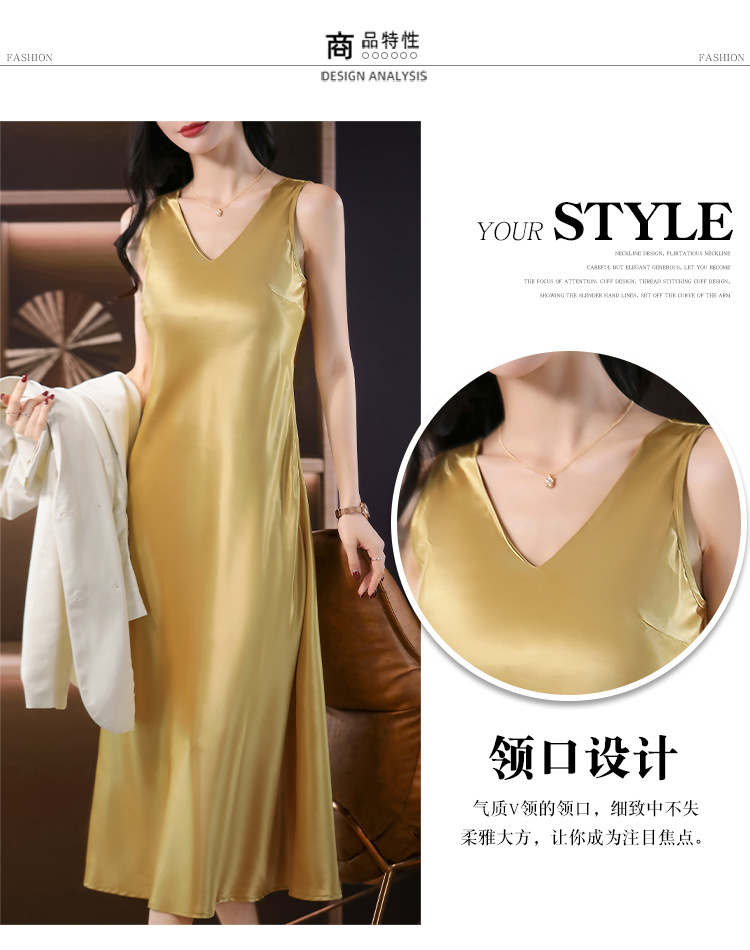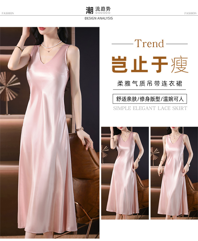 봄 2025 새로운 새틴 단순 원피스 슬림 긴 슬림 핏 올 매치 스키니 원피스스토어 가기