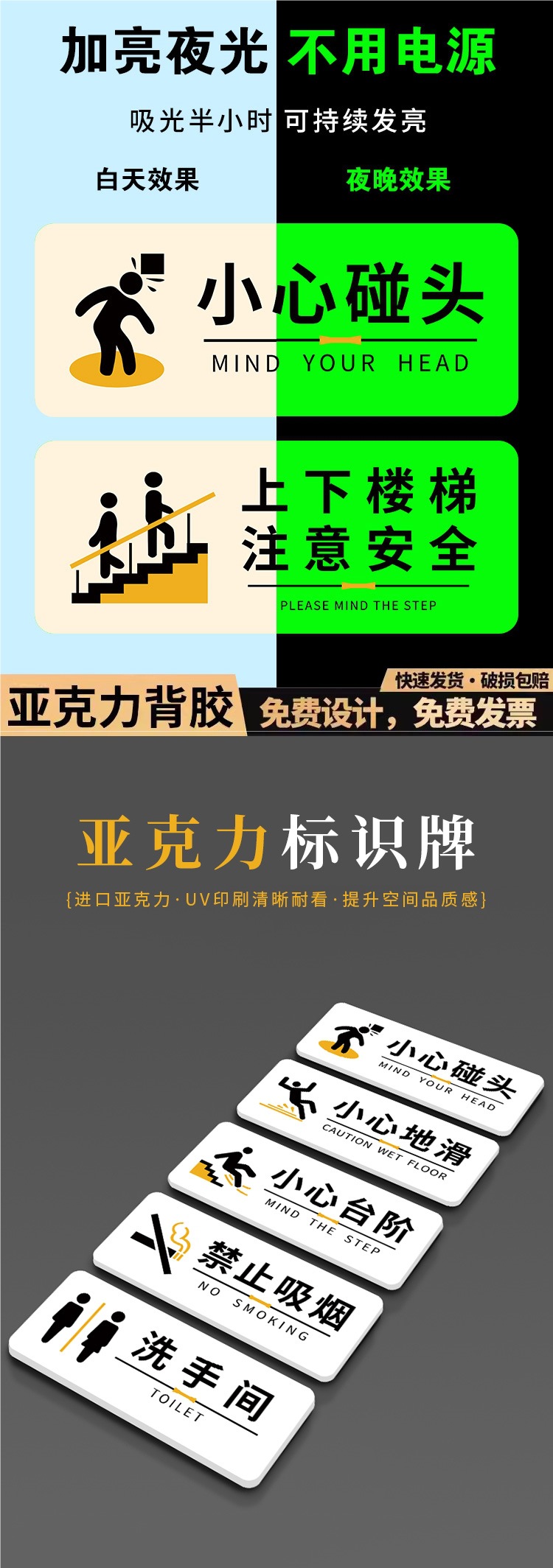 • 머리에 조심하세요 - 3mm 야광 아크릴 접착제