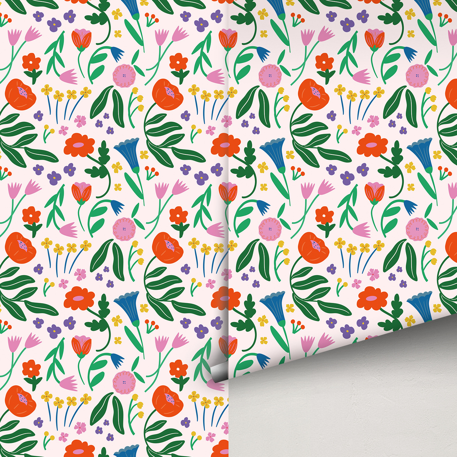 Funlife2025 새로운 캐비닛 스티커 손으로 그린 화려한 피는 꽃 방수 자체 접착 벽 스티커 SNSWP231스토어 가기