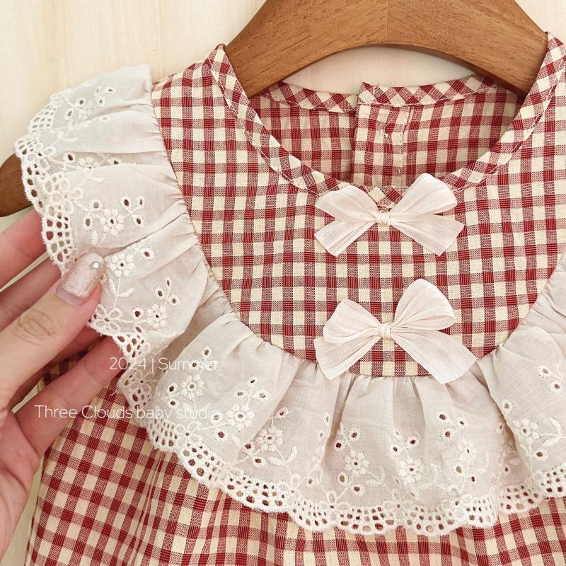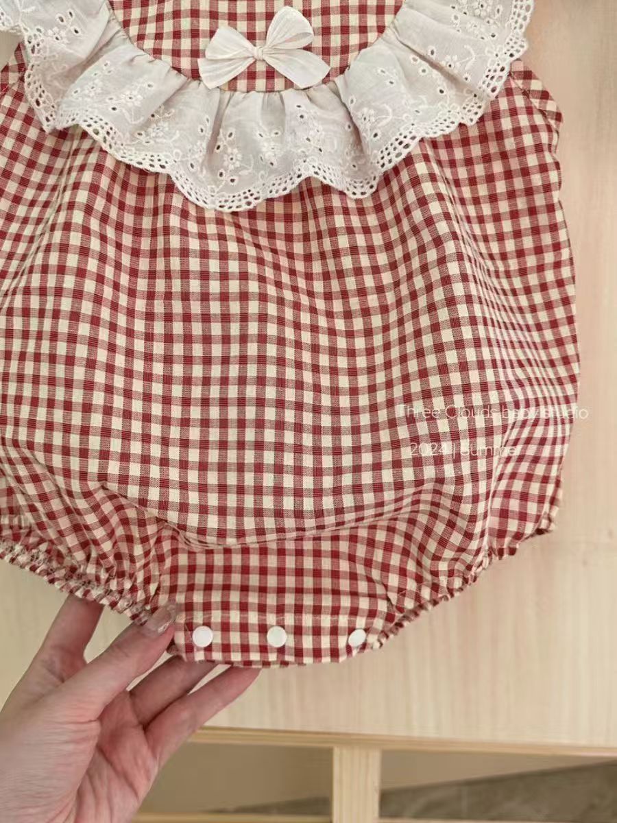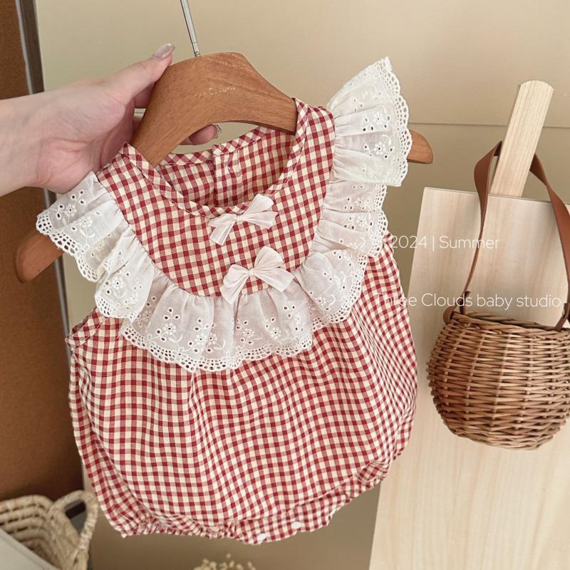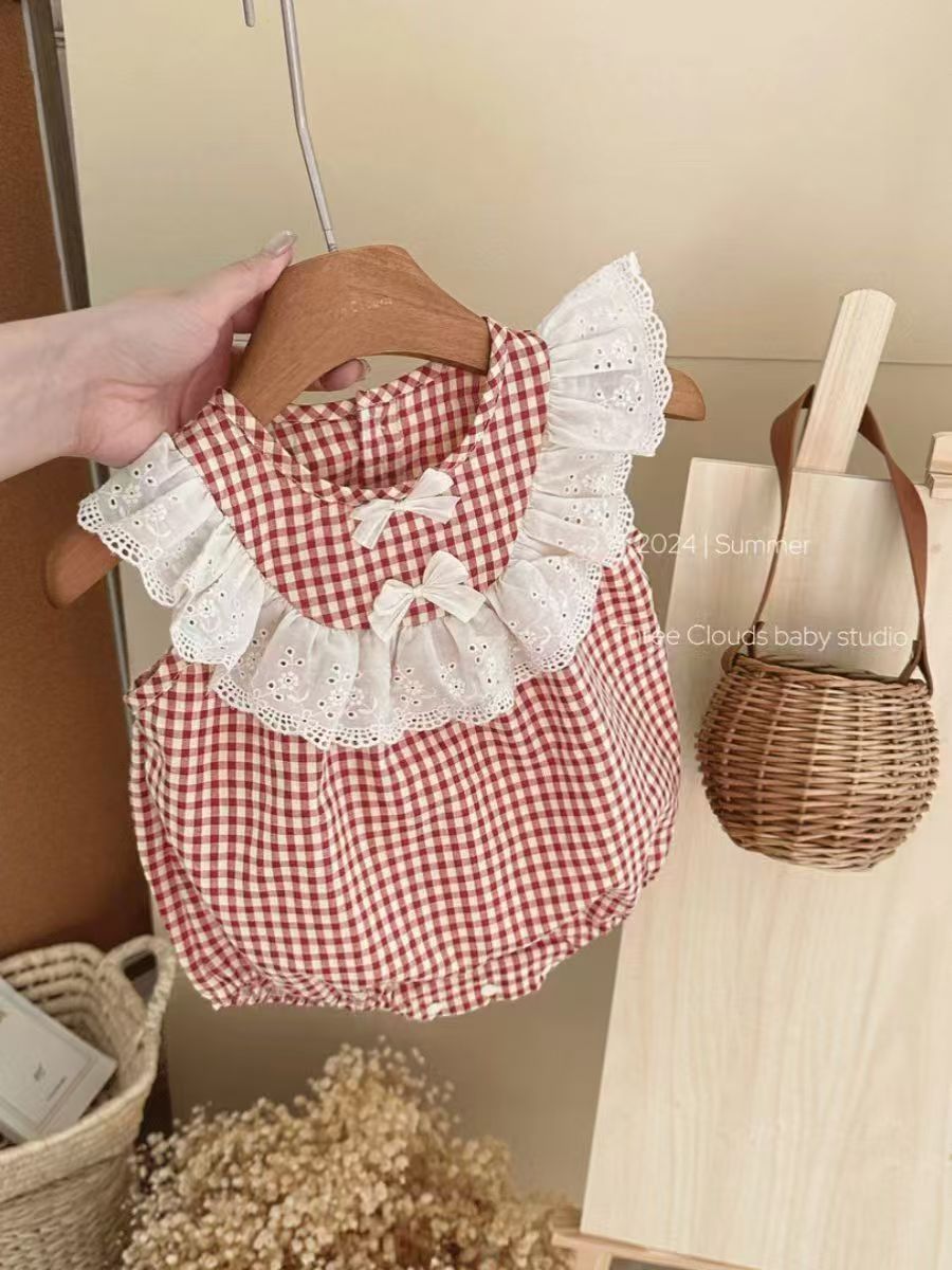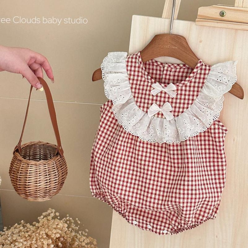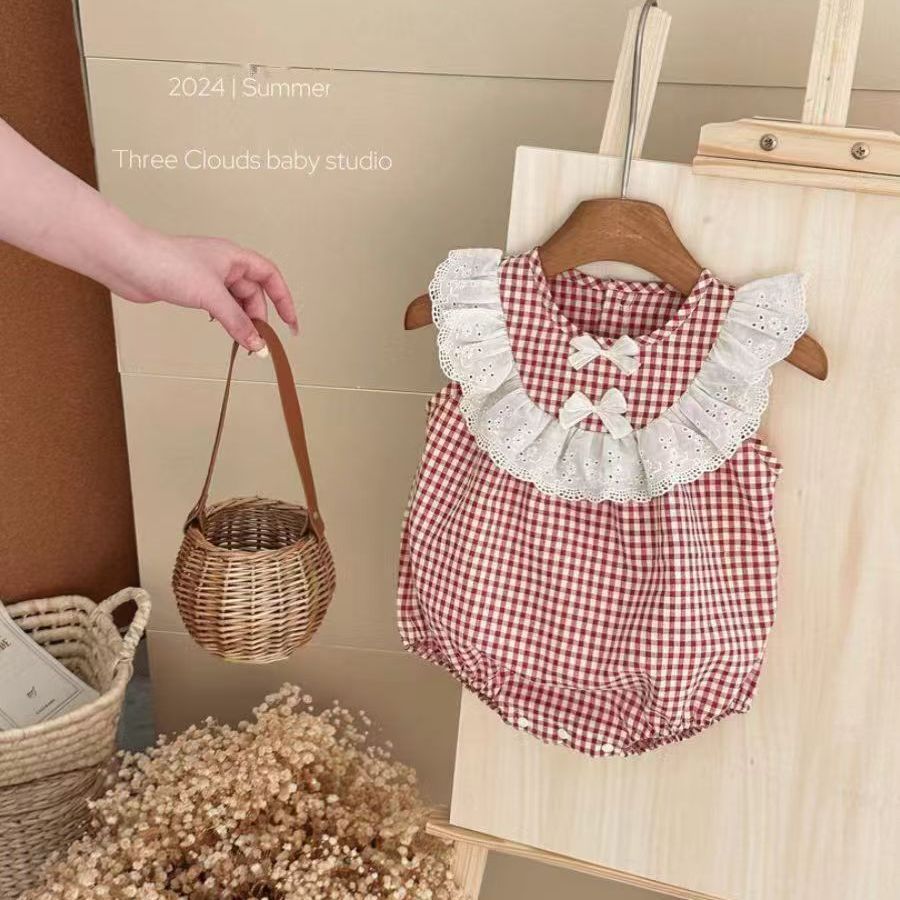 아기 얇은 여름 옷 아기 아기 귀여운 격자 무늬 바디 옷 방귀 포장 미술 랩 삼각형 토끼 옷스토어 가기
