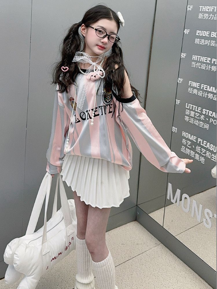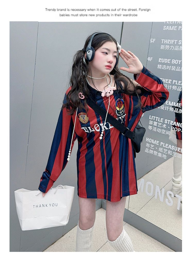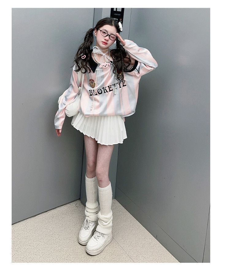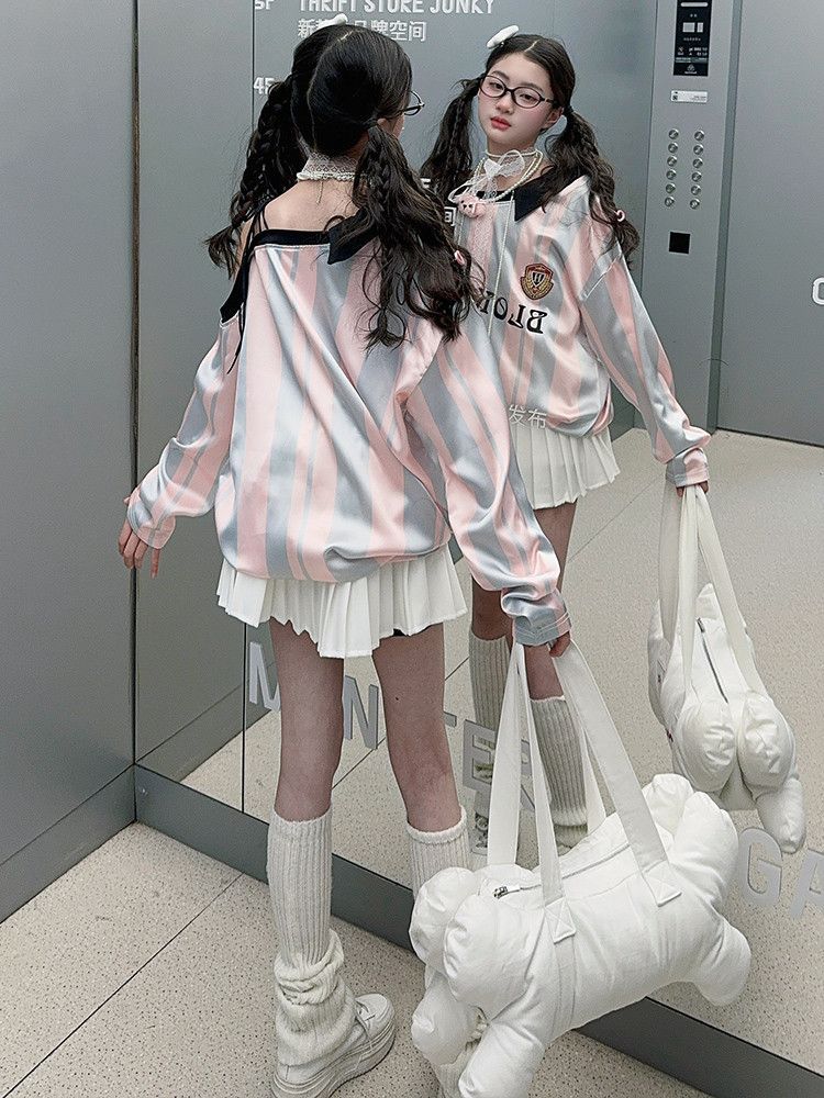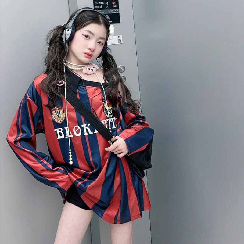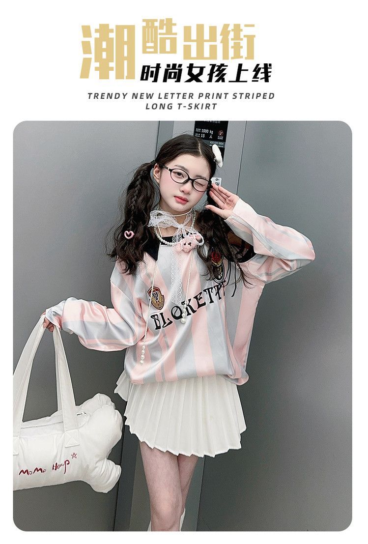 25030 여아 스트라이프 티셔츠 농구 베이비 스포츠 시리즈 진주빛 원단