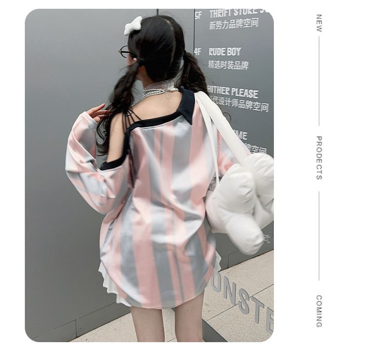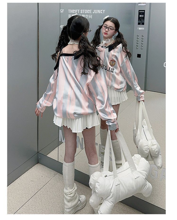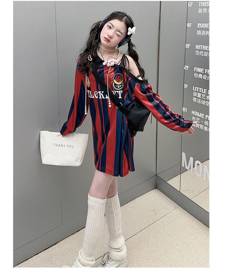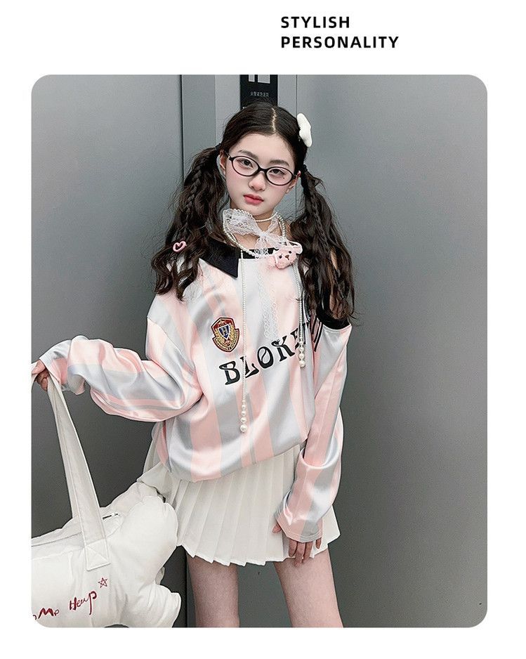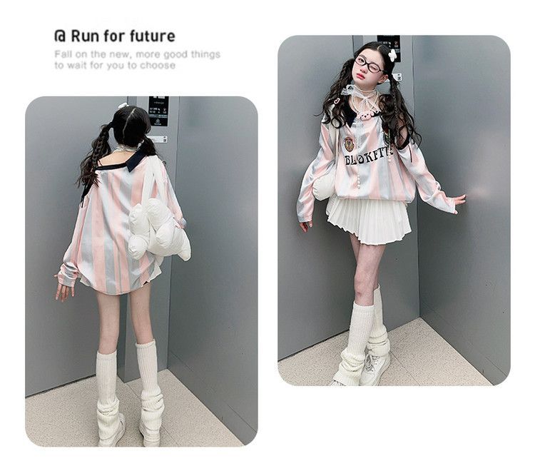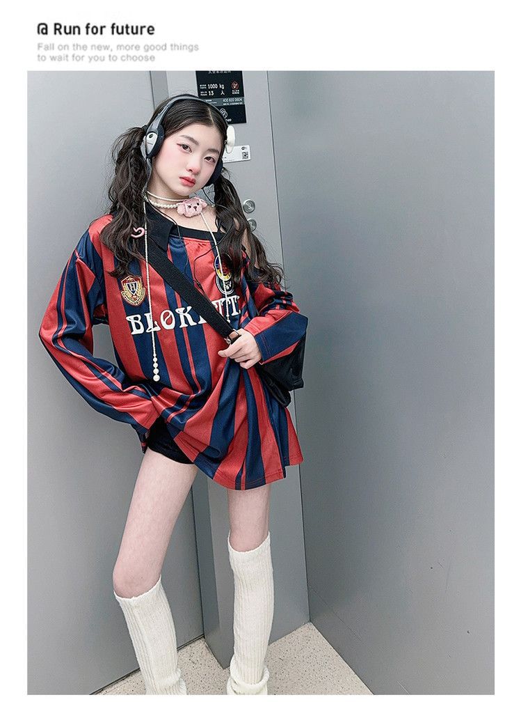 25030 여아 스트라이프 티셔츠 농구 베이비 스포츠 시리즈 진주빛 원단