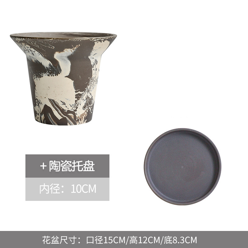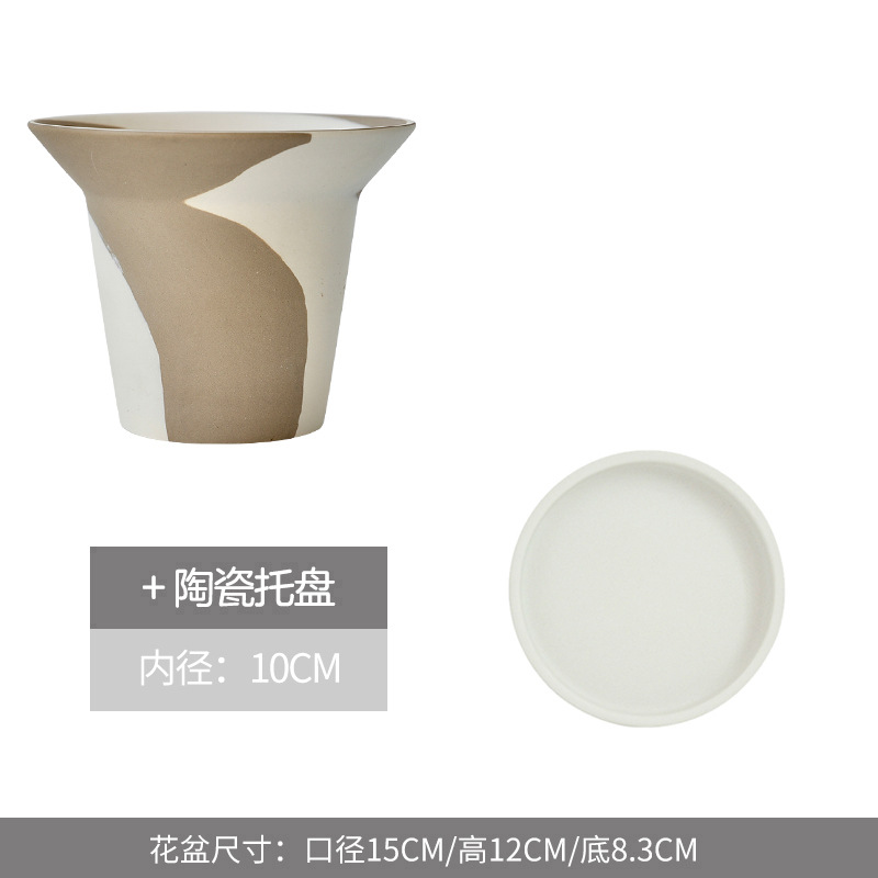 창조적 인 유약 세라믹 냄비 세라믹 붉은 도자기 마키아토 플레인 불타는 통기성 녹색 식물 꽃 냄비 고급 가정용 냄비 세트스토어 가기